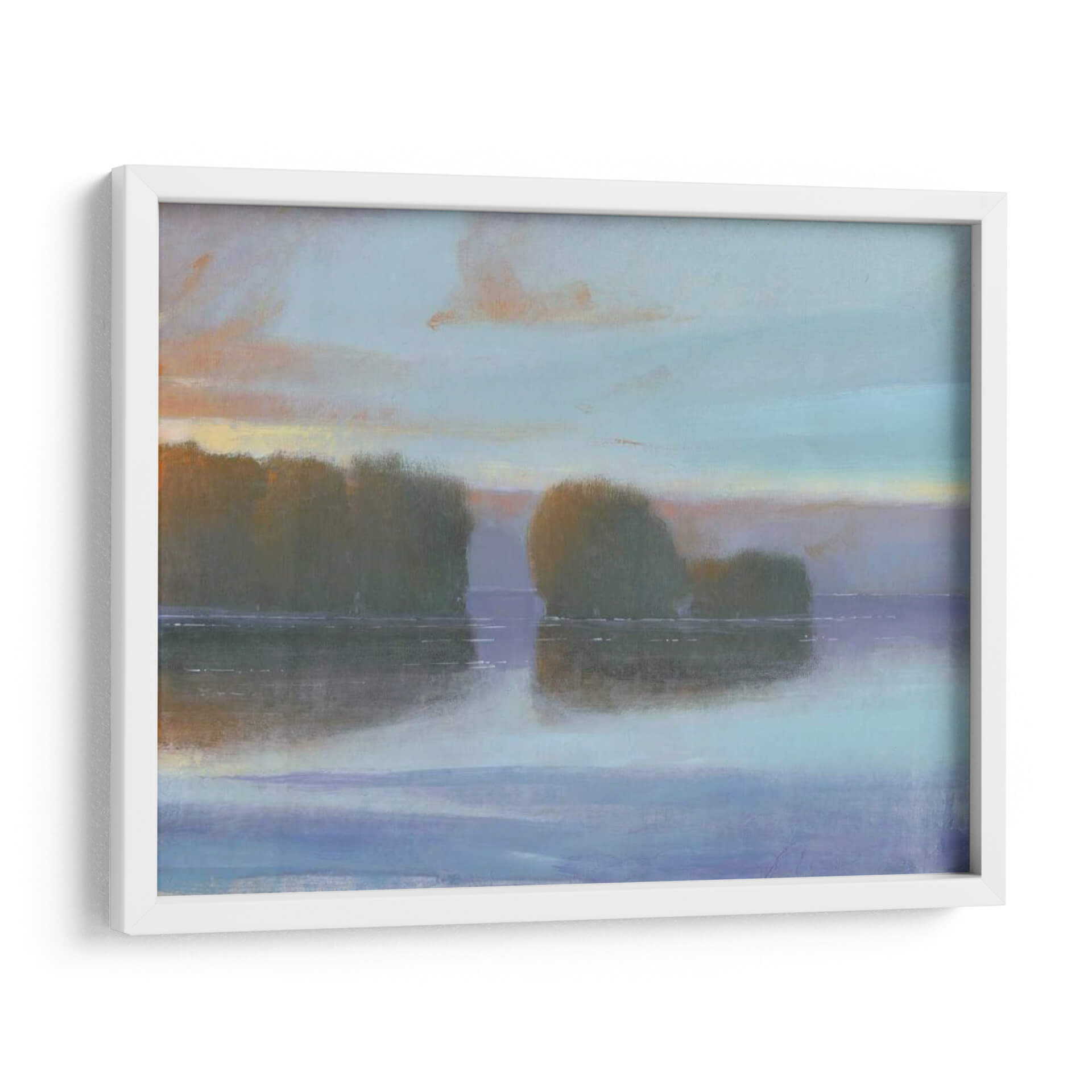 Sumérgete en la serenidad y el misterio de "Crystal River II", una obra maestra del artista Tim O'Toole que captura la etérea belleza de un paisaje acuático al amanecer o atardecer. Este cuadro decorativo te transportará a un momento de calma profunda con su paleta de colores suaves, dominada por tonos celestes, lavandas, y toques cálidos de naranja y amarillo que se reflejan delicadamente sobre la superficie del agua. Las formas arbóreas, representadas con pinceladas sueltas y evocadoras, sugieren una línea de costa serena, invitando a la contemplación. El estilo artístico, con su enfoque impresionista y ligeramente abstracto, crea una atmósfera onírica, perfecta para añadir un toque de sofisticación y tranquilidad a tu hogar u oficina. "Crystal River II" no es solo una pieza decorativa, sino una ventana a un mundo de paz y belleza natural, ideal para espacios que buscan un refugio visual. Integra este cuadro en tu sala de estar, dormitorio o estudio para infundir una sensación de calma y elevar la estética de tu entorno.