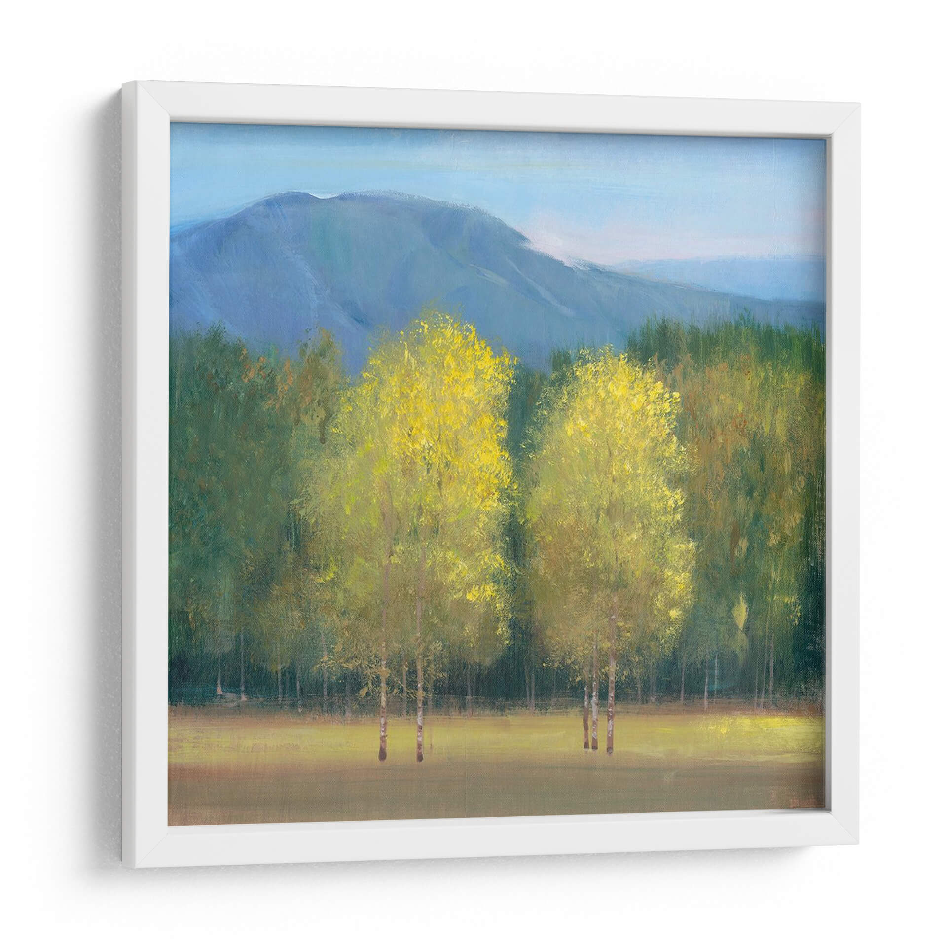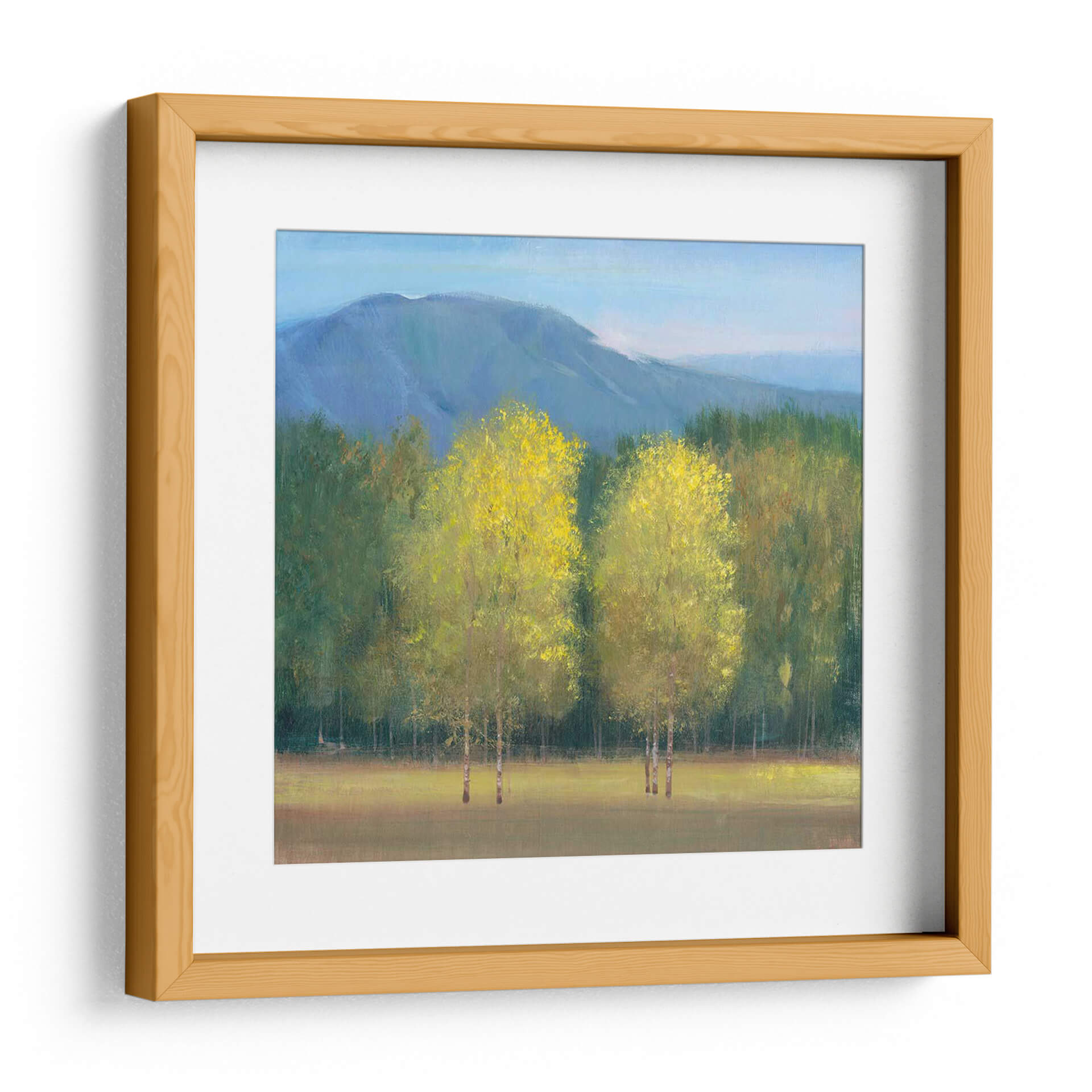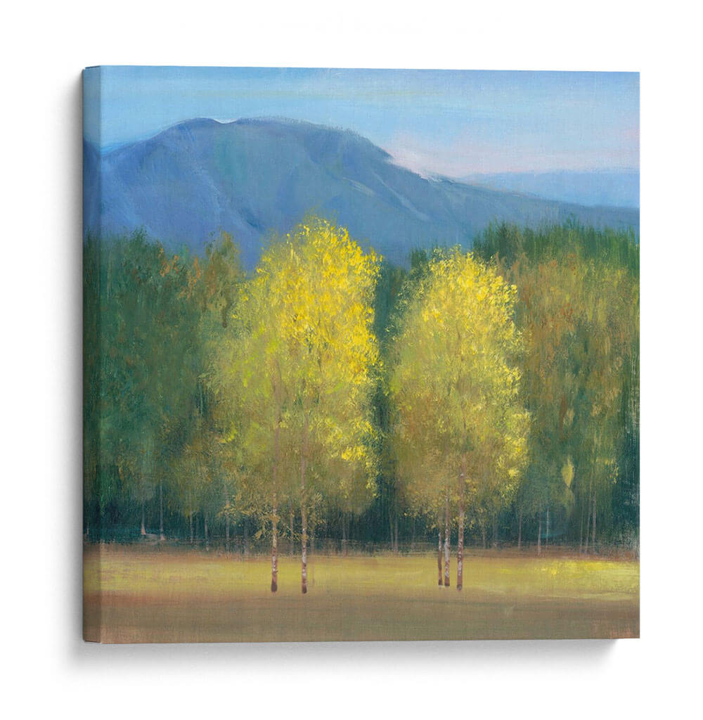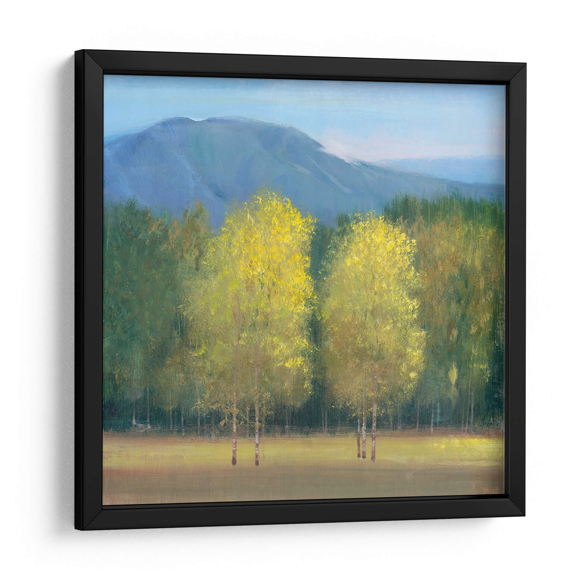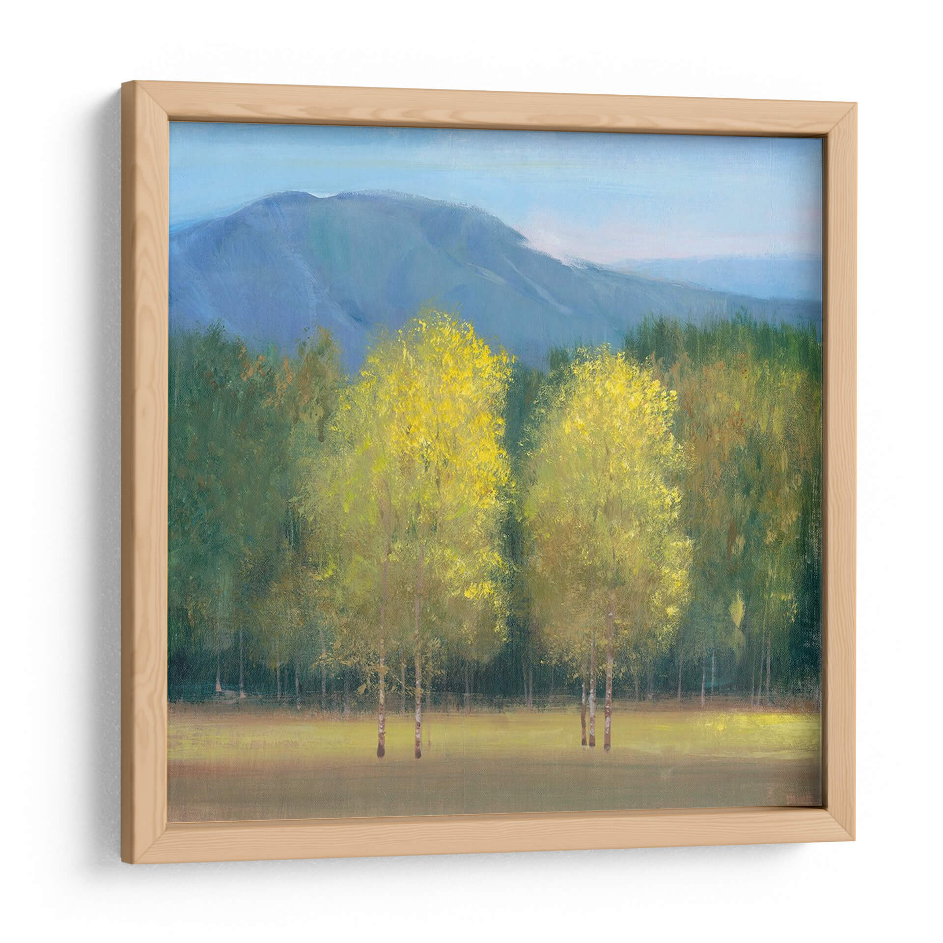 Sumérgete en la serenidad de "Eje De Luz I", una obra de arte contemporáneo que captura la esencia de un paisaje natural bañado por una luz suave y etérea. El artista Tim OToole nos transporta a un bosque donde árboles esbeltos, adornados con un vibrante follaje amarillo, se alzan con elegancia frente a una imponente montaña en la distancia, bajo un cielo de tonos azules claros y difuminados. La paleta de colores, dominada por verdes profundos y amarillos luminosos, crea una atmósfera de paz y vitalidad, invitando a la contemplación. La técnica pictórica, con pinceladas que sugieren textura y profundidad, aporta una cualidad casi tangible a la escena, evocando la belleza sutil de la naturaleza en un momento de calma. Este cuadro decorativo es ideal para añadir un toque de serenidad y color a tu hogar u oficina, transformando cualquier espacio en un refugio de inspiración. Su composición equilibrada y su atmósfera evocadora lo convierten en una pieza versátil, perfecta para salas de estar, dormitorios o estudios que busquen una conexión visual con la tranquilidad del mundo natural. Descubre la magia de "Eje De Luz I" y deja que su luz ilumine tu decoración.