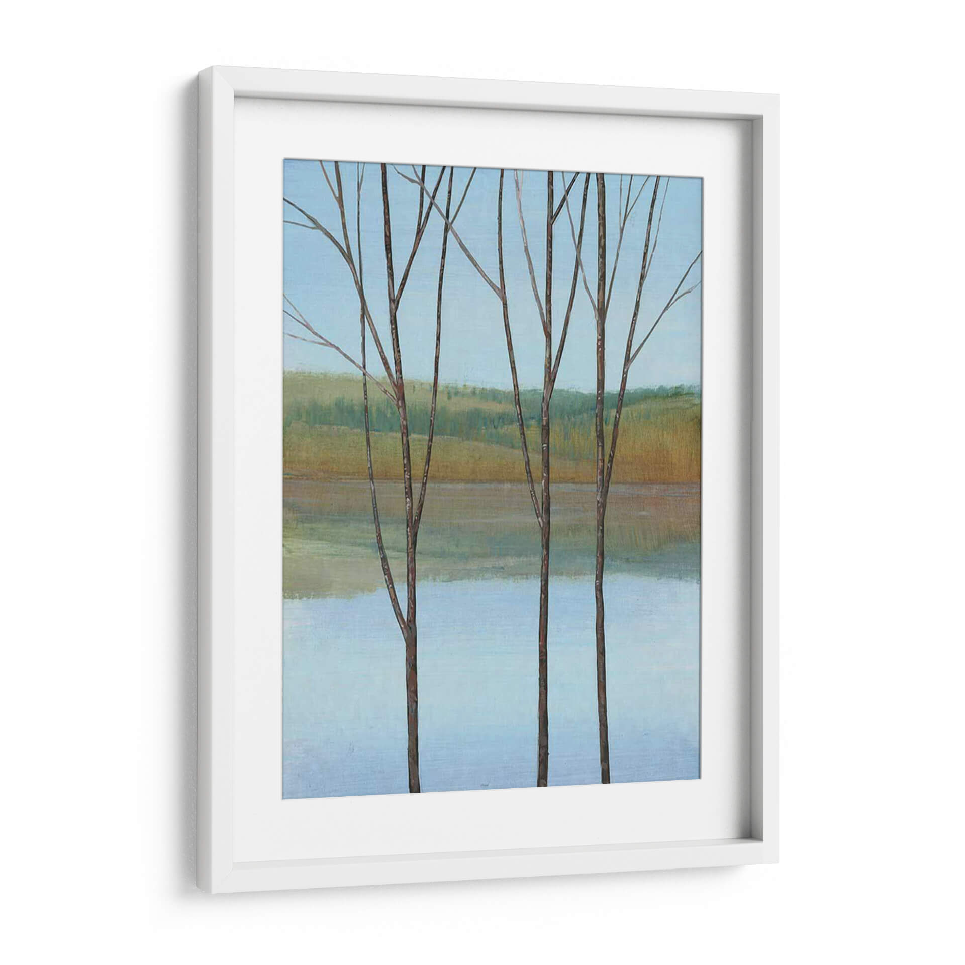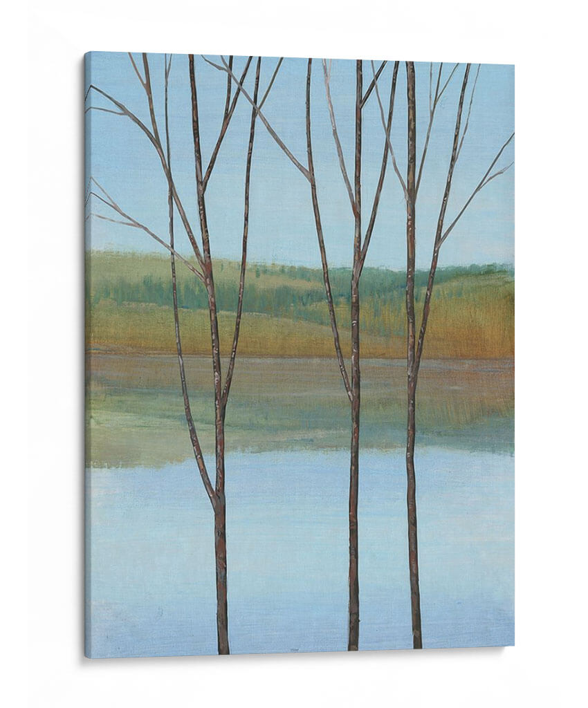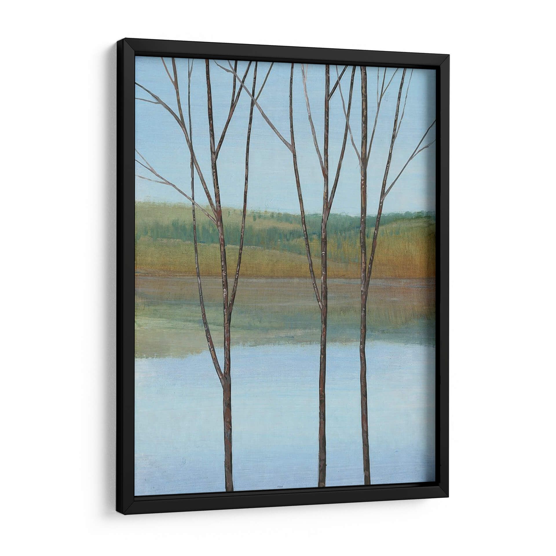 Sumérgete en la serena belleza de "Entre El Agua I", una cautivadora obra de arte contemporáneo del artista Tim O'Toole. Este cuadro decorativo te transporta a un paisaje tranquilo donde tres árboles de ramas desnudas se alzan majestuosamente frente a un cuerpo de agua sereno y un horizonte suavemente texturizado. La paleta de colores, dominada por tonos azules celestes, verdes terrosos y toques de marrón cálido, crea una atmósfera de calma y contemplación. El estilo, que combina elementos figurativos con una pincelada suelta y expresiva, aporta una sensación de profundidad y movimiento sutil. La composición minimalista, centrada en la verticalidad de los árboles y la horizontalidad del paisaje, invita a la reflexión y a la paz interior. "Entre El Agua I" es una pieza ideal para añadir un toque de naturaleza y serenidad a tu salón, dormitorio u oficina, actuando como un punto focal que inspira tranquilidad y conexión con el entorno. Descubre cómo este cuadro decorativo puede transformar tu espacio y elevar tu bienestar, aportando una dosis de arte contemporáneo que habla directamente al alma.