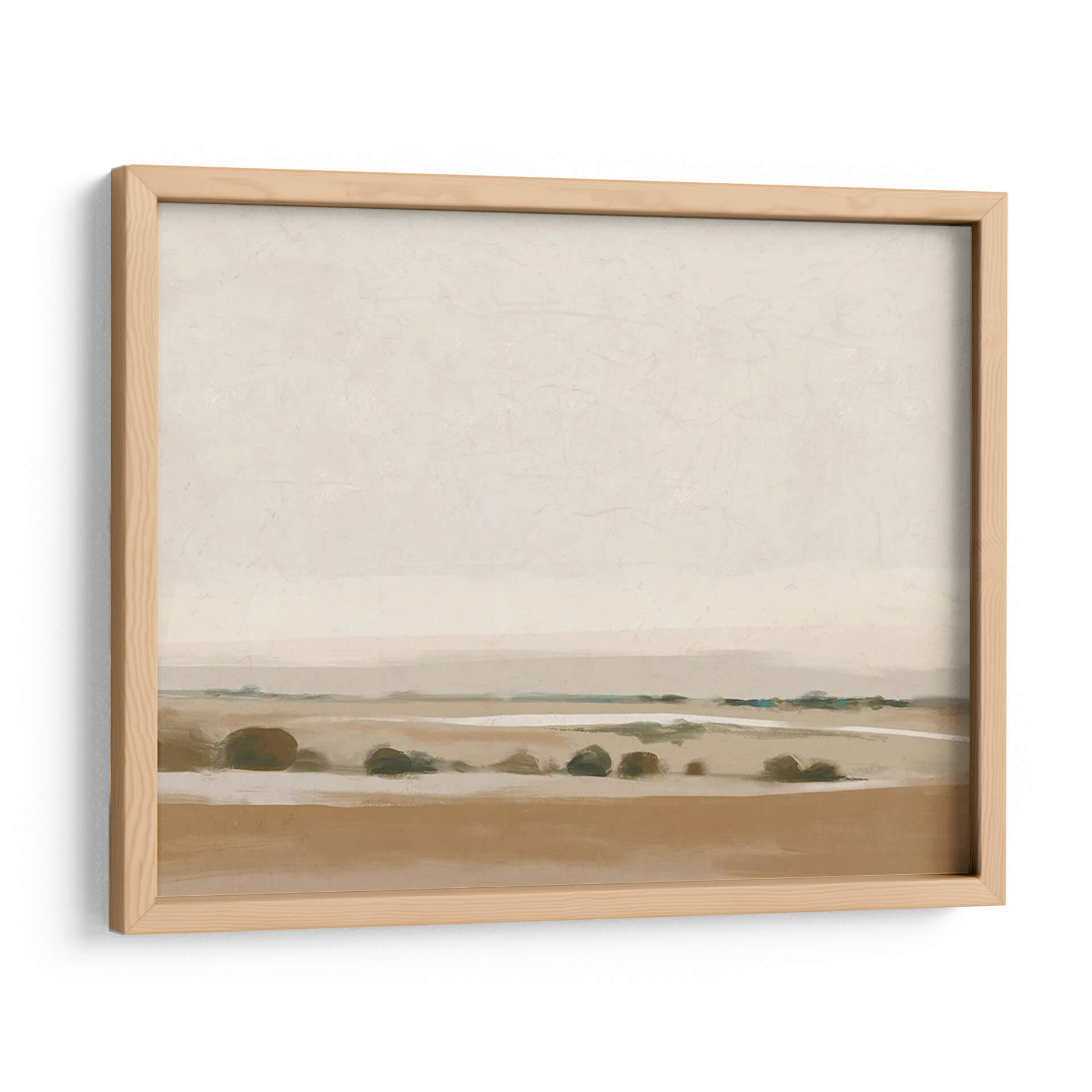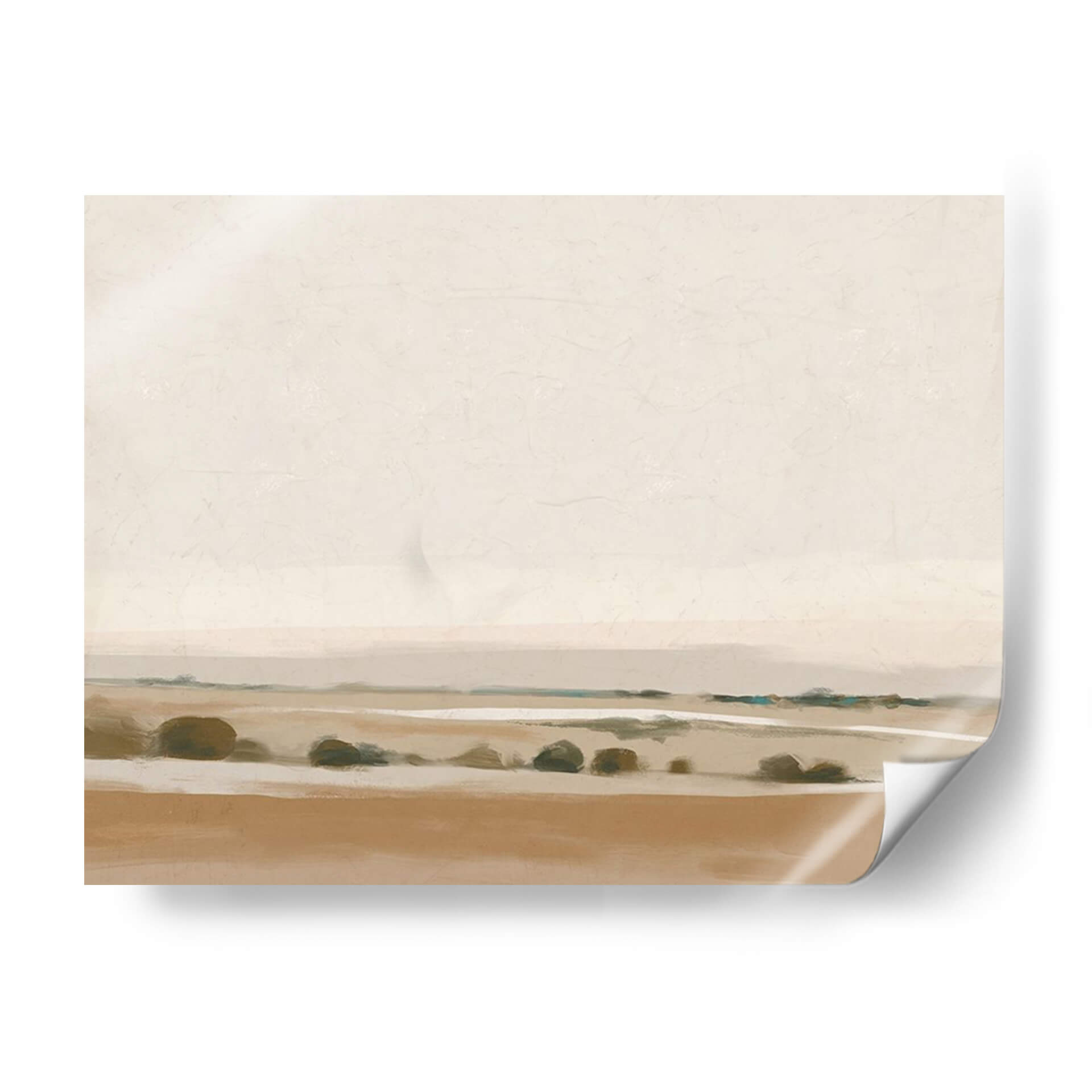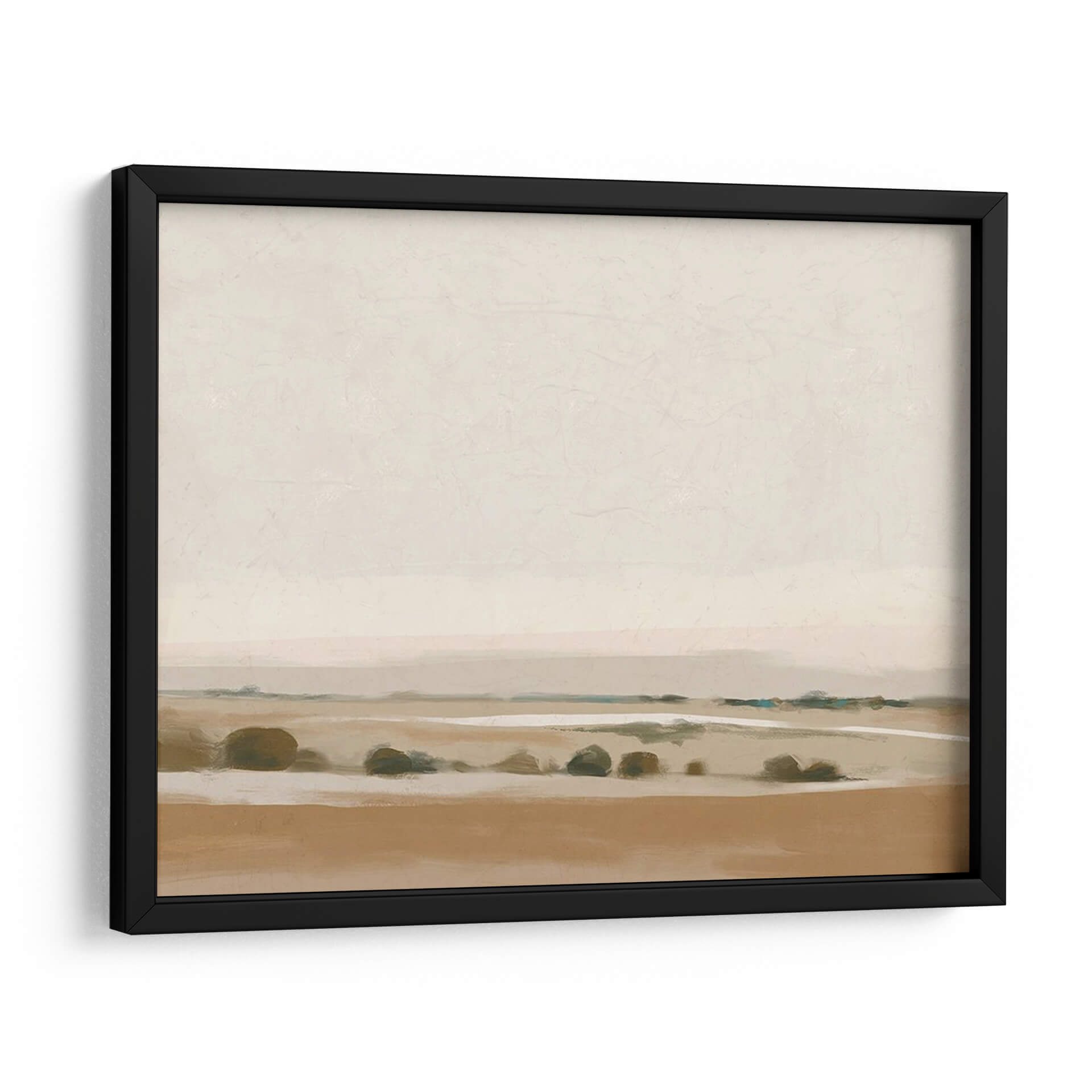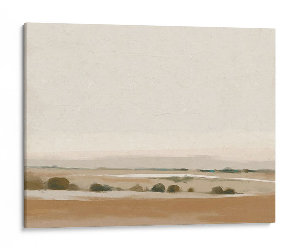 Sumérgete en la serenidad de "Frontera Nebulada I", una obra de arte contemporáneo que evoca la calma de un paisaje etéreo. Susan Savory nos transporta a un horizonte difuso, donde suaves capas de color se funden para crear una atmósfera de paz y contemplación. La paleta de tonos tierra, que va desde beiges cálidos hasta ocres profundos, se complementa con sutiles toques de azul verdoso, creando un equilibrio visual que invita a la introspección. La composición minimalista, con líneas horizontales suaves y formas orgánicas dispersas, sugiere una vasta extensión, ideal para espacios que buscan transmitir tranquilidad y elegancia. Este cuadro decorativo es perfecto para tu sala de estar, dormitorio o estudio, añadiendo un toque de sofisticación natural y una invitación a la desconexión. Su estilo abstracto y la profundidad sutil lo convierten en una pieza versátil, capaz de complementar tanto decoraciones modernas como rústicas, aportando una sensación de espacio y luz.