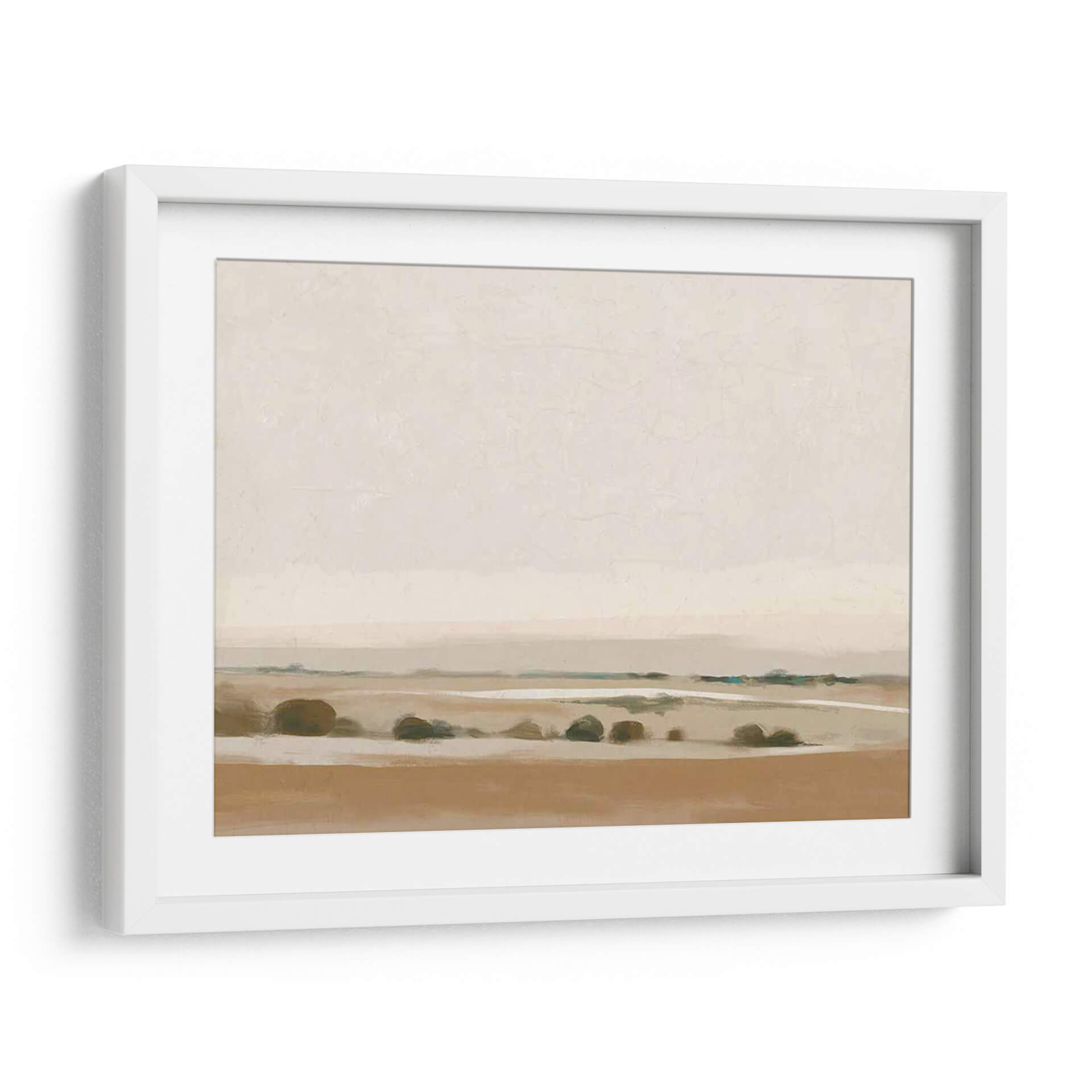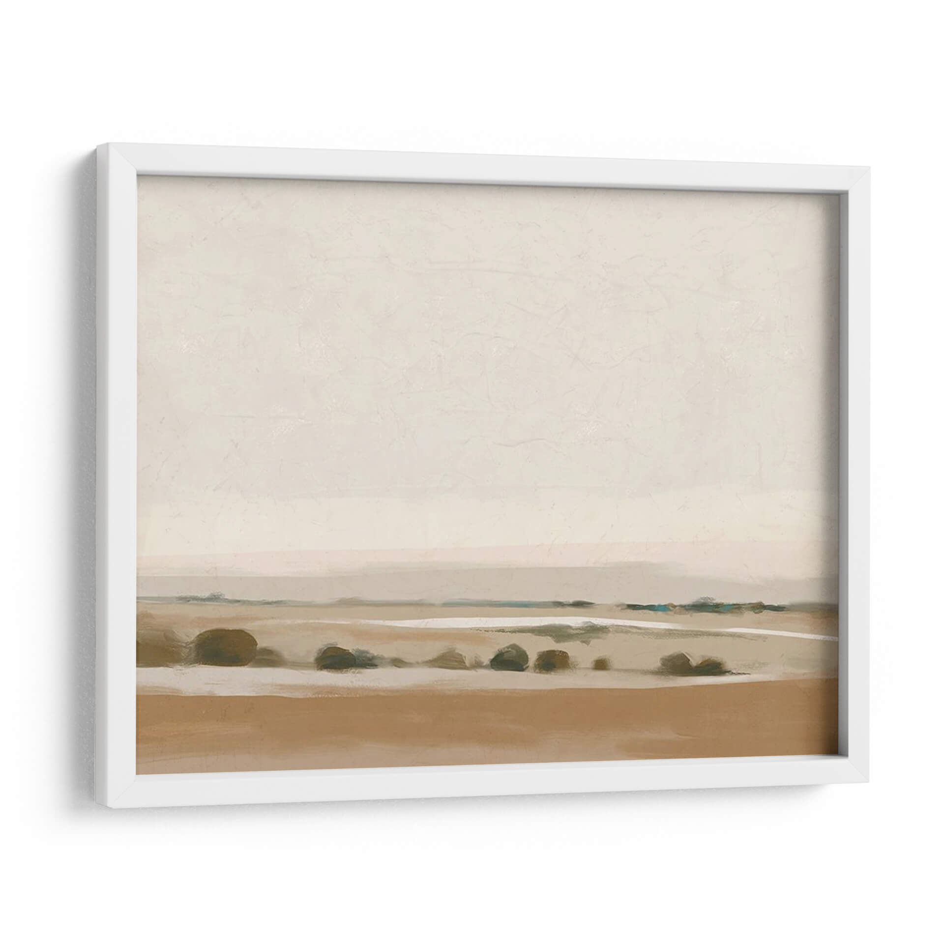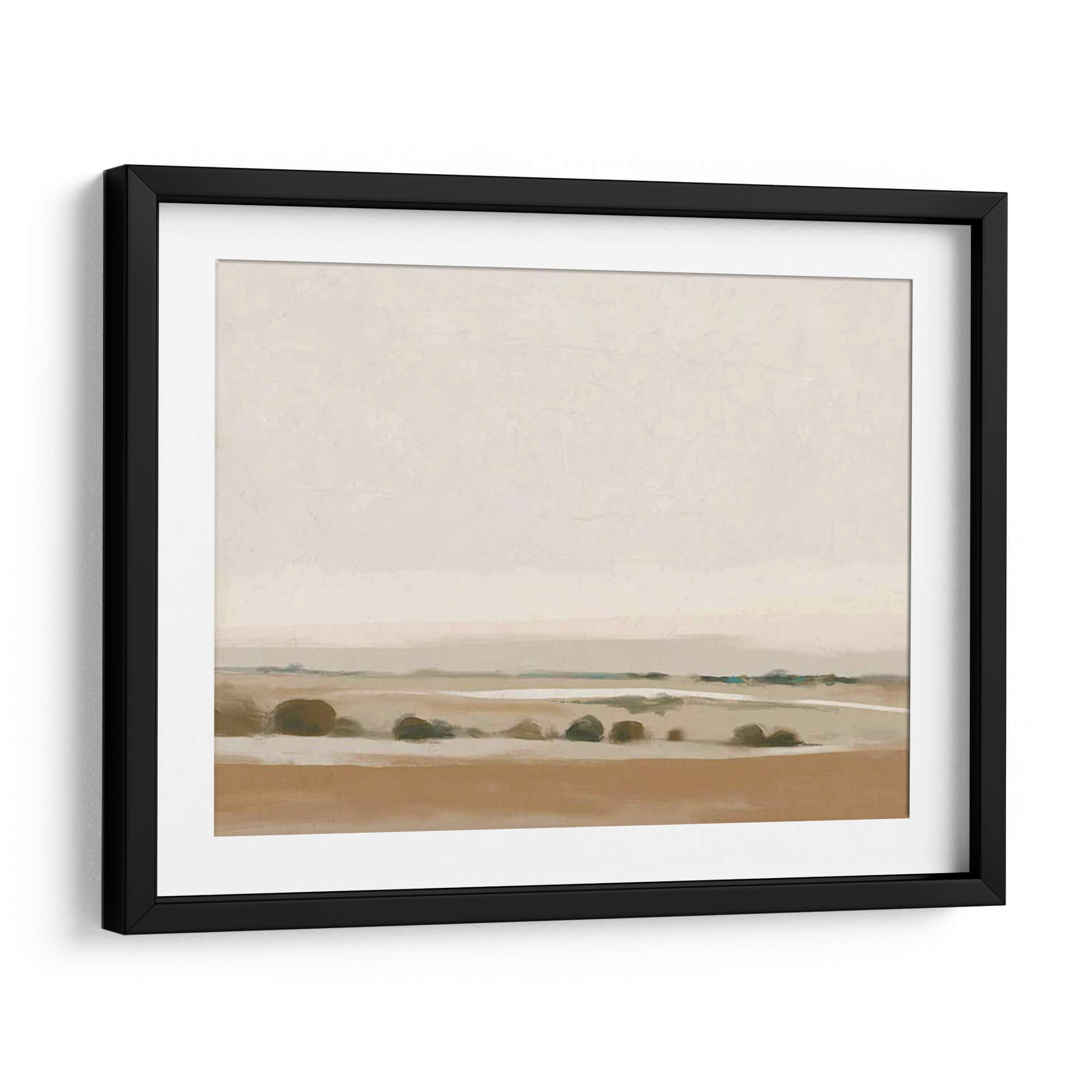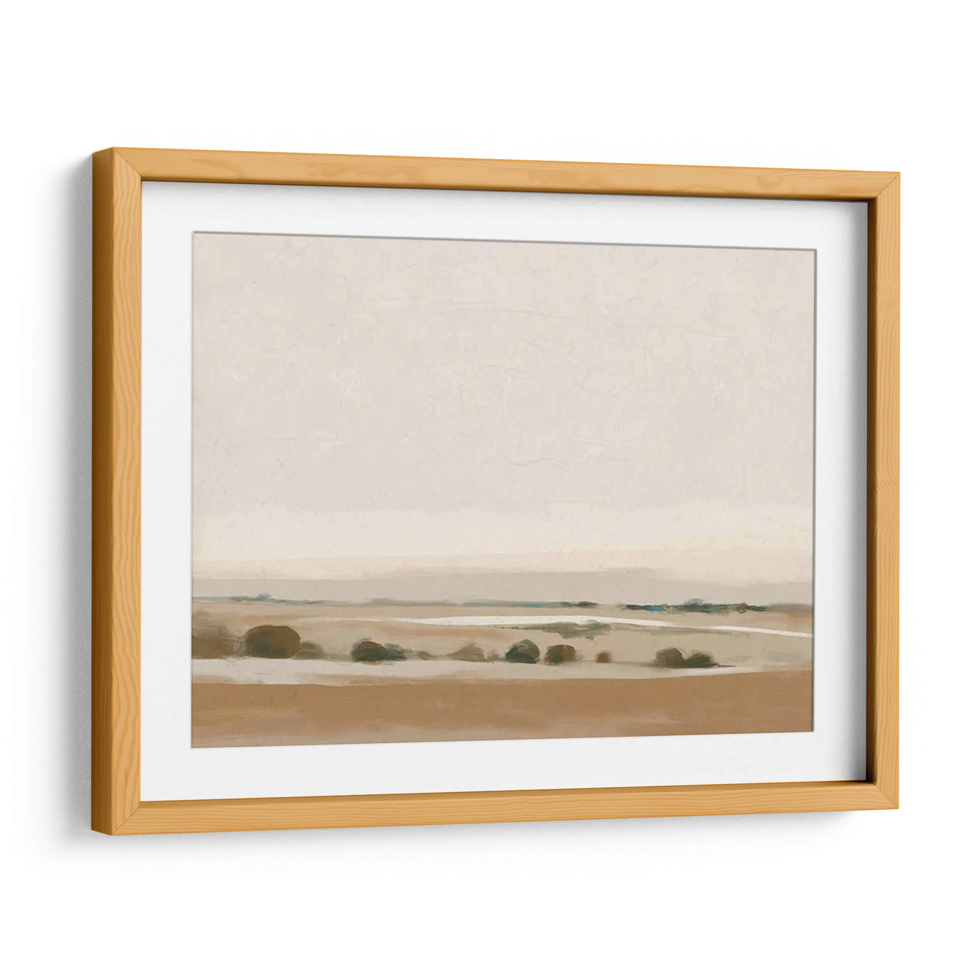 Sumérgete en la serenidad de "Frontera Nebulada I", una obra de arte contemporáneo que evoca la calma de un paisaje etéreo. Susan Savory nos transporta a un horizonte difuso, donde suaves capas de color se funden para crear una atmósfera de paz y contemplación. La paleta de tonos tierra, que va desde beiges cálidos hasta ocres profundos, se complementa con sutiles toques de azul verdoso, creando un equilibrio visual que invita a la introspección. La composición minimalista, con líneas horizontales suaves y formas orgánicas dispersas, sugiere una vasta extensión, ideal para espacios que buscan transmitir tranquilidad y elegancia. Este cuadro decorativo es perfecto para tu sala de estar, dormitorio o estudio, añadiendo un toque de sofisticación natural y una invitación a la desconexión. Su estilo abstracto y la profundidad sutil lo convierten en una pieza versátil, capaz de complementar tanto decoraciones modernas como rústicas, aportando una sensación de espacio y luz.