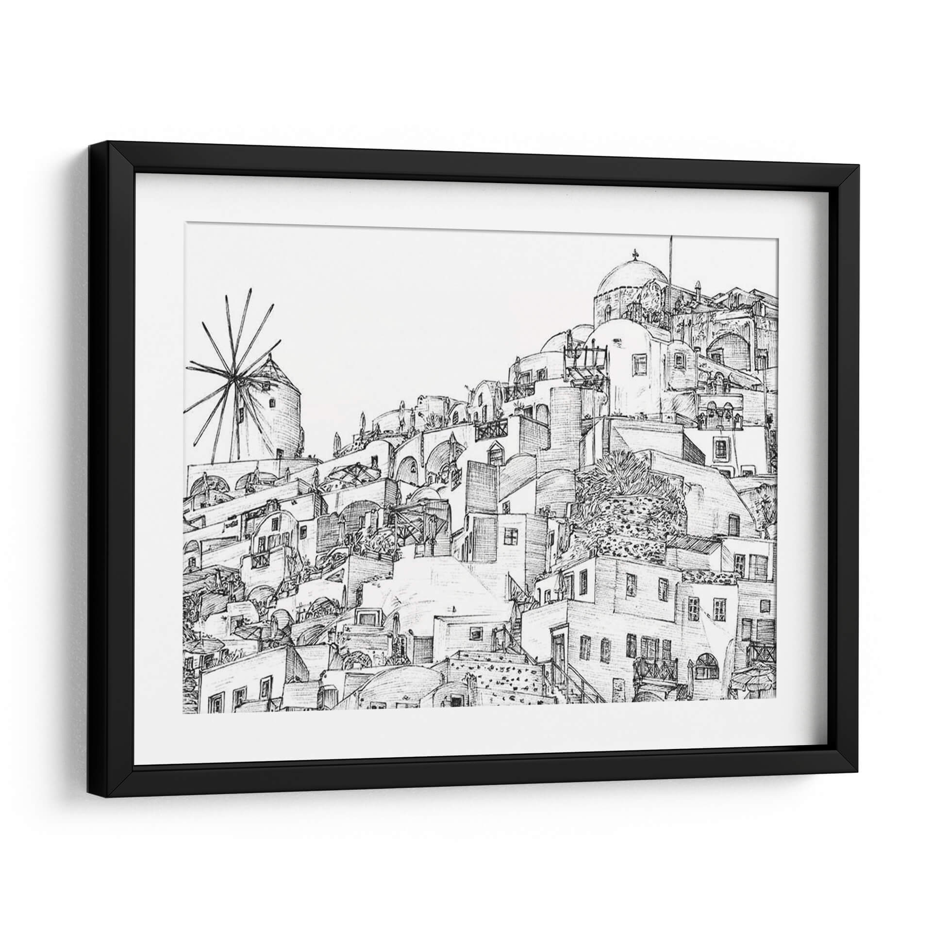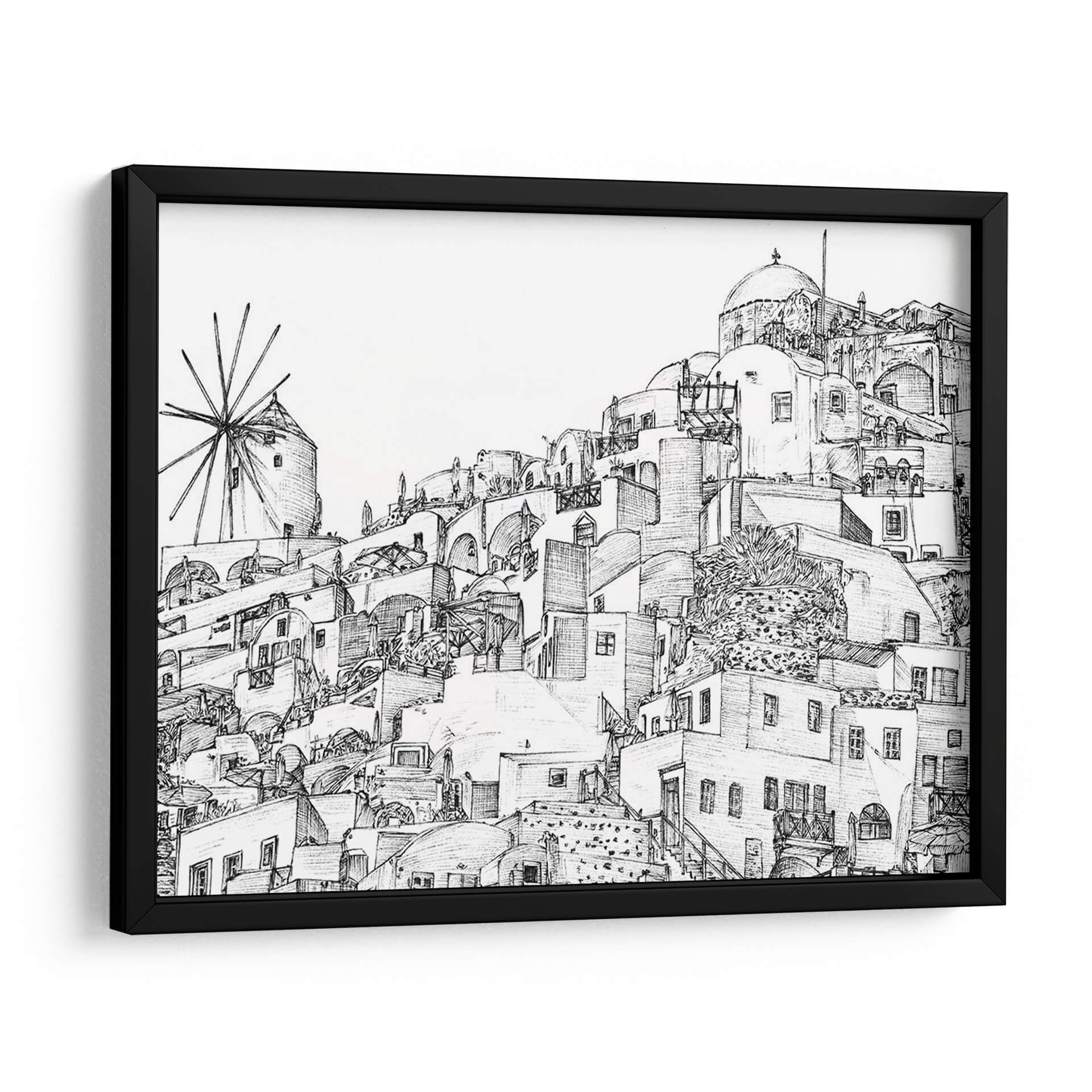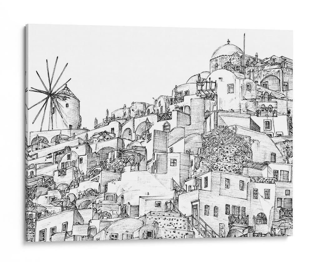 Sumérgete en la encantadora arquitectura de "Grecia Secreta En Bandw II" de Melissa Wang. Este cuadro decorativo captura la esencia de un pueblo mediterráneo encalado, con sus casas en cascada por una colina y coronado por una cúpula icónica y un molino de viento tradicional. La obra, ejecutada en un estilo de boceto detallado y monocromático, evoca una sensación de nostalgia y serenidad. Las líneas finas y sombreadas dan vida a la textura de los edificios, creando una atmósfera tranquila y evocadora que invita a la contemplación. Ideal para aquellos que buscan añadir un toque de elegancia atemporal y un aire de escapada vacacional a su hogar u oficina. Este lienzo es perfecto para salones, dormitorios o estudios que deseen un punto focal sofisticado y sereno. Su estética en blanco y negro se adapta a cualquier esquema de decoración, aportando carácter sin abrumar el espacio. Descubre la belleza detallada de este paisaje arquitectónico que te transportará directamente a las islas griegas.