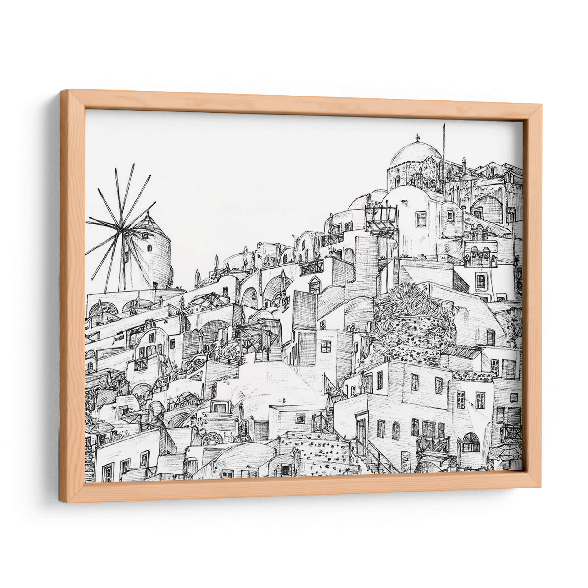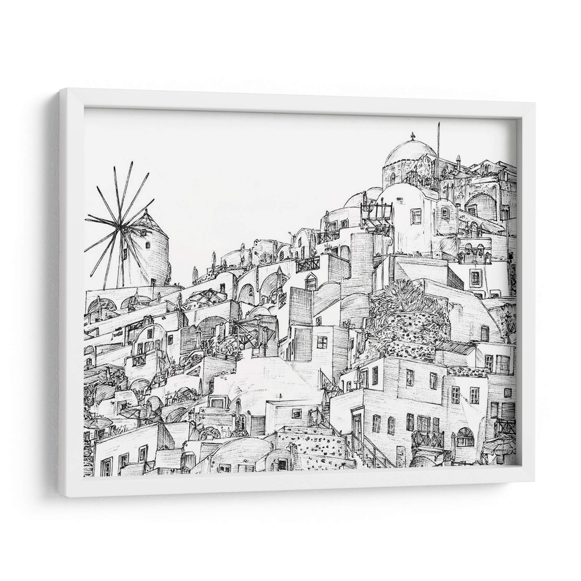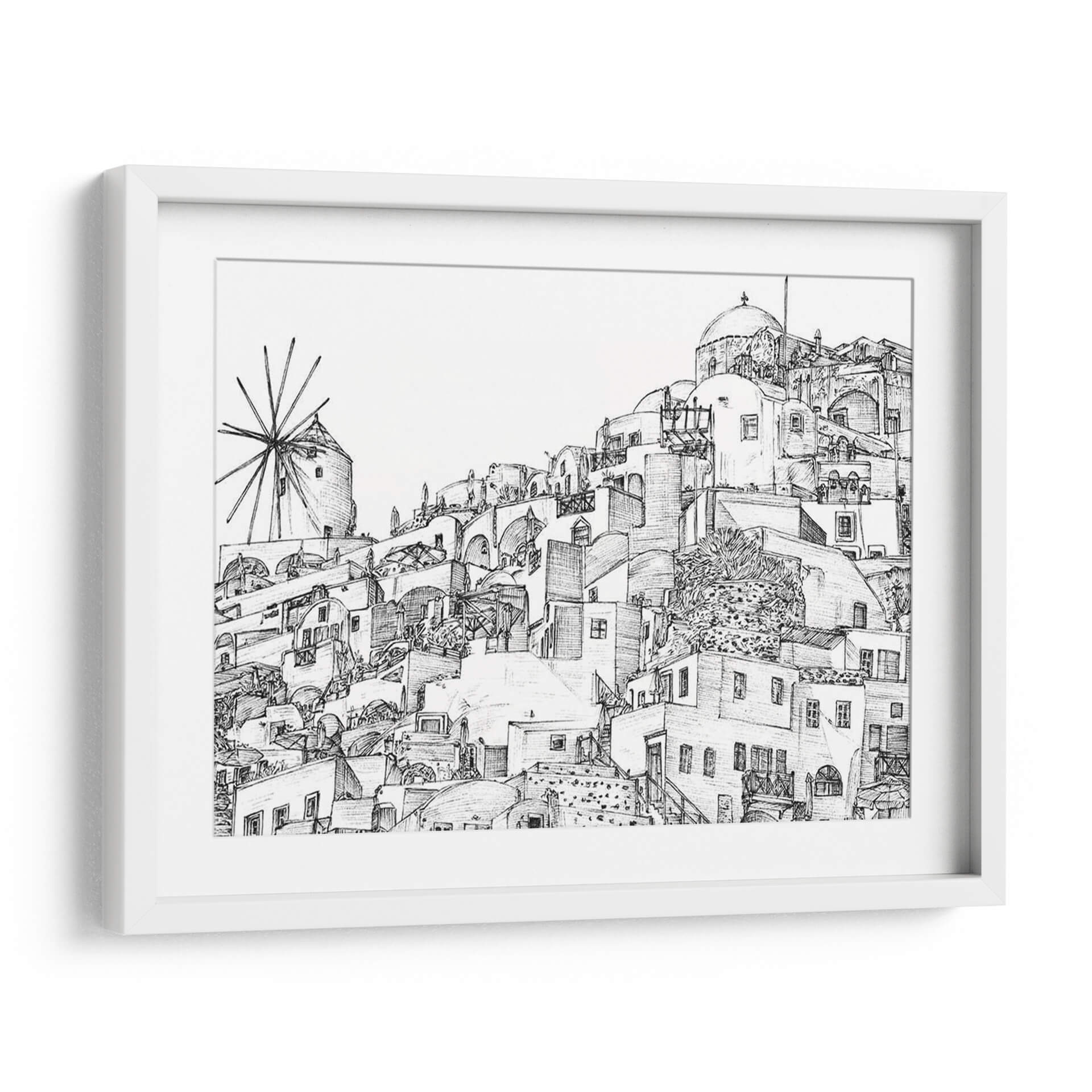 Sumérgete en la encantadora arquitectura de "Grecia Secreta En Bandw II" de Melissa Wang. Este cuadro decorativo captura la esencia de un pueblo mediterráneo encalado, con sus casas en cascada por una colina y coronado por una cúpula icónica y un molino de viento tradicional. La obra, ejecutada en un estilo de boceto detallado y monocromático, evoca una sensación de nostalgia y serenidad. Las líneas finas y sombreadas dan vida a la textura de los edificios, creando una atmósfera tranquila y evocadora que invita a la contemplación. Ideal para aquellos que buscan añadir un toque de elegancia atemporal y un aire de escapada vacacional a su hogar u oficina. Este lienzo es perfecto para salones, dormitorios o estudios que deseen un punto focal sofisticado y sereno. Su estética en blanco y negro se adapta a cualquier esquema de decoración, aportando carácter sin abrumar el espacio. Descubre la belleza detallada de este paisaje arquitectónico que te transportará directamente a las islas griegas.