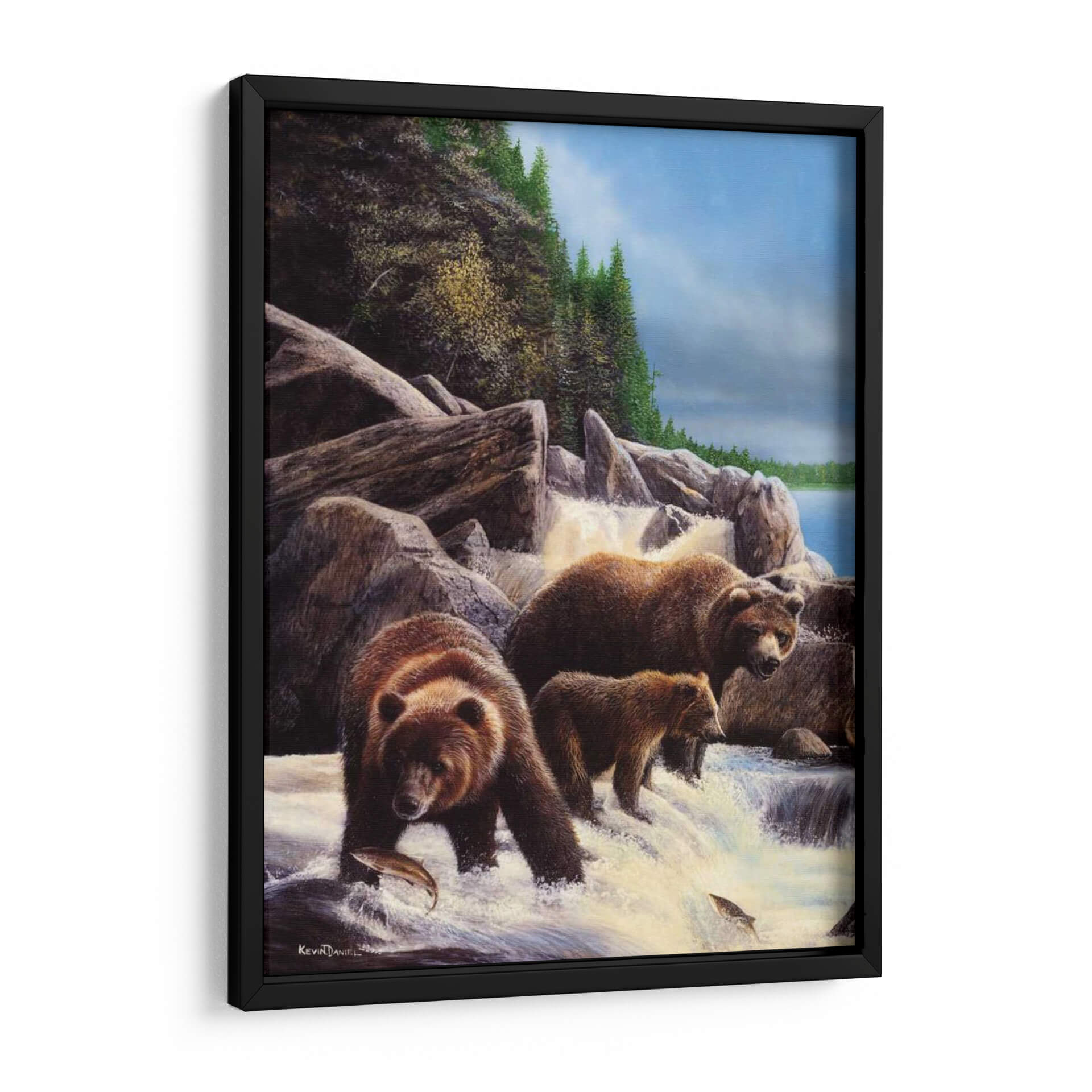 Captura la fuerza y la serenidad de la naturaleza con este impresionante cuadro decorativo de "Grizzlies Por Falls" de Kevin Daniel. La obra maestra representa a una familia de osos pardos en su hábitat natural, en medio de una cascada rugiente y rocas escarpadas. Los tonos tierra de los osos contrastan maravillosamente con el verde exuberante del bosque y el azul sereno del cielo y el agua, creando una atmósfera de poder salvaje y tranquilidad. Cada detalle, desde el pelaje de los osos hasta las salpicaduras del agua, está pintado con una maestría que da vida a la escena. Este cuadro decorativo es perfecto para añadir un toque de vida salvaje y elegancia a tu hogar u oficina, evocando una sensación de aventura y conexión con el mundo natural. Ideal para salas de estar, estudios o cualquier espacio que busque un punto focal impactante y lleno de carácter.
