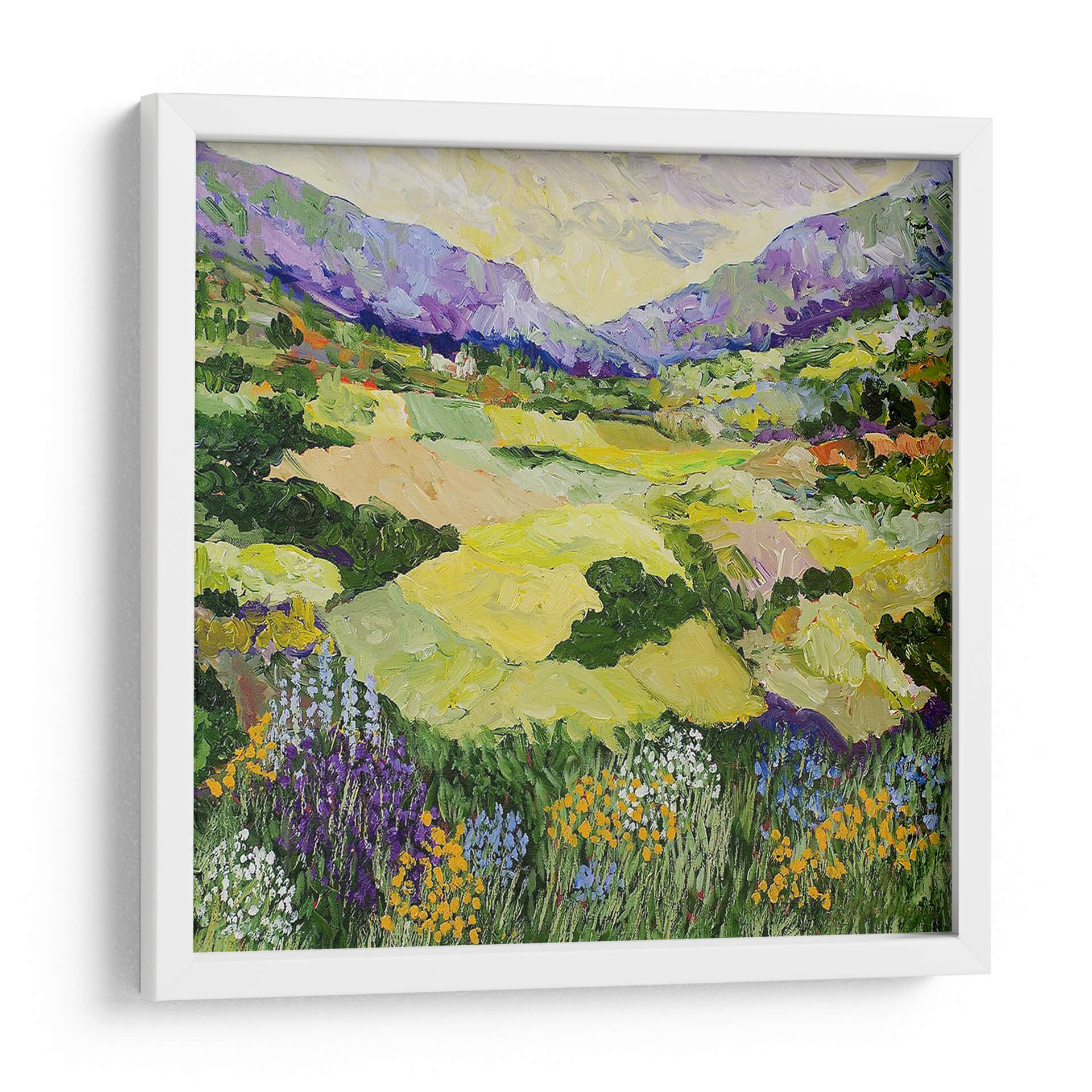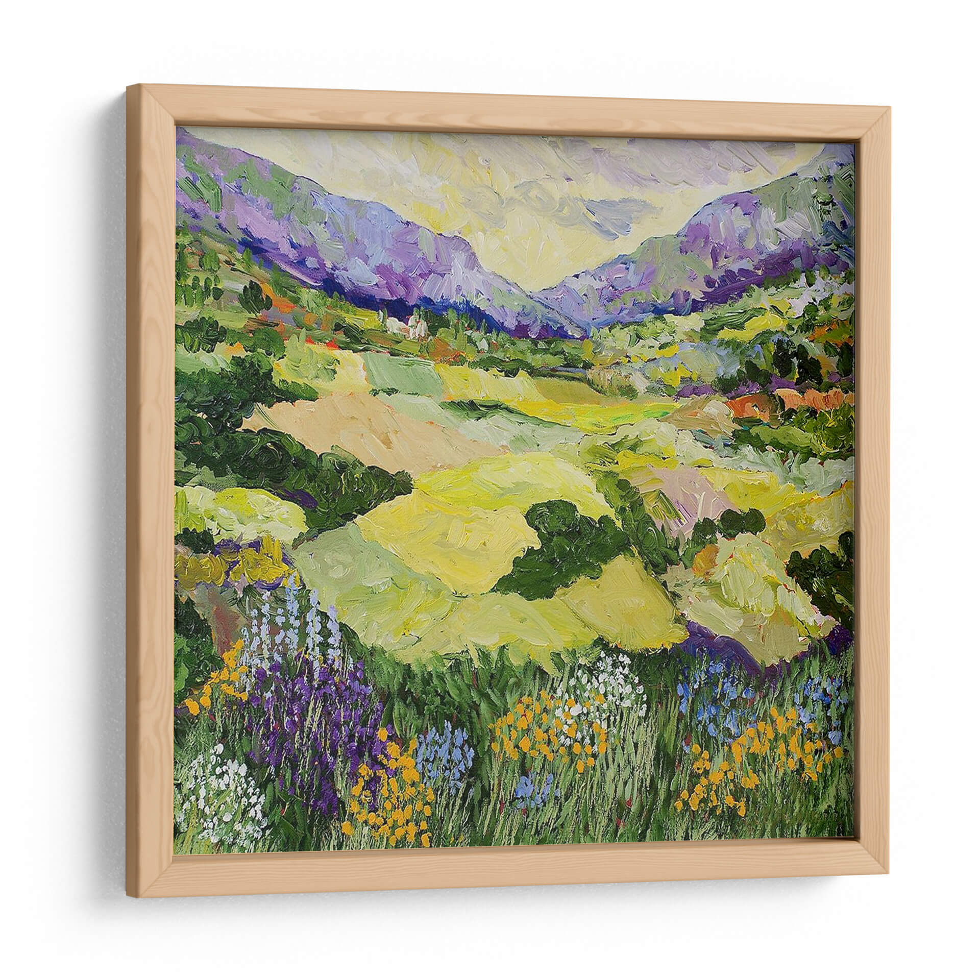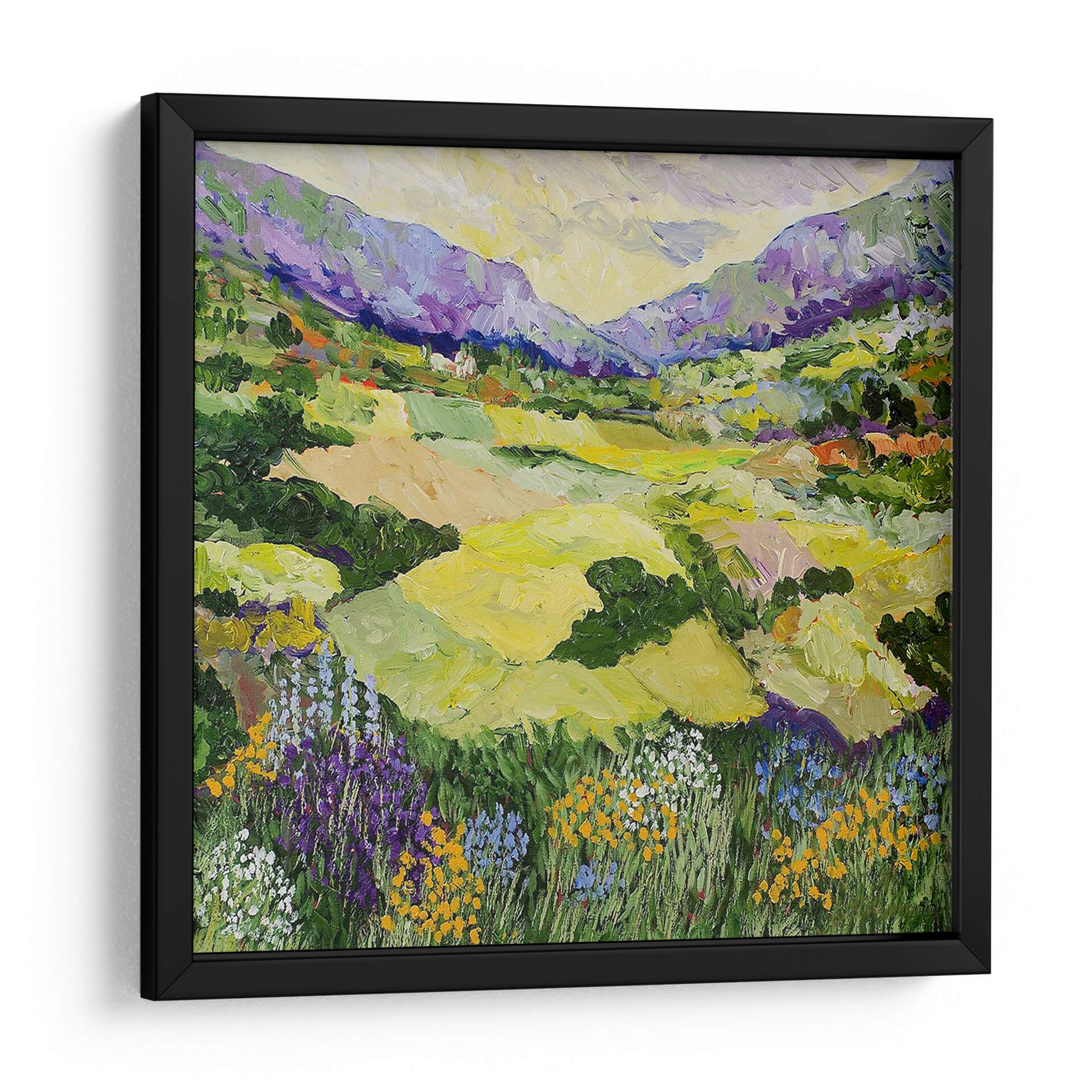 Sumérgete en la vitalidad de 'Hierba Fresca', una obra de arte que captura la esencia de un paisaje rural vibrante y lleno de vida. El artista Allan Friedlander nos transporta a un valle bañado por la luz, donde las colinas ondulantes se visten de amarillos intensos y verdes exuberantes, creando una sensación de abundancia y calidez. Las montañas distantes, teñidas de un suave púrpura, añaden profundidad y un toque de serenidad al horizonte. En primer plano, un tapiz de flores silvestres en tonos violeta, amarillo y blanco estalla en color, evocando la frescura de un prado recién florecido. La técnica de pincelada audaz y texturizada de Friedlander confiere a la obra una energía palpable, invitando al espectador a sentir la brisa y el sol del campo. Este cuadro decorativo es una invitación a la calma y la alegría, perfecto para infundir optimismo y conexión con la naturaleza en cualquier espacio. Ideal para salas de estar, comedores o estudios que busquen un punto focal lleno de color y vida, 'Hierba Fresca' es una pieza que renueva el ambiente y eleva el espíritu, transformando tu hogar en un refugio de inspiración.
