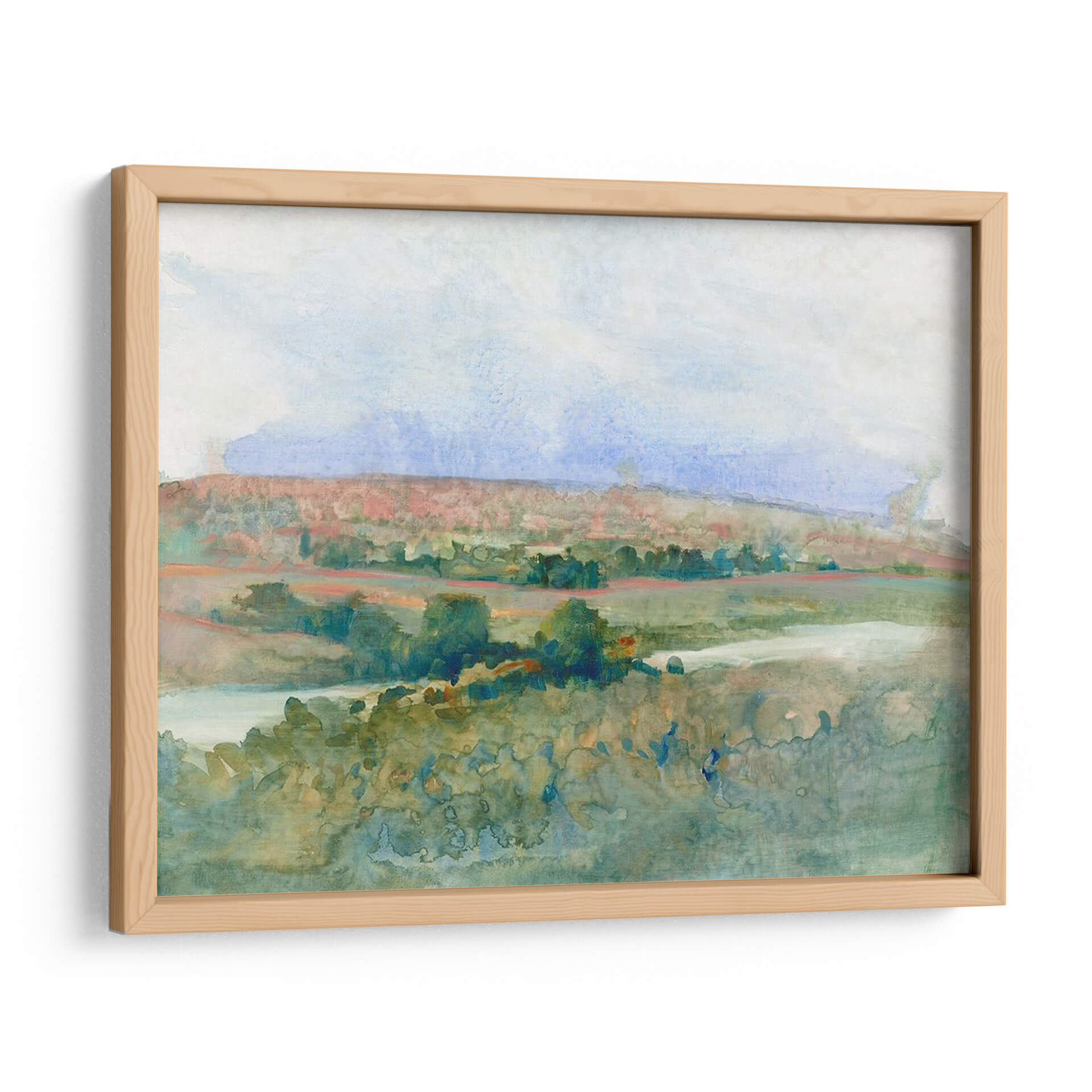 Sumérgete en la serenidad de "Hilltop Vista I", una cautivadora obra de arte que evoca la tranquilidad de un paisaje rural bañado por la luz del día. El artista Tim OToole nos transporta a través de pinceladas sueltas y una paleta de colores suaves, dominada por tonos tierra, verdes vibrantes y azules celestes, que crean una atmósfera de paz y contemplación. Esta pieza, con su composición evocadora de una vista panorámica, captura la esencia de un atardecer o amanecer en las colinas, donde la naturaleza se despliega en armonía. Los detalles sutiles y la textura sugerida invitan a perder la mirada en la profundidad del paisaje, transformando cualquier espacio en un refugio de calma. "Hilltop Vista I" es más que un simple cuadro decorativo; es una invitación a la reflexión y un escape visual perfecto para salones modernos, dormitorios acogedores u oficinas que buscan un toque de inspiración natural. Su estilo contemporáneo y su delicada ejecución lo convierten en una adición versátil y atemporal a tu decoración, aportando una sensación de amplitud y serenidad que perdura.
