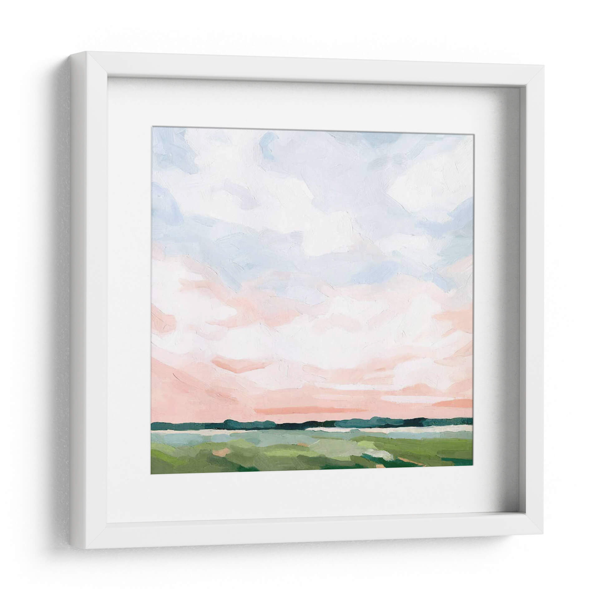 Sumérgete en la serena belleza de "Horizonte De La Mañana Rosa II", una obra de arte contemporáneo que captura la magia de un amanecer o atardecer en tonos pastel. Este cuadro decorativo presenta un cielo etéreo, donde suaves pinceladas de rosa, blanco y azul cielo se entrelazan, evocando la tranquilidad y la paz de las primeras o últimas luces del día. La línea del horizonte, definida por sutiles tonos de verde y un oscuro contorno, separa el cielo del paisaje inferior, compuesto por vibrantes campos de hierba en diversos tonos de verde, sugeriendo una pradera o marisma bañada por una luz suave. La técnica de Emma Scarvey, con su aplicación gestual de la pintura, aporta una textura y profundidad únicas a la pieza, invitando a la contemplación. "Horizonte De La Mañana Rosa II" es ideal para añadir un toque de calma y color a cualquier espacio, desde una sala de estar moderna hasta un dormitorio acogedor o una oficina que busque un ambiente inspirador. Este cuadro decorativo es perfecto para quienes aprecian el arte abstracto paisajístico y buscan una pieza que transmita serenidad y optimismo.