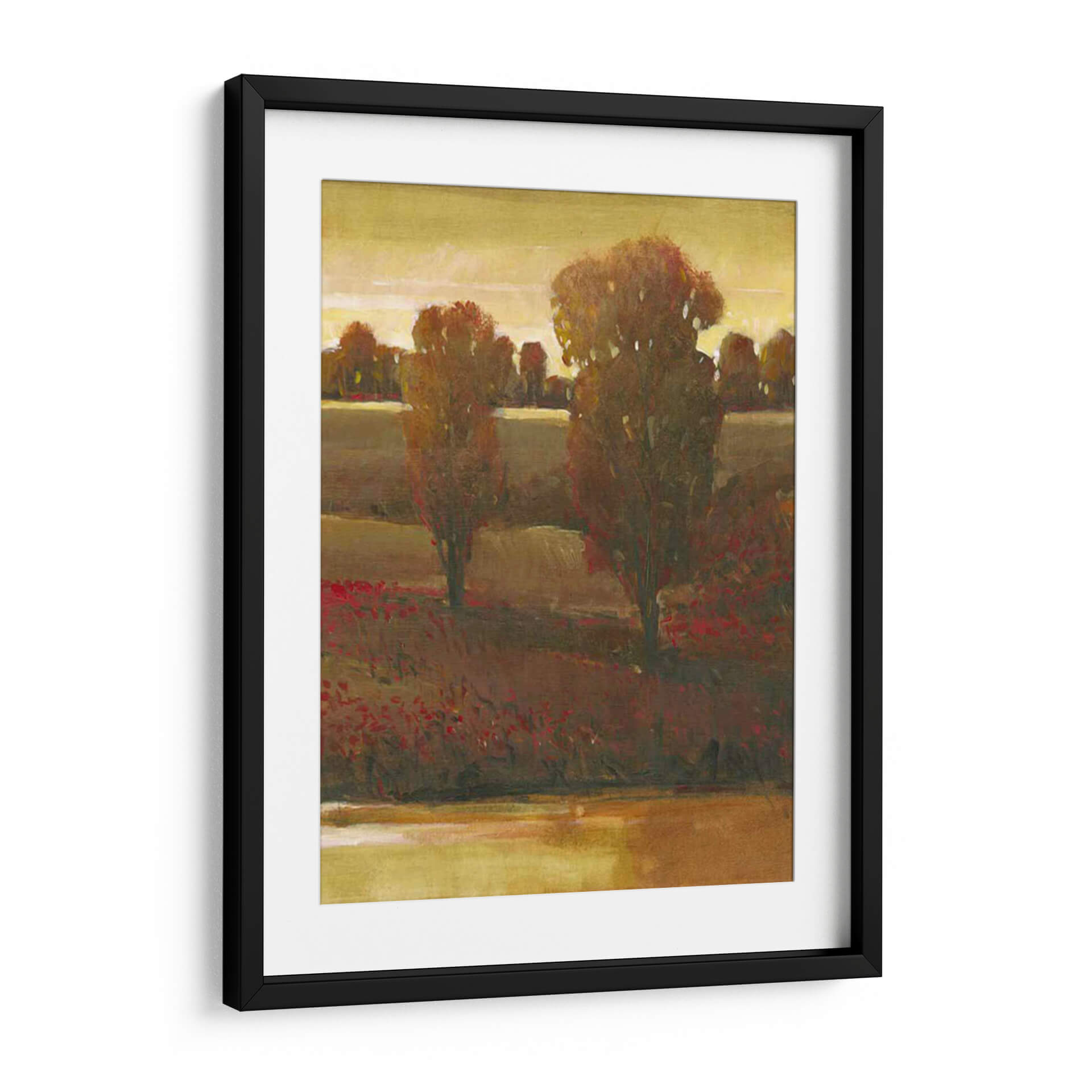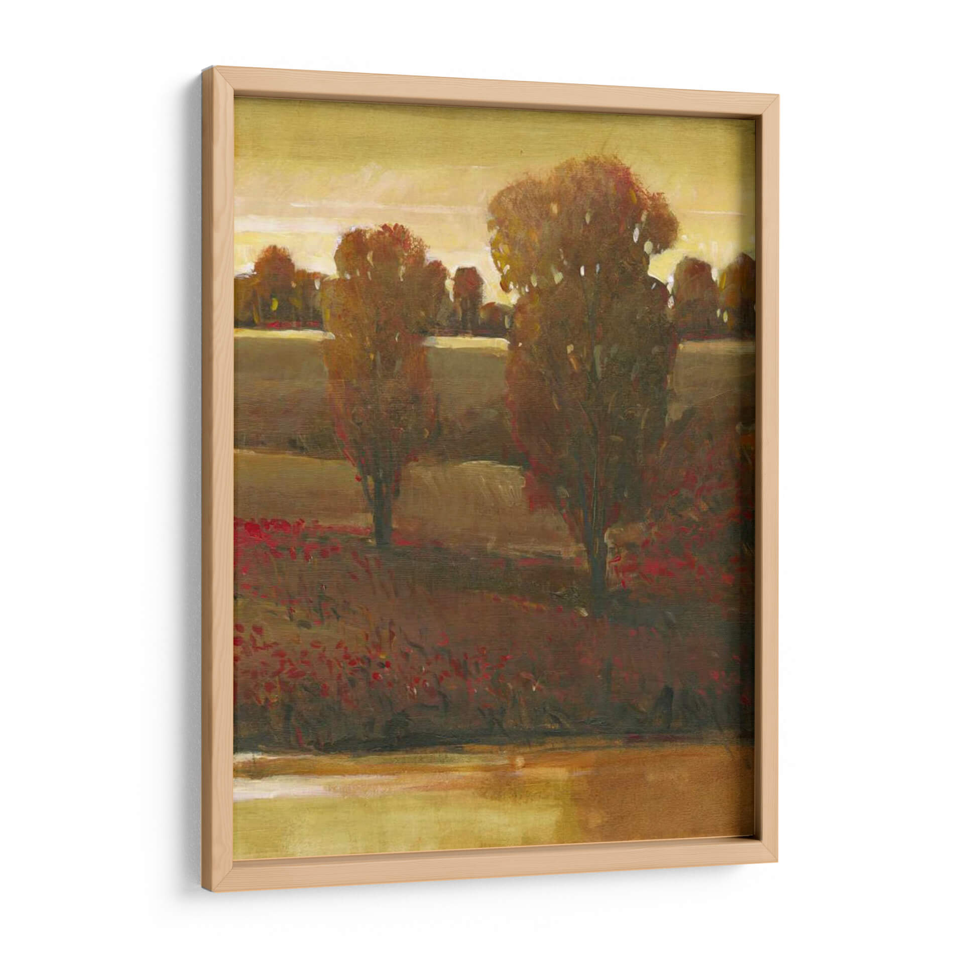 Sumérgete en la serena belleza de "Illuminating Sky II", una obra de arte evocadora del artista Tim O'Toole que captura la esencia de un atardecer o amanecer en un paisaje natural. Este cuadro decorativo presenta una paleta de colores cálidos y terrosos, dominada por tonos ocres, dorados y rojizos, que crean una atmósfera acogedora y contemplativa. Las pinceladas expresivas dan vida a árboles esbeltos y un primer plano de vegetación vibrante, posiblemente amapolas, que contrastan con las suaves formas del cielo y el horizonte distante. La composición, con una línea de agua o campo iluminado en primer plano y la profundidad que sugieren las capas de árboles, invita a la introspección y a la conexión con la naturaleza. "Illuminating Sky II" es ideal para añadir un toque de calidez y serenidad a tu sala de estar, dormitorio u oficina, sirviendo como un punto focal que evoca la tranquilidad de un momento suspendido en el tiempo. Transforma tu espacio con la luz y la emotividad de este paisaje contemporáneo.