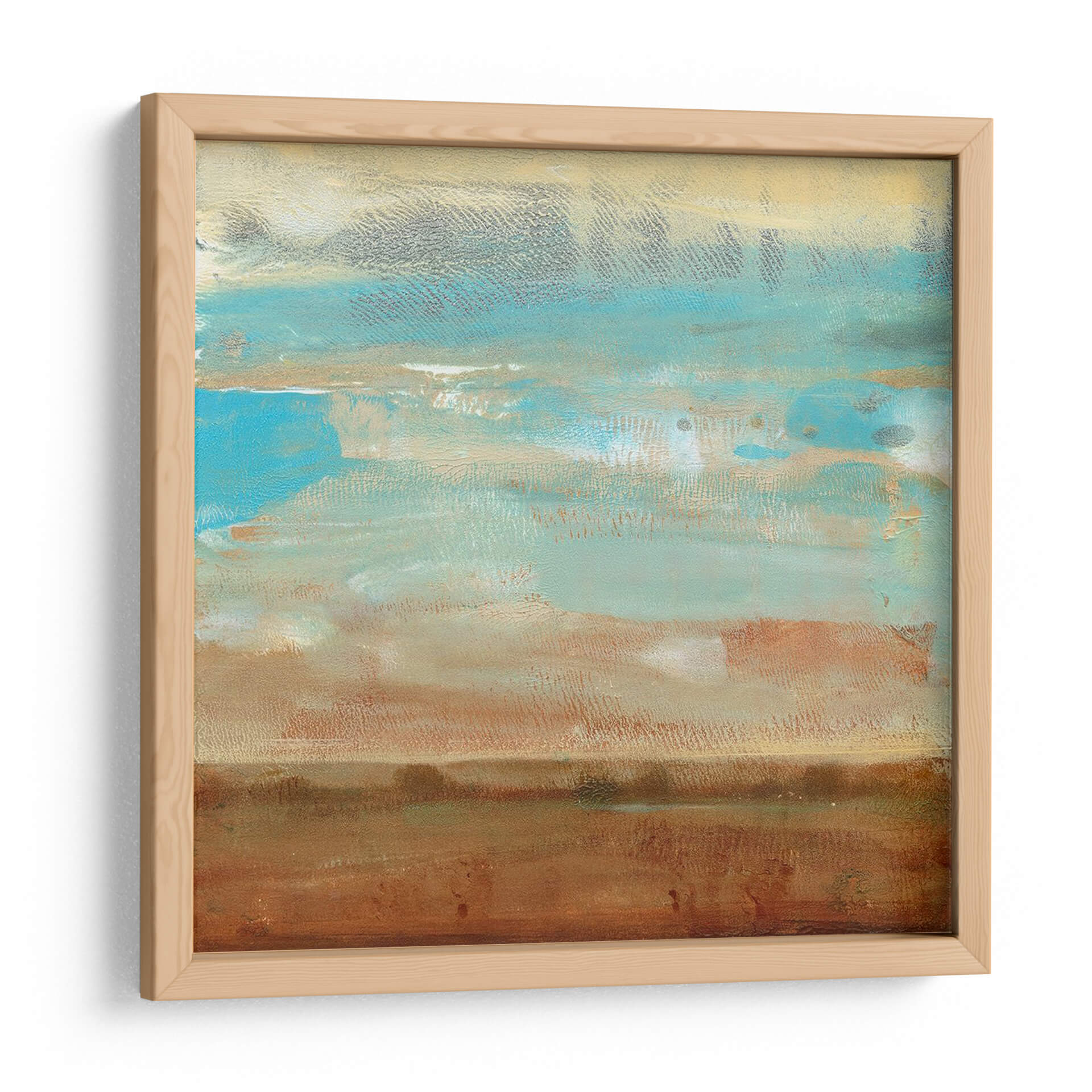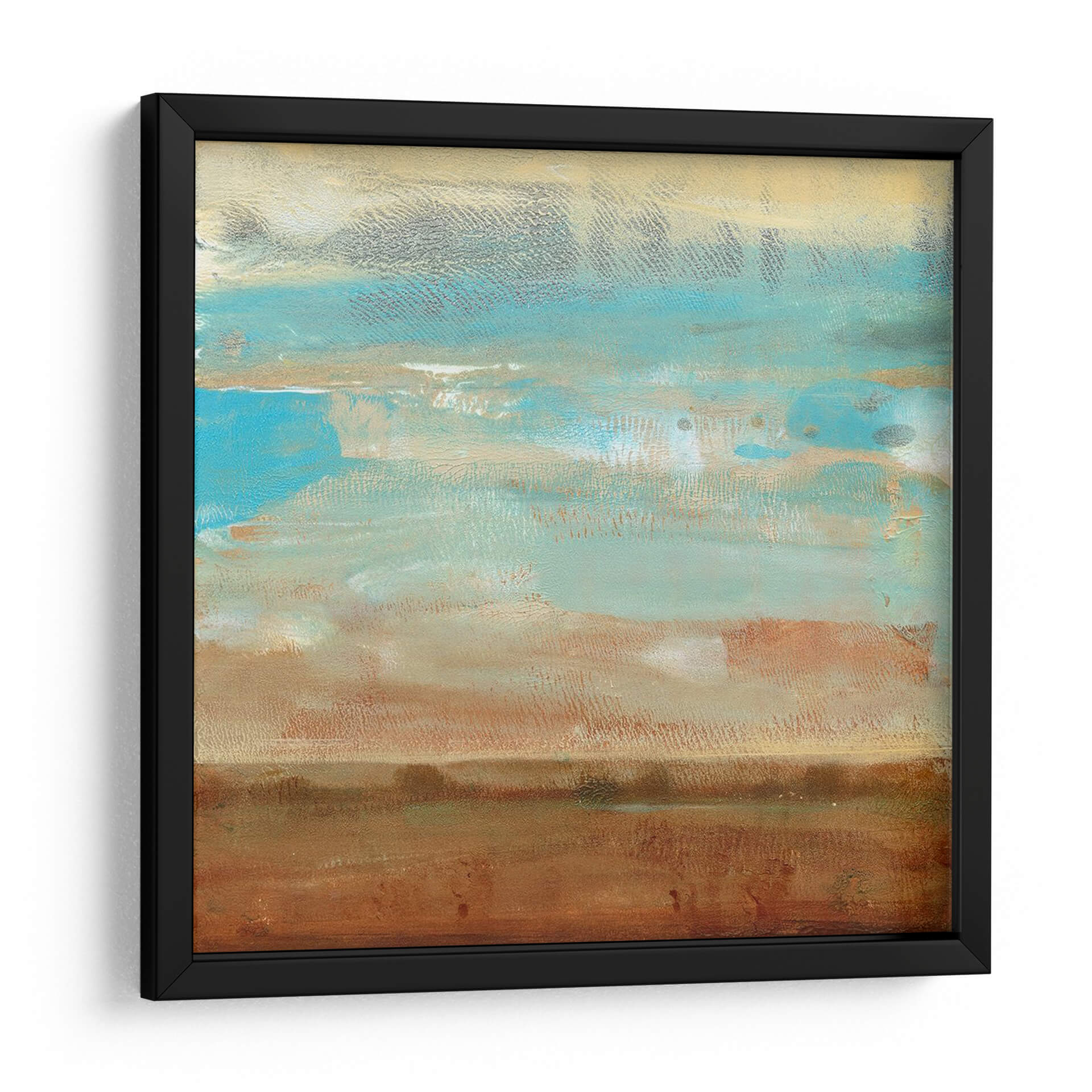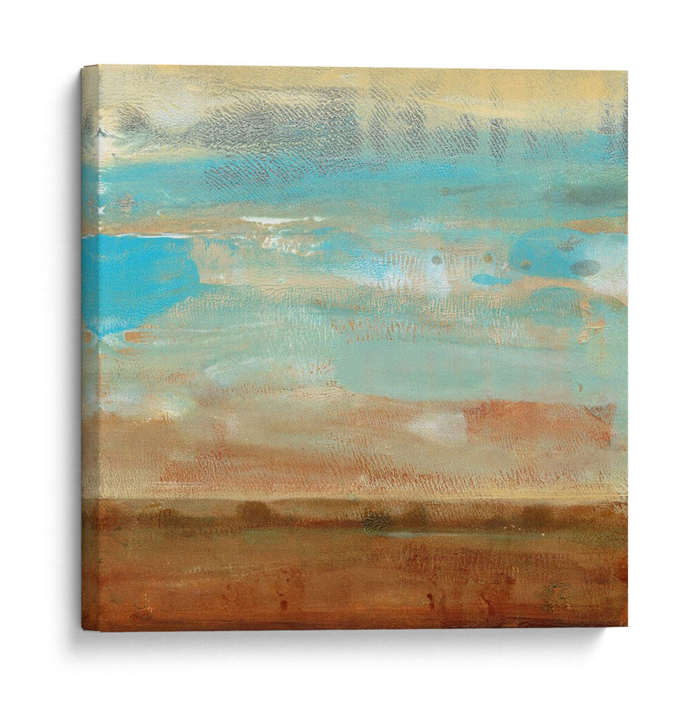 Sumérgete en la serenidad y la belleza etérea de "Impresiones De Paisaje I", una cautivadora obra de arte abstracto del artista Tim O'Toole. Esta pieza evoca la calma de un horizonte lejano, con capas de pinceladas texturizadas que sugieren un paisaje sereno bañado por la luz. La paleta de colores, dominada por tonos tierra cálidos como el marrón y el ocre, se entrelaza armoniosamente con vibrantes azules celestes y toques de gris pálido, creando una atmósfera de tranquilidad y contemplación. El estilo abstracto y la composición horizontal invitan a la reflexión, mientras que las sutiles variaciones de color y textura añaden profundidad y dinamismo. Ideal para añadir un toque de sofisticación natural a cualquier espacio, desde un salón moderno hasta un tranquilo dormitorio o una oficina que busque inspiración. Este cuadro decorativo abstracto es perfecto para quienes aprecian la belleza sutil y buscan una pieza que aporte paz y elegancia a su hogar. Deja que las sugerencias de naturaleza y cielo de esta obra transporten tu imaginación y transformen tu ambiente.