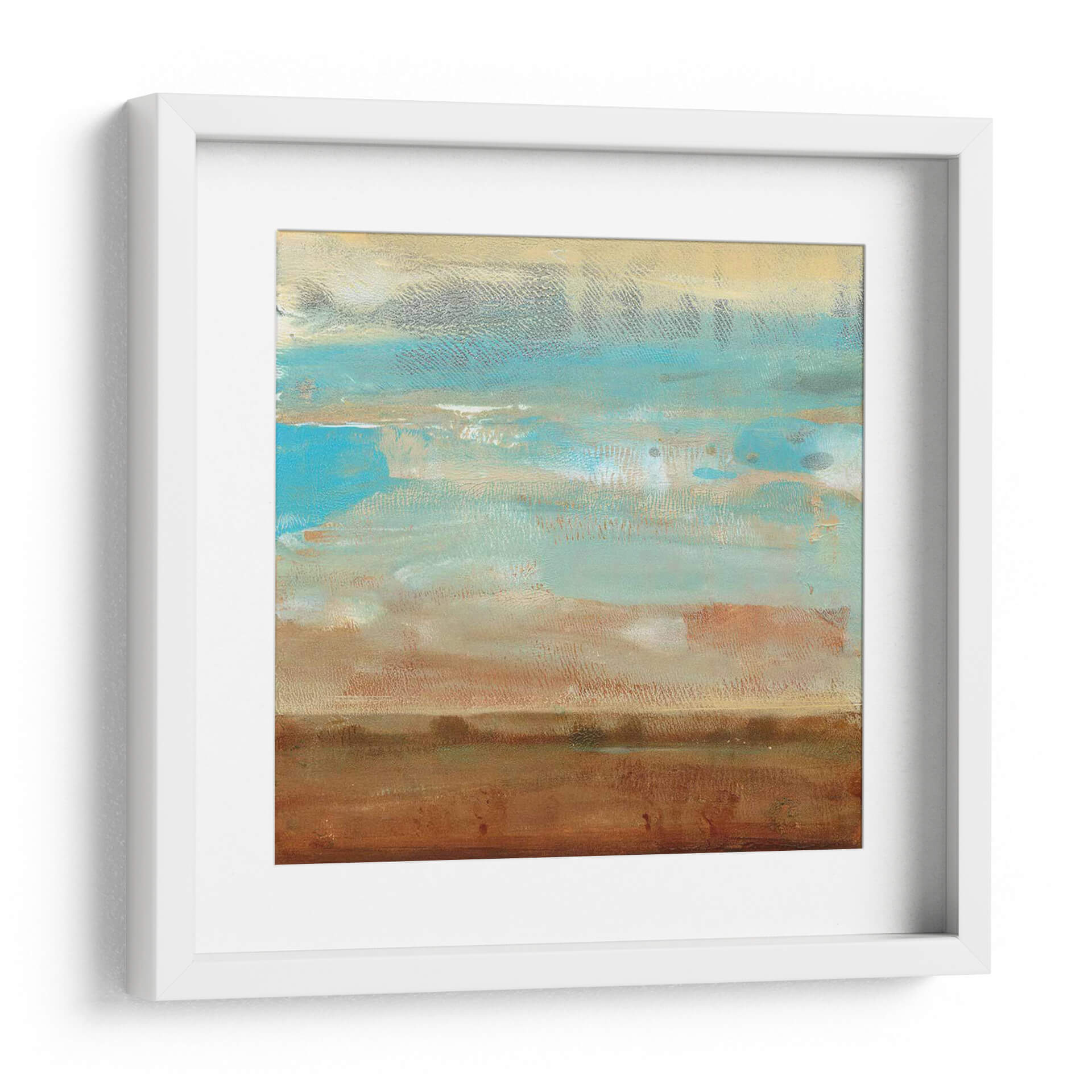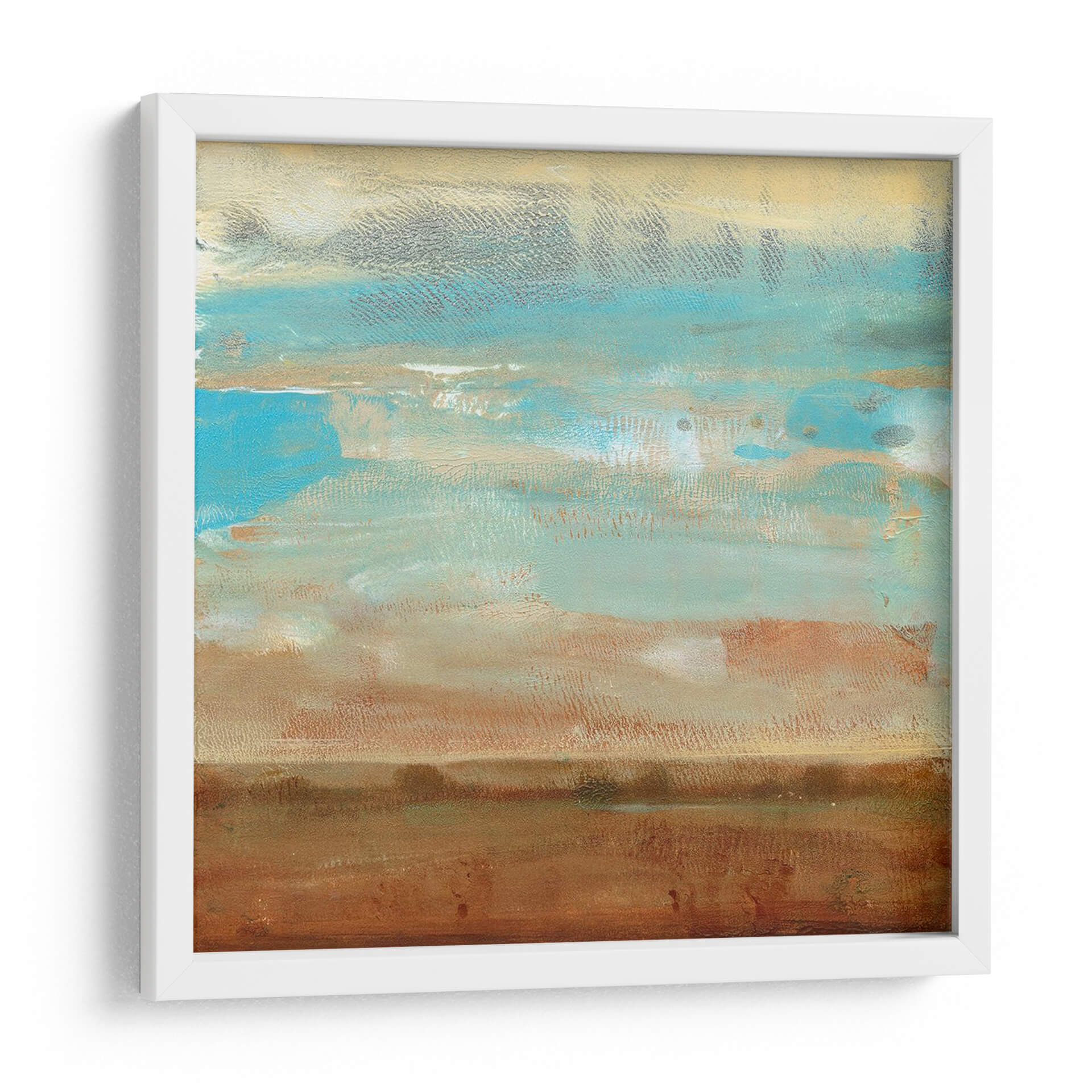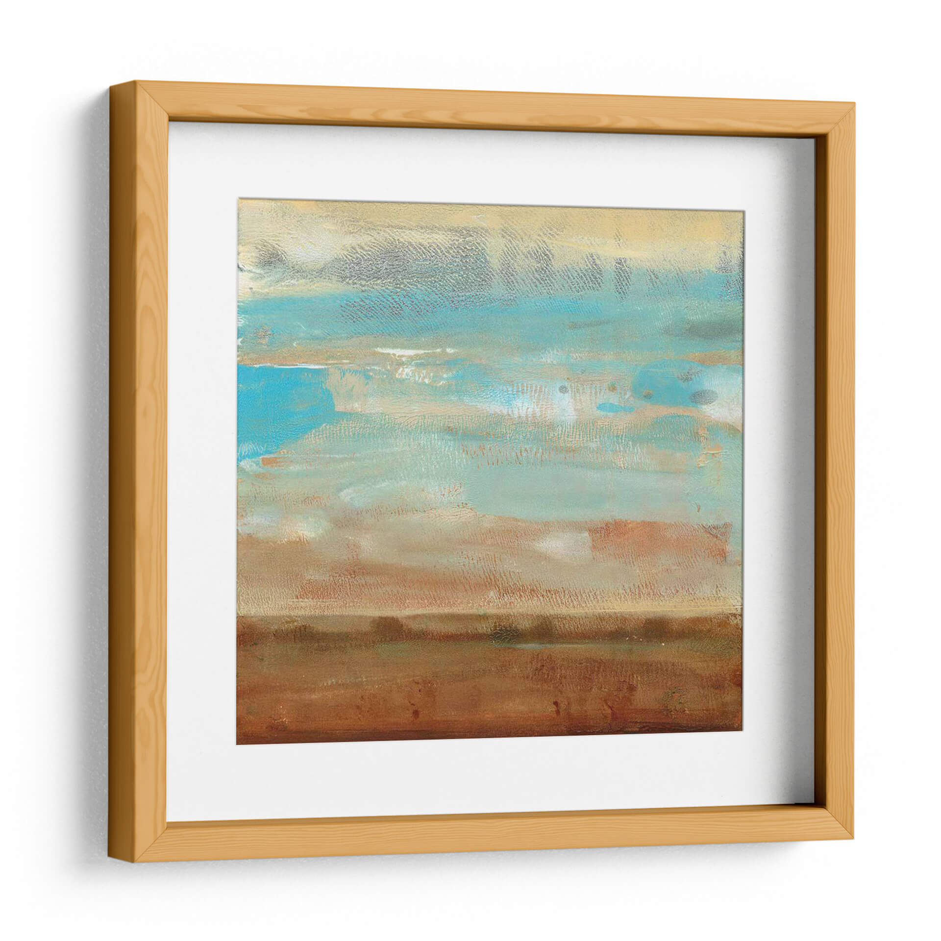 Sumérgete en la serenidad y la belleza etérea de "Impresiones De Paisaje I", una cautivadora obra de arte abstracto del artista Tim O'Toole. Esta pieza evoca la calma de un horizonte lejano, con capas de pinceladas texturizadas que sugieren un paisaje sereno bañado por la luz. La paleta de colores, dominada por tonos tierra cálidos como el marrón y el ocre, se entrelaza armoniosamente con vibrantes azules celestes y toques de gris pálido, creando una atmósfera de tranquilidad y contemplación. El estilo abstracto y la composición horizontal invitan a la reflexión, mientras que las sutiles variaciones de color y textura añaden profundidad y dinamismo. Ideal para añadir un toque de sofisticación natural a cualquier espacio, desde un salón moderno hasta un tranquilo dormitorio o una oficina que busque inspiración. Este cuadro decorativo abstracto es perfecto para quienes aprecian la belleza sutil y buscan una pieza que aporte paz y elegancia a su hogar. Deja que las sugerencias de naturaleza y cielo de esta obra transporten tu imaginación y transformen tu ambiente.