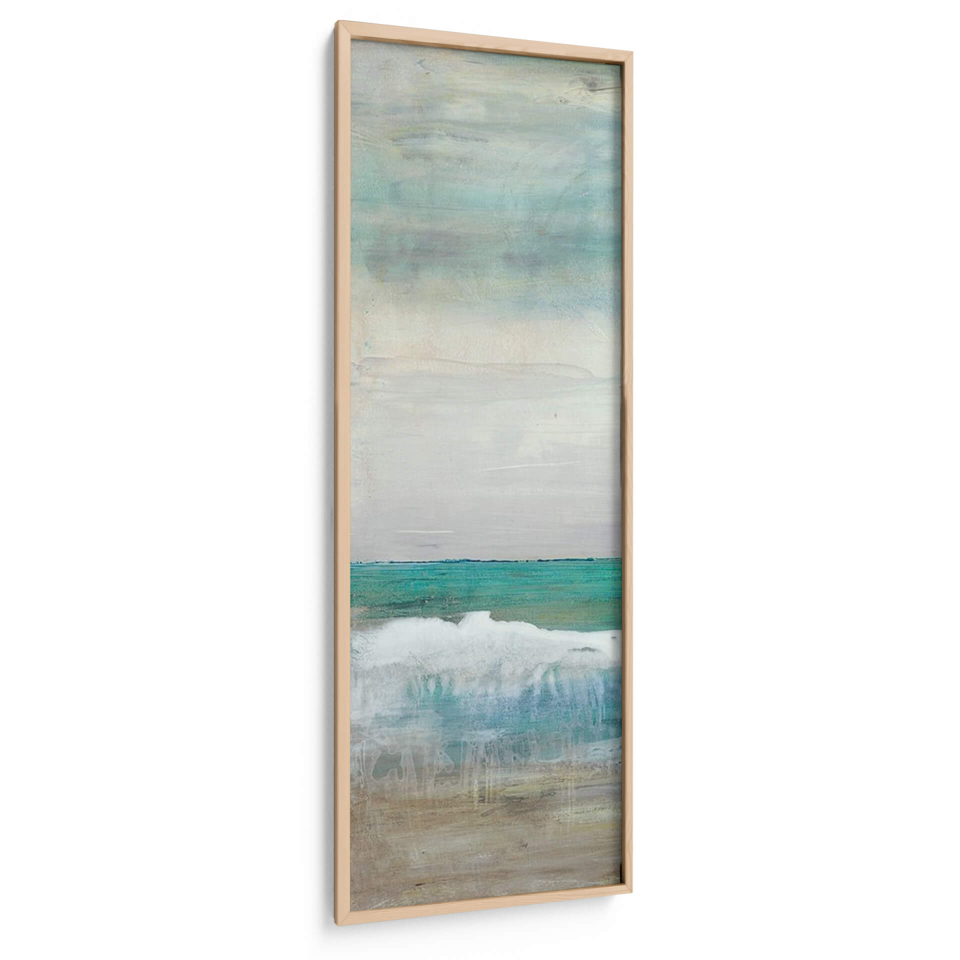 Sumérgete en la serenidad del océano con "Invitando A I", una obra de arte abstracta de Lila Bramma que captura la esencia etérea de la costa. Este cuadro decorativo se caracteriza por su paleta de colores suave, dominada por tonos celestes, grises y toques de turquesa vibrante que evocan la inmensidad del mar y el cielo en un día nublado pero apacible. La composición, con sus líneas horizontales sutiles y la representación abstracta de una ola rompiendo, transmite una sensación de calma y movimiento pausado. Las pinceladas sugieren una textura rica y una profundidad contemplativa, invitando al espectador a perderse en sus matices. "Invitando A I" es la pieza perfecta para añadir un toque de tranquilidad y sofisticación a cualquier espacio, ya sea un salón moderno, un dormitorio sereno o una oficina que busca un ambiente de paz. Su estilo contemporáneo y su atmósfera relajante la convierten en una adición versátil y atractiva para quienes buscan decorar con arte que inspire contemplación y conexión con la naturaleza. Este cuadro decorativo abstracto es una ventana a la calma interior, ideal para crear un refugio personal de serenidad y belleza.