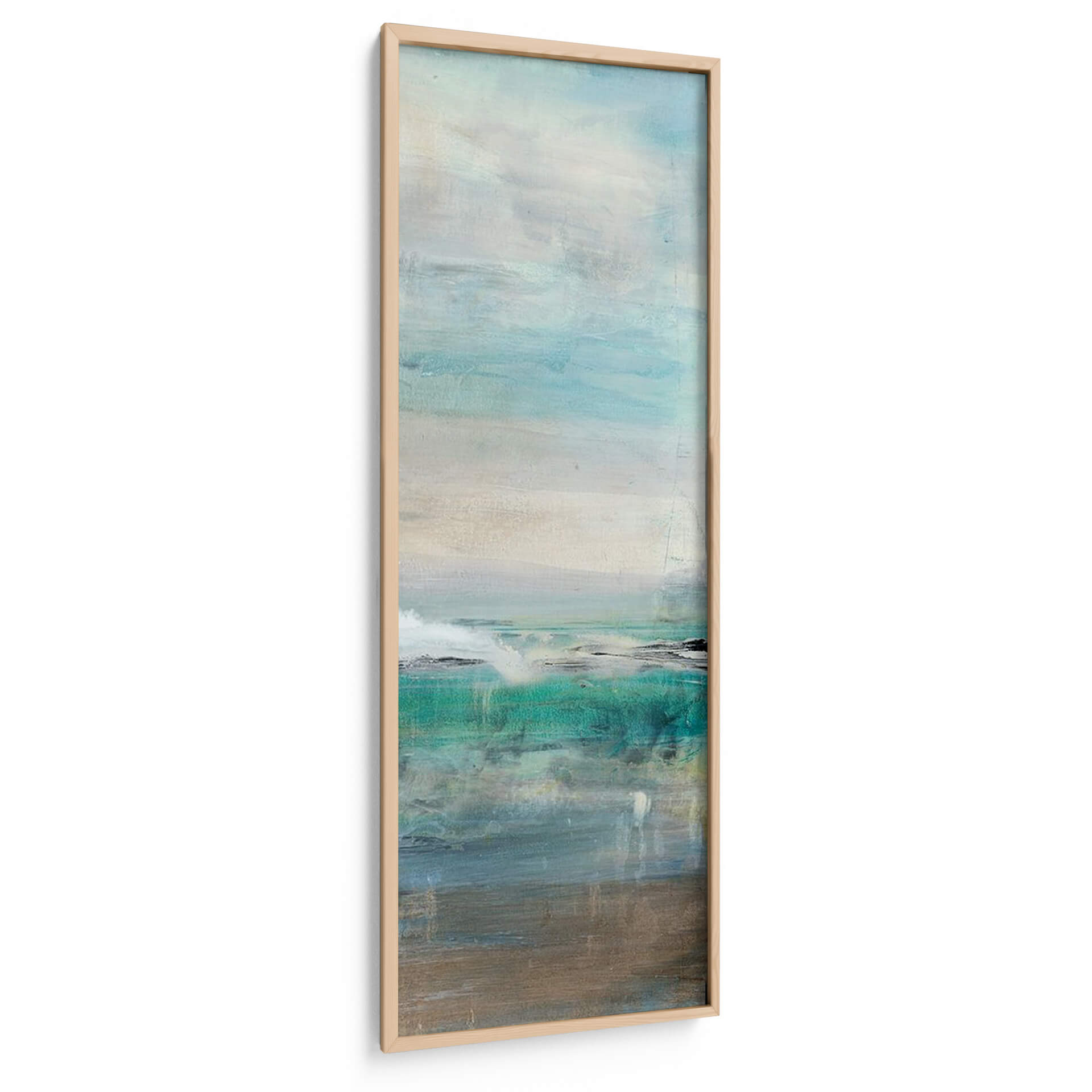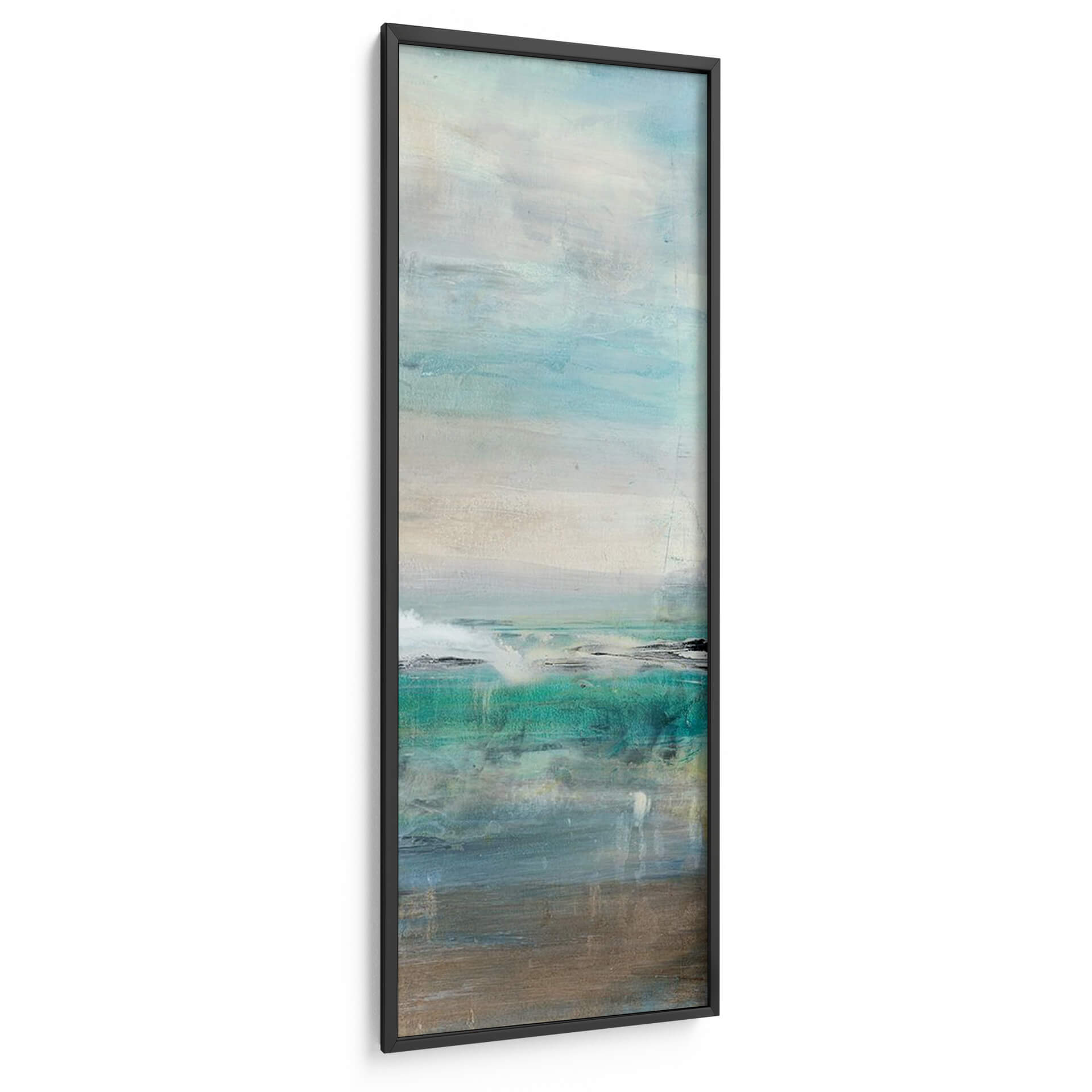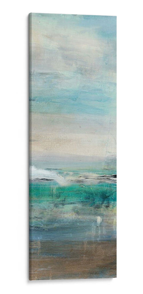 Sumérgete en la serenidad y la belleza etérea de "Invitando III", una obra de arte contemporáneo que evoca la tranquilidad de un paisaje marino abstracto. Lila Bramma, a través de pinceladas sutiles y una paleta de colores cuidadosamente seleccionada, nos transporta a un espacio de calma y reflexión. Los tonos acuáticos, que van desde el azul profundo y el turquesa vibrante hasta suaves grises y beiges terrosos, crean una atmósfera envolvente que recuerda a las costas bañadas por el sol y las aguas tranquilas. La composición, dividida en planos horizontales, sugiere la inmensidad del océano y el cielo, con texturas que invitan a la contemplación. Este cuadro decorativo es perfecto para añadir un toque de sofisticación y serenidad a cualquier estancia, ya sea un salón moderno, un dormitorio o una oficina que busque un respiro visual. "Invitando III" no es solo una pieza decorativa, sino una ventana a la paz interior, ideal para quienes aprecian el arte abstracto con una conexión emocional profunda. Su estilo abstracto y su ejecución magistral lo convierten en una adición valiosa para cualquier colección de arte o para dar vida a espacios que buscan un equilibrio visual y una sensación de bienestar.