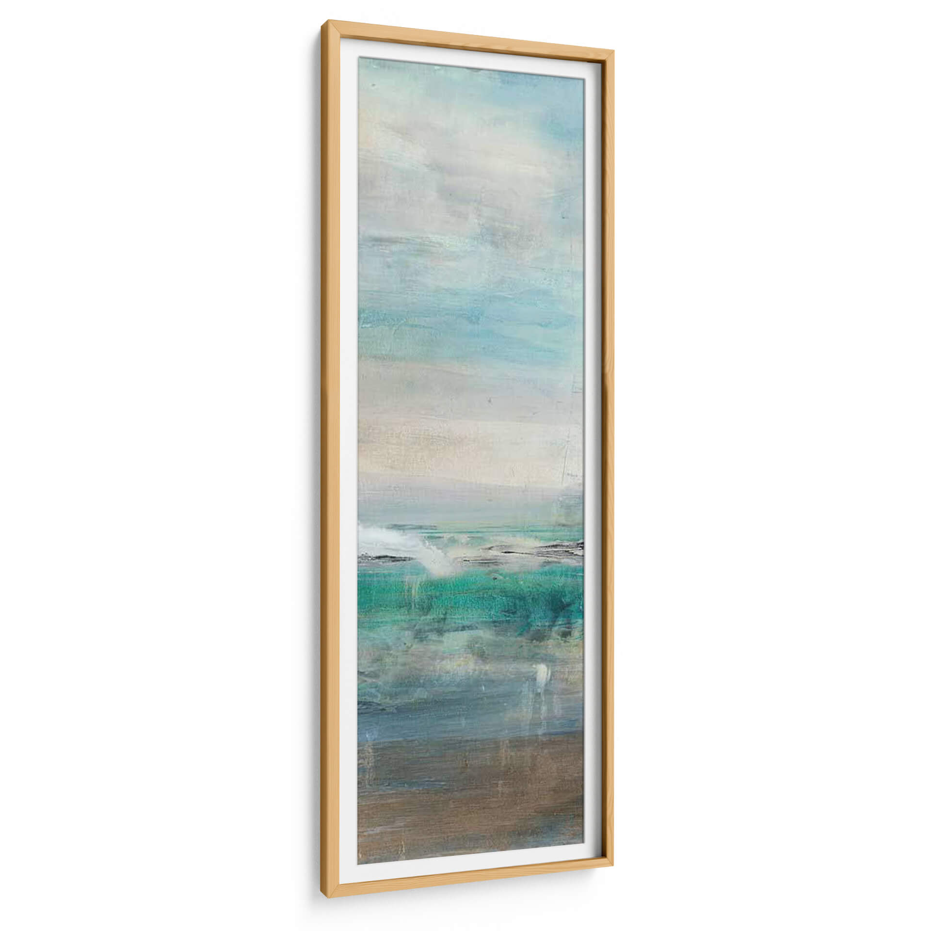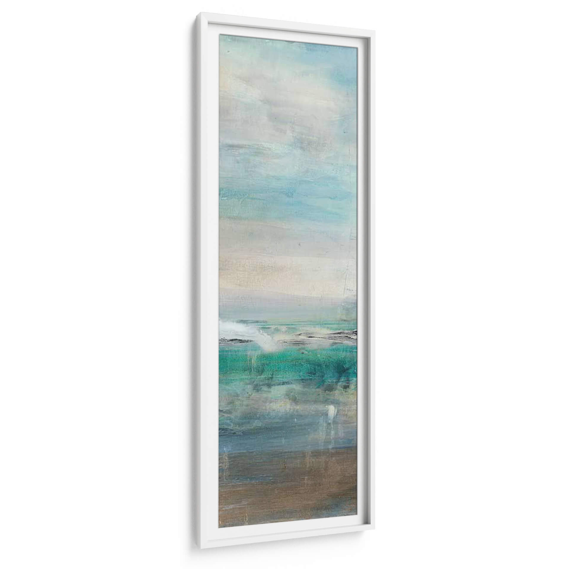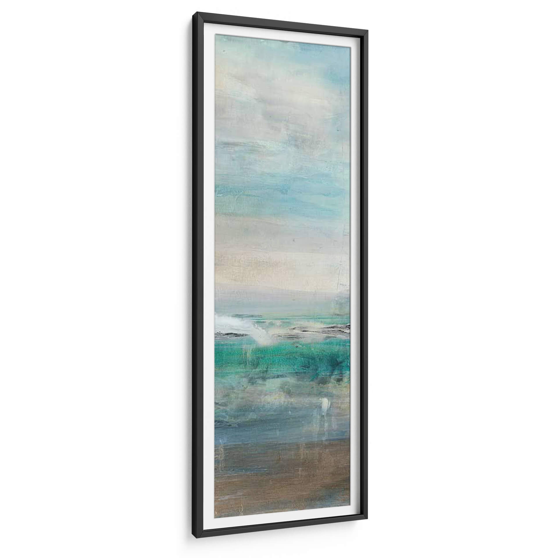 Sumérgete en la serenidad y la belleza etérea de "Invitando III", una obra de arte contemporáneo que evoca la tranquilidad de un paisaje marino abstracto. Lila Bramma, a través de pinceladas sutiles y una paleta de colores cuidadosamente seleccionada, nos transporta a un espacio de calma y reflexión. Los tonos acuáticos, que van desde el azul profundo y el turquesa vibrante hasta suaves grises y beiges terrosos, crean una atmósfera envolvente que recuerda a las costas bañadas por el sol y las aguas tranquilas. La composición, dividida en planos horizontales, sugiere la inmensidad del océano y el cielo, con texturas que invitan a la contemplación. Este cuadro decorativo es perfecto para añadir un toque de sofisticación y serenidad a cualquier estancia, ya sea un salón moderno, un dormitorio o una oficina que busque un respiro visual. "Invitando III" no es solo una pieza decorativa, sino una ventana a la paz interior, ideal para quienes aprecian el arte abstracto con una conexión emocional profunda. Su estilo abstracto y su ejecución magistral lo convierten en una adición valiosa para cualquier colección de arte o para dar vida a espacios que buscan un equilibrio visual y una sensación de bienestar.