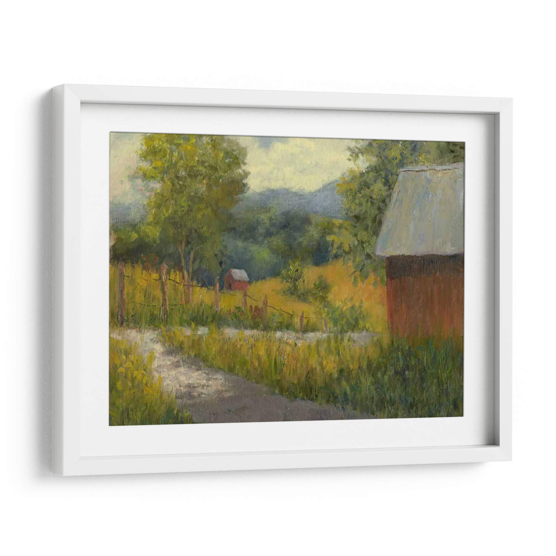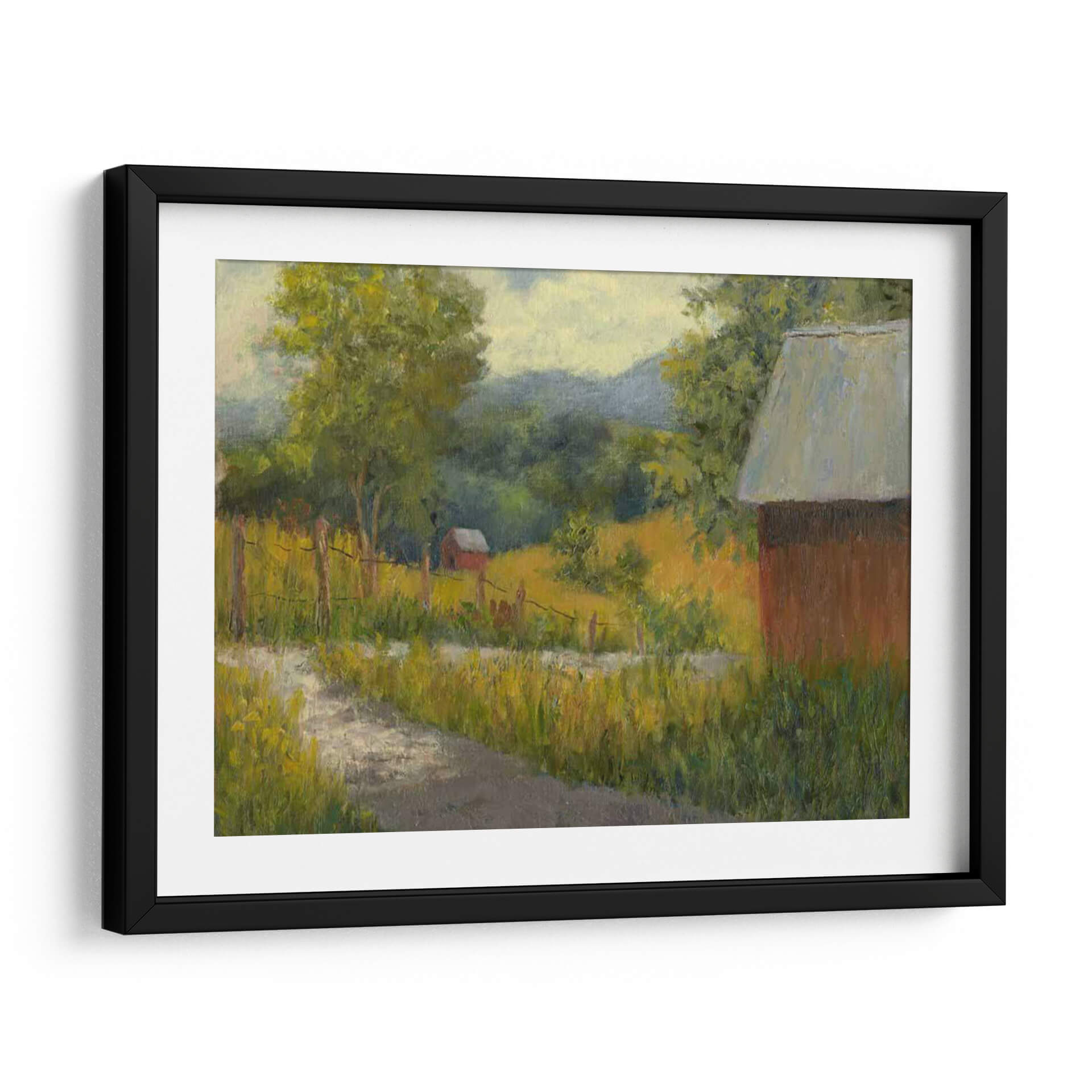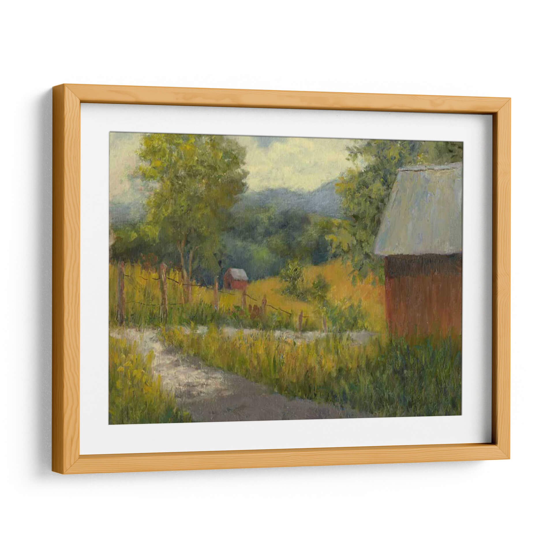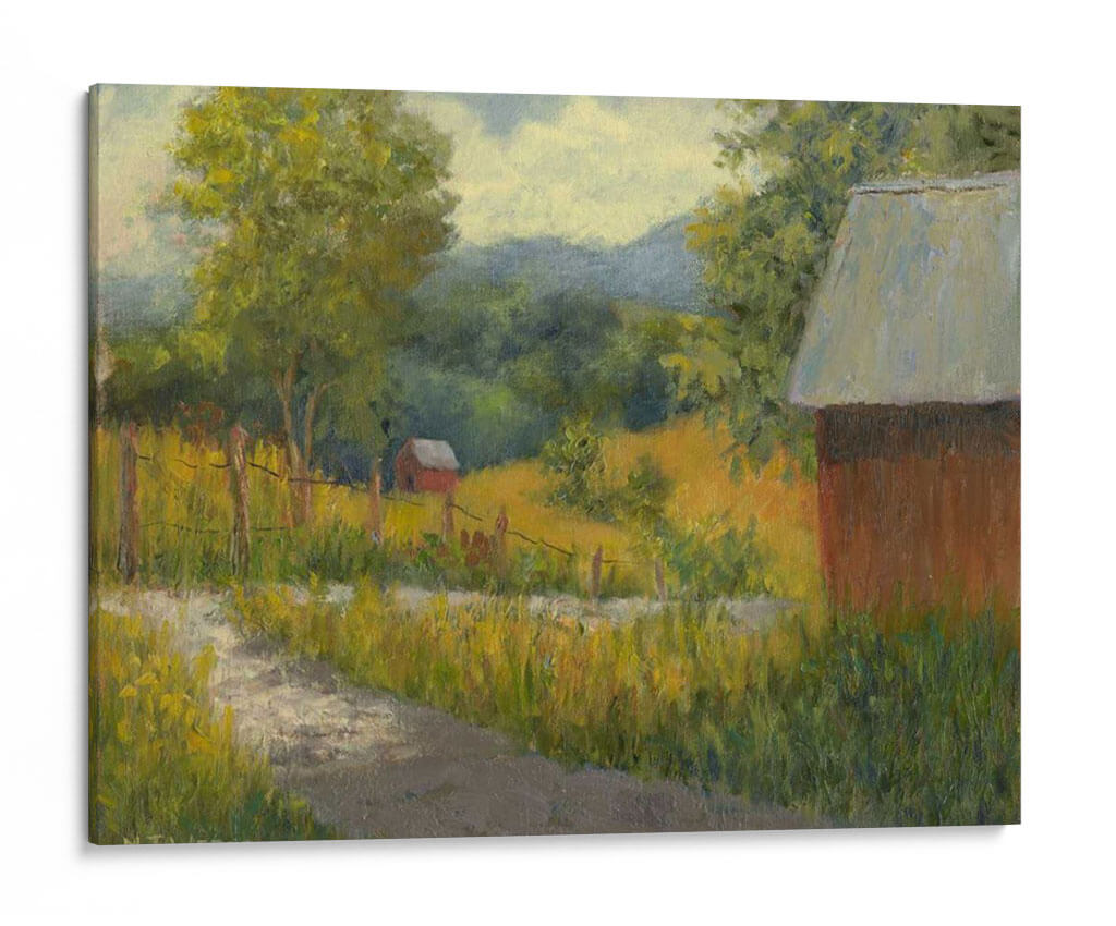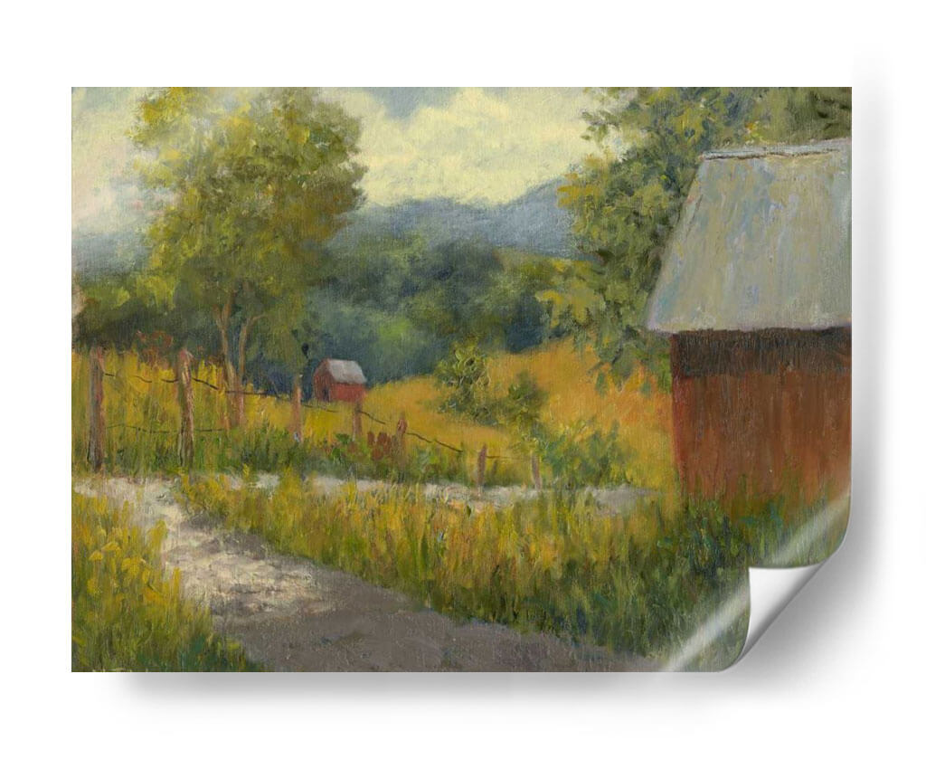 Sumérgete en la serenidad del campo con este encantador cuadro decorativo "Kentucky Hill Farm" de Mary Jean Weber. La obra captura la esencia de una tarde apacible en una granja, con un camino de grava que serpentea entre praderas doradas y exuberante vegetación. Al fondo, colinas suavemente onduladas se funden con un cielo nublado, creando una atmósfera de tranquilidad y nostalgia. El artista ha utilizado una paleta de colores cálidos y terrosos, dominada por verdes profundos, amarillos dorados y toques de rojo en los pequeños graneros dispersos, evocando la belleza rústica y la simplicidad de la vida rural. La pincelada suelta y expresiva confiere a la pieza un aire impresionista, invitando al espectador a detenerse y apreciar los detalles sutiles de la naturaleza. Este cuadro es ideal para añadir un toque de calma y conexión con la tierra a cualquier espacio, ya sea una sala de estar acogedora, un estudio tranquilo o un dormitorio que busque serenidad. Transforma tu hogar en un refugio de paz con esta evocadora obra de arte paisajístico.