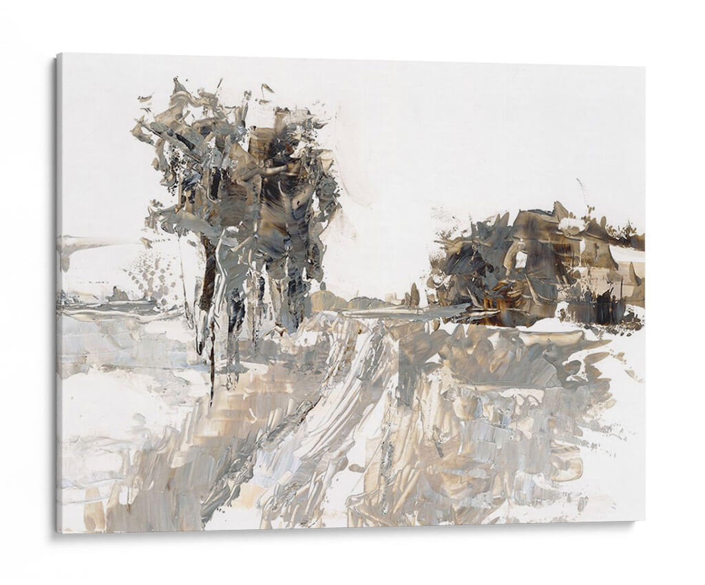 Sumérgete en la serena belleza de "La Primera Helada II" de Ethan Harper, una obra de arte abstracto que evoca la tranquilidad y el encanto sutil de un paisaje invernal. Con una paleta de colores dominada por tonos tierra, grises y blancos puros, esta pieza captura la esencia etérea de la primera escarcha del año, transformando un momento efímero en una experiencia visual duradera. Las pinceladas audaces y texturizadas crean una profundidad cautivadora, invitando al espectador a explorar las formas sugeridas de árboles y terrenos bajo un cielo despejado y luminoso. El estilo expresionista abstracto de Harper infunde a la composición una energía contenida y una atmósfera de calma contemplativa, perfecta para añadir un toque de sofisticación y reflexión a cualquier espacio. Este cuadro decorativo es ideal para salones modernos, oficinas minimalistas o dormitorios que buscan un refugio de paz y elegancia. "La Primera Helada II" no es solo una obra de arte, es una invitación a sentir la pureza y la quietud de la naturaleza en su forma más abstracta y poética, convirtiéndose en un punto focal que inspira serenidad y estimula la imaginación en tu hogar u oficina.