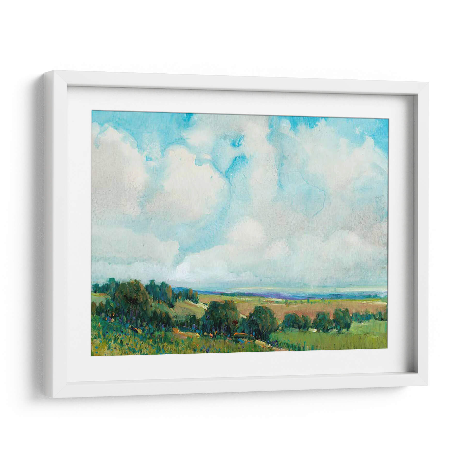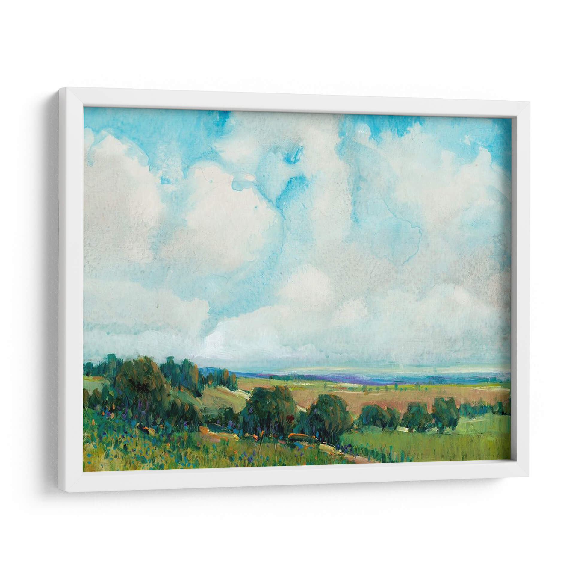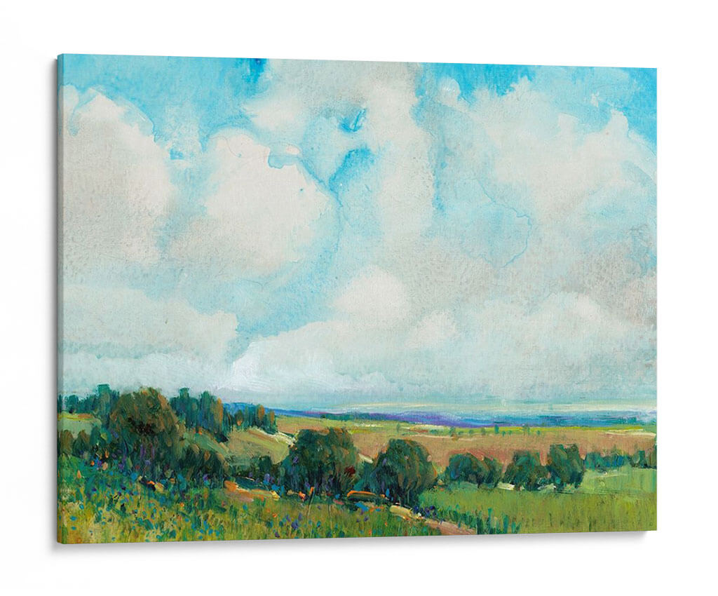 Transporta tu imaginación a un cielo abierto y campos ondulantes con "Levantamiento de Nubes I", una obra de arte cautivadora que captura la esencia de un día sereno. El artista Tim O'Toole utiliza una paleta de colores suaves y etéreos, dominada por celestes profundos y blancos algodonosos en el cielo, que contrastan maravillosamente con los verdes vibrantes y ocres de la tierra. Las pinceladas sueltas y expresivas evocan una sensación de movimiento, como si las nubes estuvieran danzando en el viento y la brisa acariciara la hierba. Esta pieza es un recordatorio de la belleza tranquila de la naturaleza, perfecta para infundir calma y serenidad en cualquier espacio. Ya sea que busques un cuadro decorativo para tu sala de estar, un toque de inspiración para tu oficina o un oasis de paz para tu dormitorio, "Levantamiento de Nubes I" es una elección excepcional. Su estilo paisajístico contemporáneo y su atmósfera pacífica lo convierten en un complemento ideal para decoraciones que buscan un equilibrio entre lo natural y lo artístico, invitando a la contemplación y al descanso visual. Añade esta pieza a tu colección y deja que su ligereza y belleza llenen tu hogar.