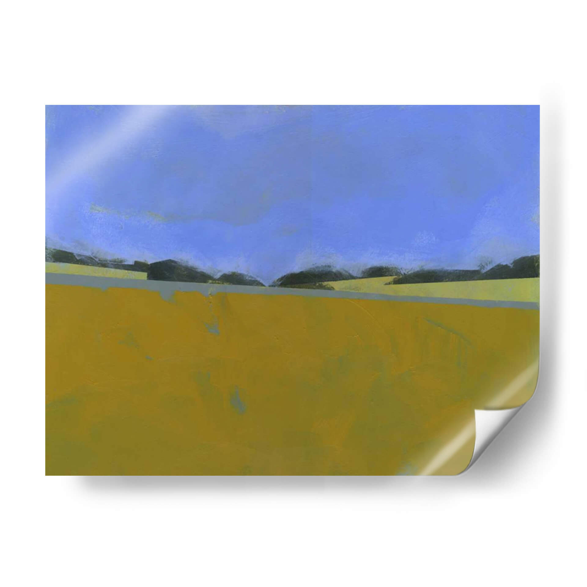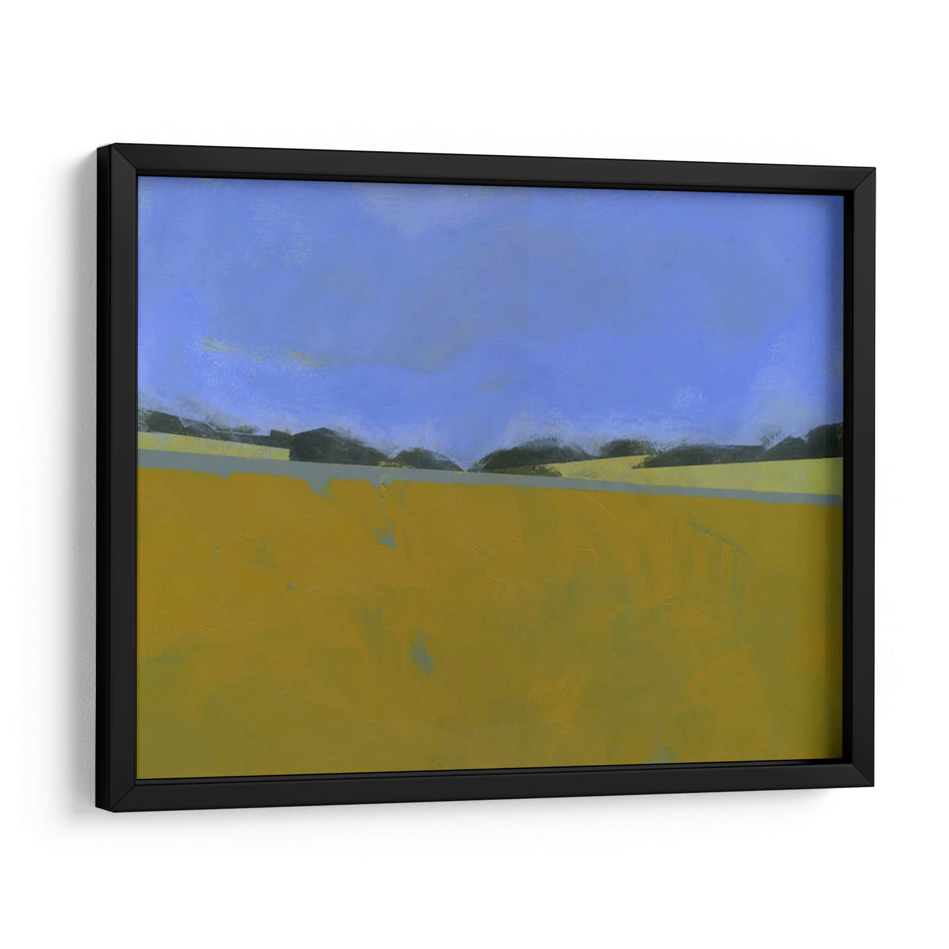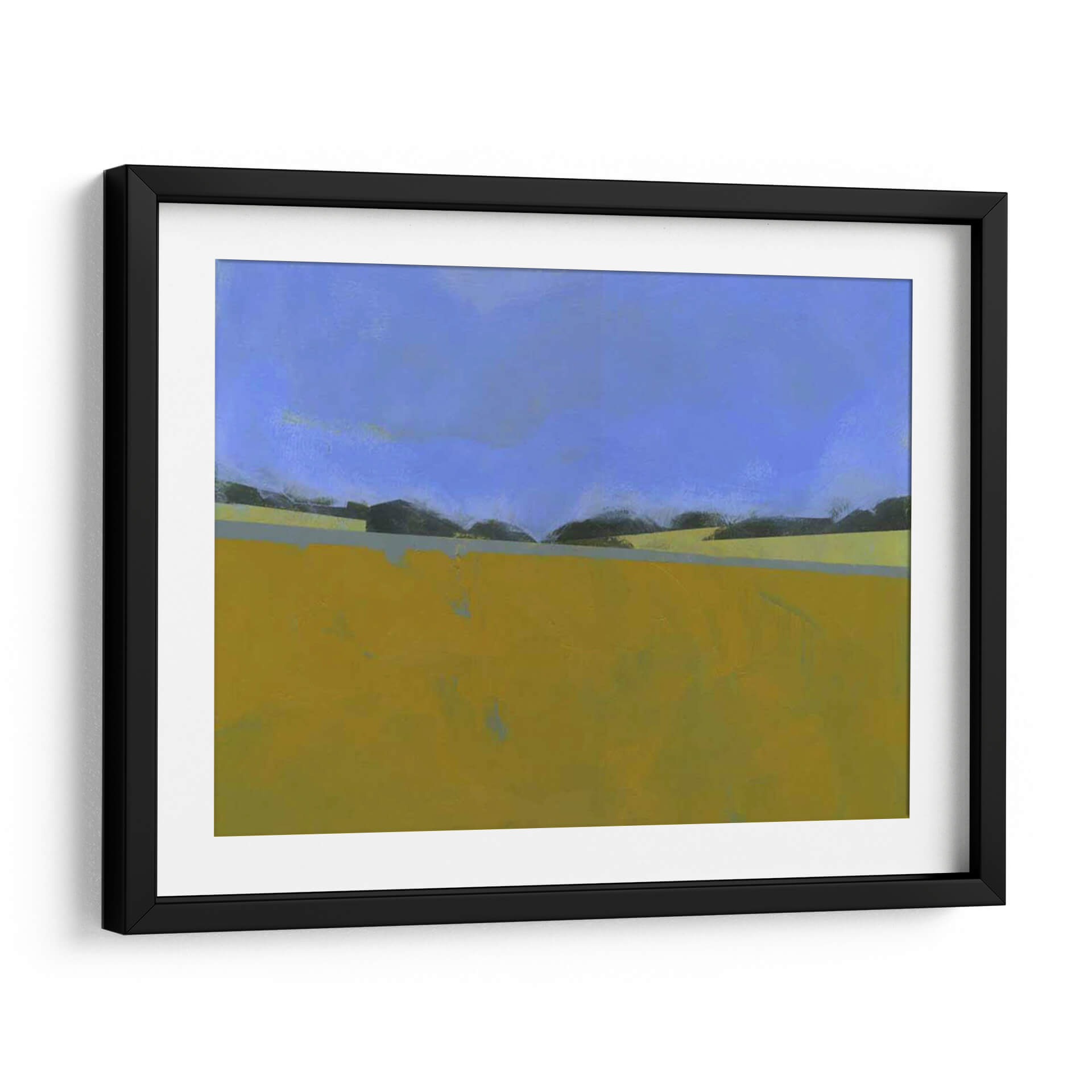 Sumérgete en la serenidad del paisaje con 'Lino Distante', una obra abstracta del artista Paul Bailey que captura la esencia de un campo abierto bajo un cielo vasto. Los tonos cálidos y terrosos del primer plano, predominantemente amarillos y ocres, contrastan sutilmente con las sombras oscuras de la línea del horizonte y el azul profundo y tranquilo del firmamento. La composición minimalista y las líneas limpias evocan una sensación de calma y amplitud, invitando a la contemplación. Este cuadro decorativo es ideal para espacios que buscan una atmósfera de paz y conexión con la naturaleza. Su estilo abstracto contemporáneo lo convierte en una pieza versátil, perfecta para añadir un toque de sofisticación a salones modernos, oficinas o dormitorios. Imagina la luz dorada de un atardecer lejano bañando tu pared, creando un punto focal que inspira tranquilidad y reflexión. 'Lino Distante' no es solo una obra de arte, es una invitación a pausar y apreciar la belleza en la simplicidad de un paisaje evocado.