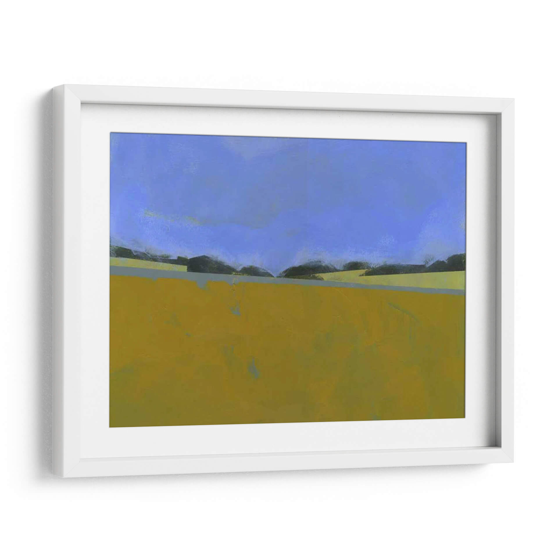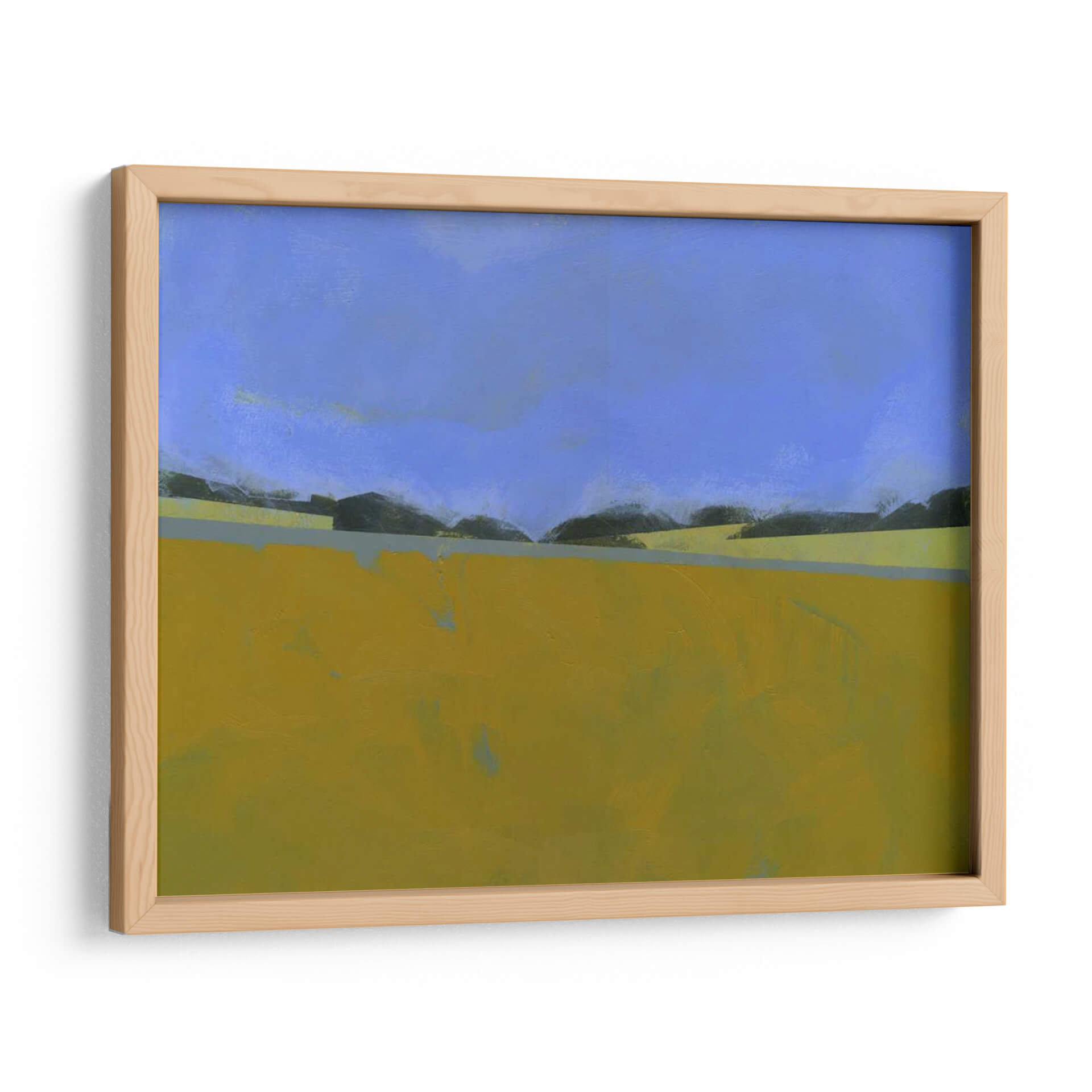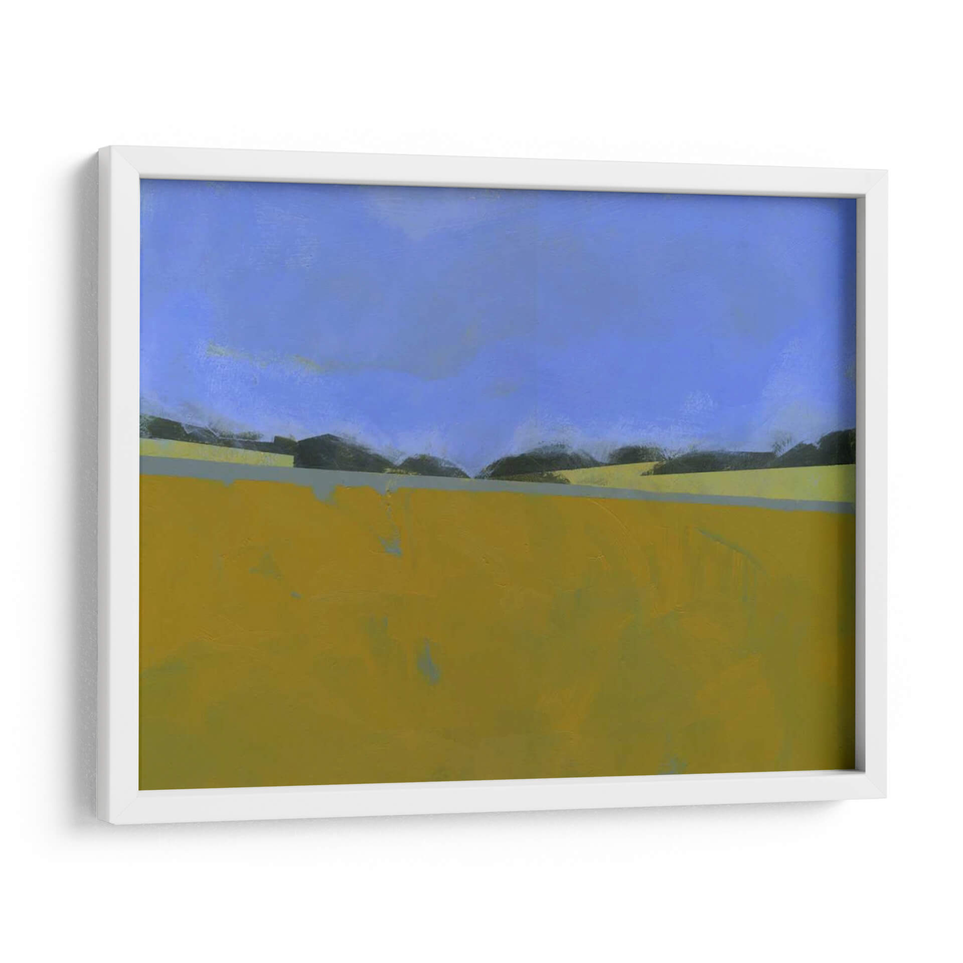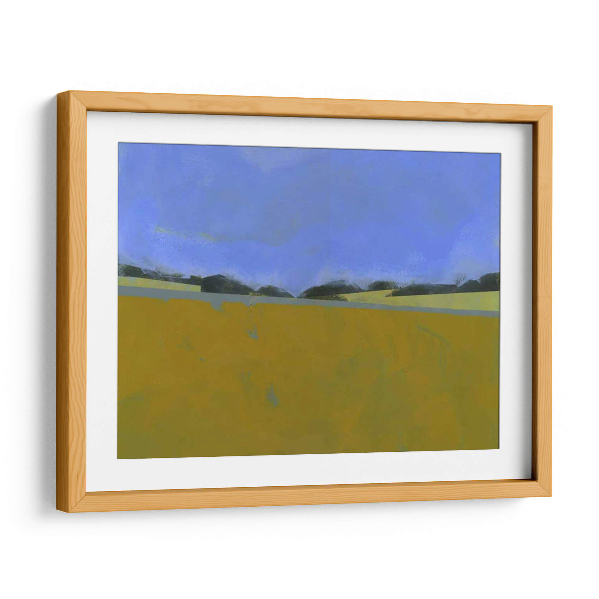 Sumérgete en la serenidad del paisaje con 'Lino Distante', una obra abstracta del artista Paul Bailey que captura la esencia de un campo abierto bajo un cielo vasto. Los tonos cálidos y terrosos del primer plano, predominantemente amarillos y ocres, contrastan sutilmente con las sombras oscuras de la línea del horizonte y el azul profundo y tranquilo del firmamento. La composición minimalista y las líneas limpias evocan una sensación de calma y amplitud, invitando a la contemplación. Este cuadro decorativo es ideal para espacios que buscan una atmósfera de paz y conexión con la naturaleza. Su estilo abstracto contemporáneo lo convierte en una pieza versátil, perfecta para añadir un toque de sofisticación a salones modernos, oficinas o dormitorios. Imagina la luz dorada de un atardecer lejano bañando tu pared, creando un punto focal que inspira tranquilidad y reflexión. 'Lino Distante' no es solo una obra de arte, es una invitación a pausar y apreciar la belleza en la simplicidad de un paisaje evocado.