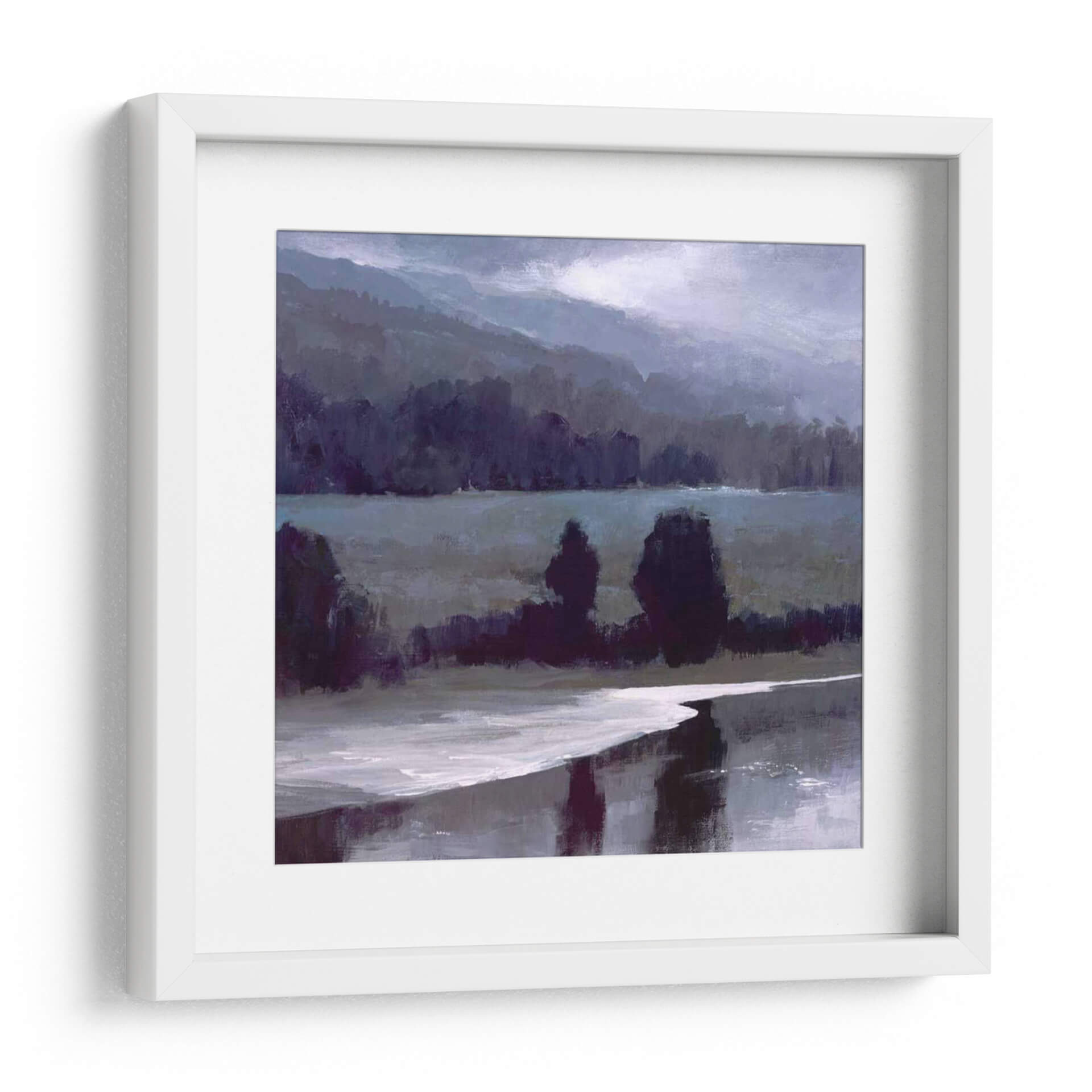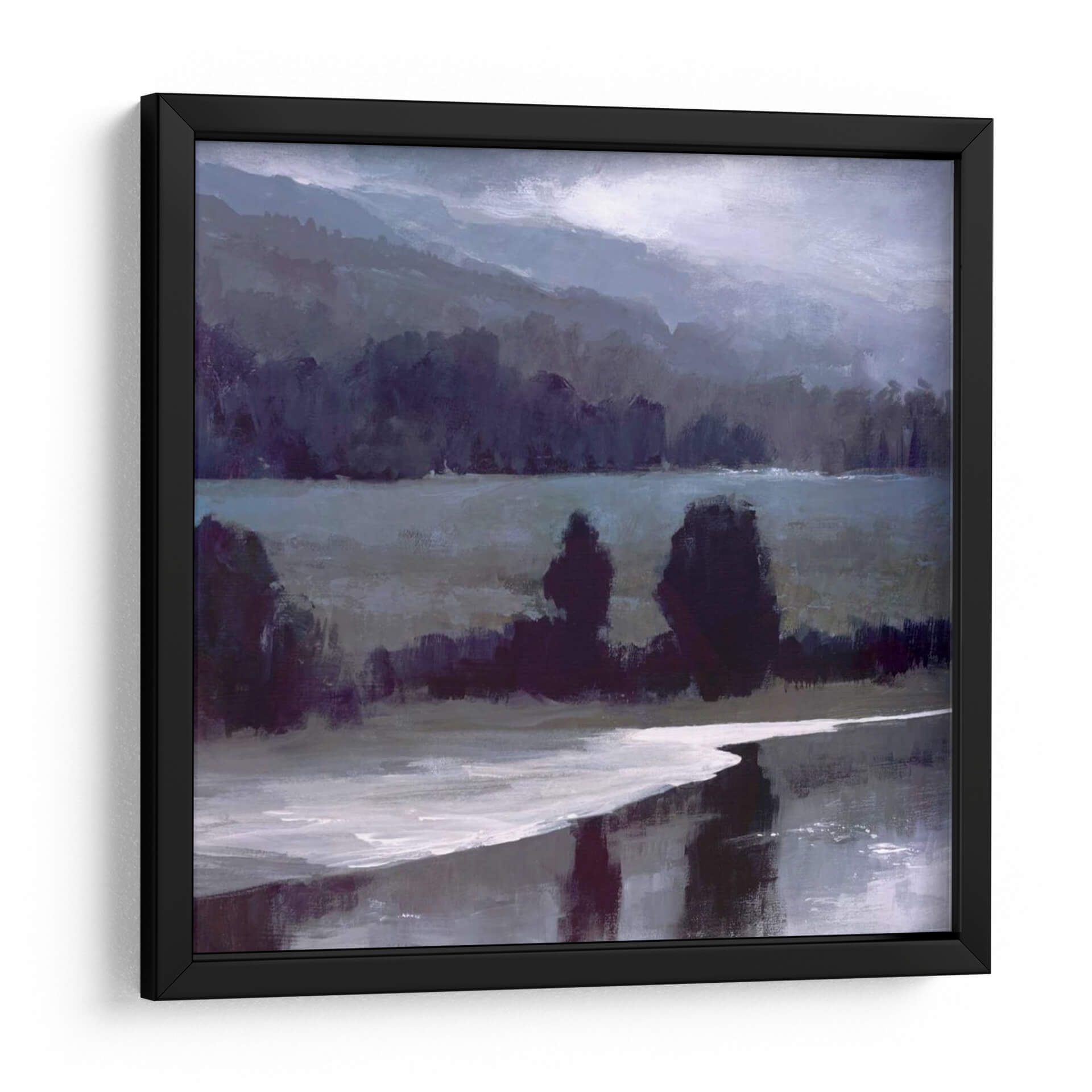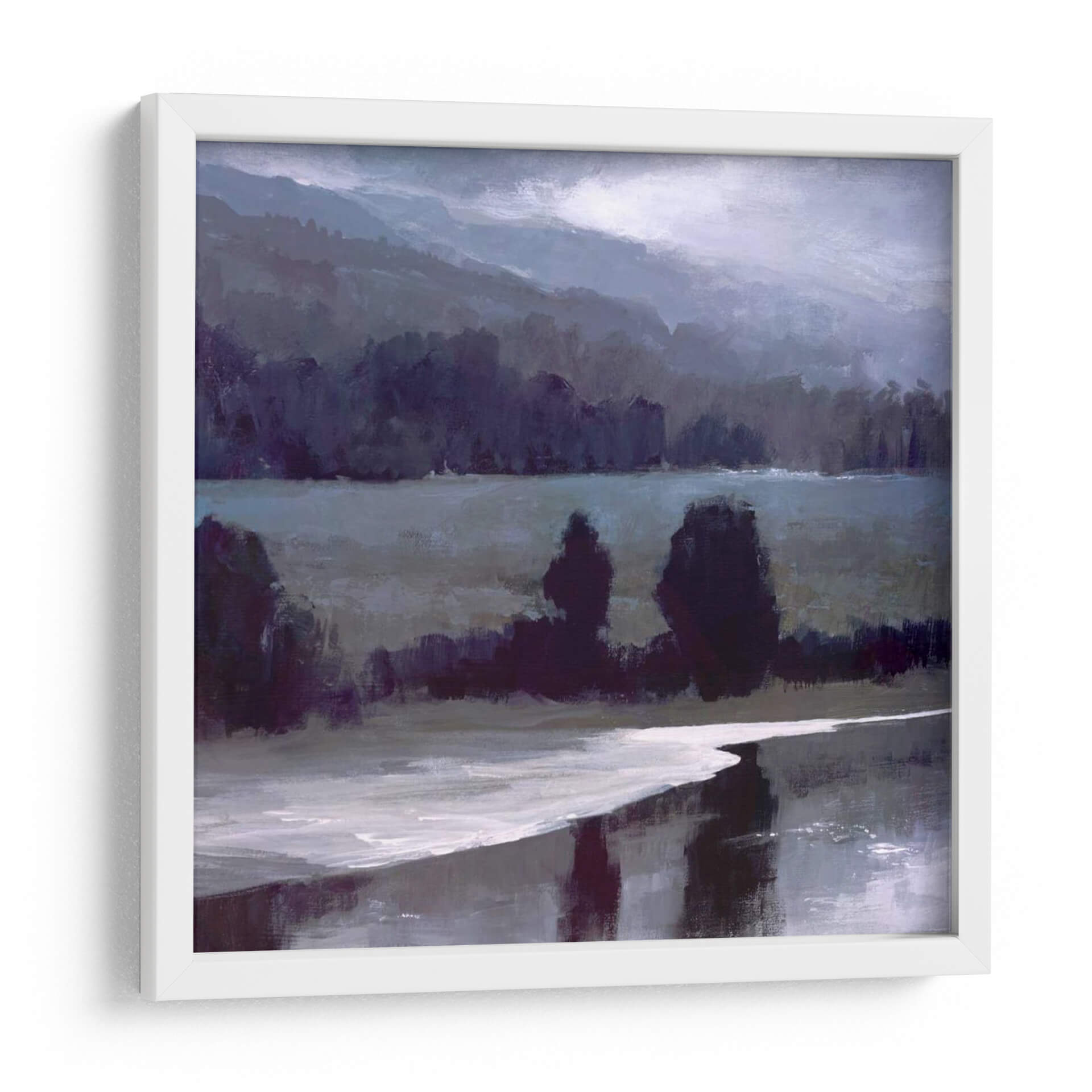 Sumérgete en la serenidad de "Luz Brillante-II", una obra de arte contemporáneo que captura la esencia de un paisaje brumoso y evocador. Sheila Finch nos presenta una composición magistral donde las formas se funden con la atmósfera, creando una sensación de profundidad y misterio. Los tonos profundos de azul y púrpura dominan la paleta, contrastando sutilmente con las pinceladas de luz que sugieren un amanecer o atardecer velado por la niebla. La presencia de árboles siluetados y la textura sutil del agua reflejando el cielo crean un ambiente de calma y contemplación. Este cuadro decorativo es perfecto para transformar cualquier espacio, aportando una dosis de tranquilidad y sofisticación. Ideal para salones modernos, estudios o dormitorios que buscan un toque de arte introspectivo y elegante. "Luz Brillante-II" no es solo una pieza decorativa, es una invitación a la reflexión y a la conexión con la naturaleza en su estado más puro y enigmático. Añade esta obra maestra a tu colección y deja que su belleza sutil ilumine tu hogar.
