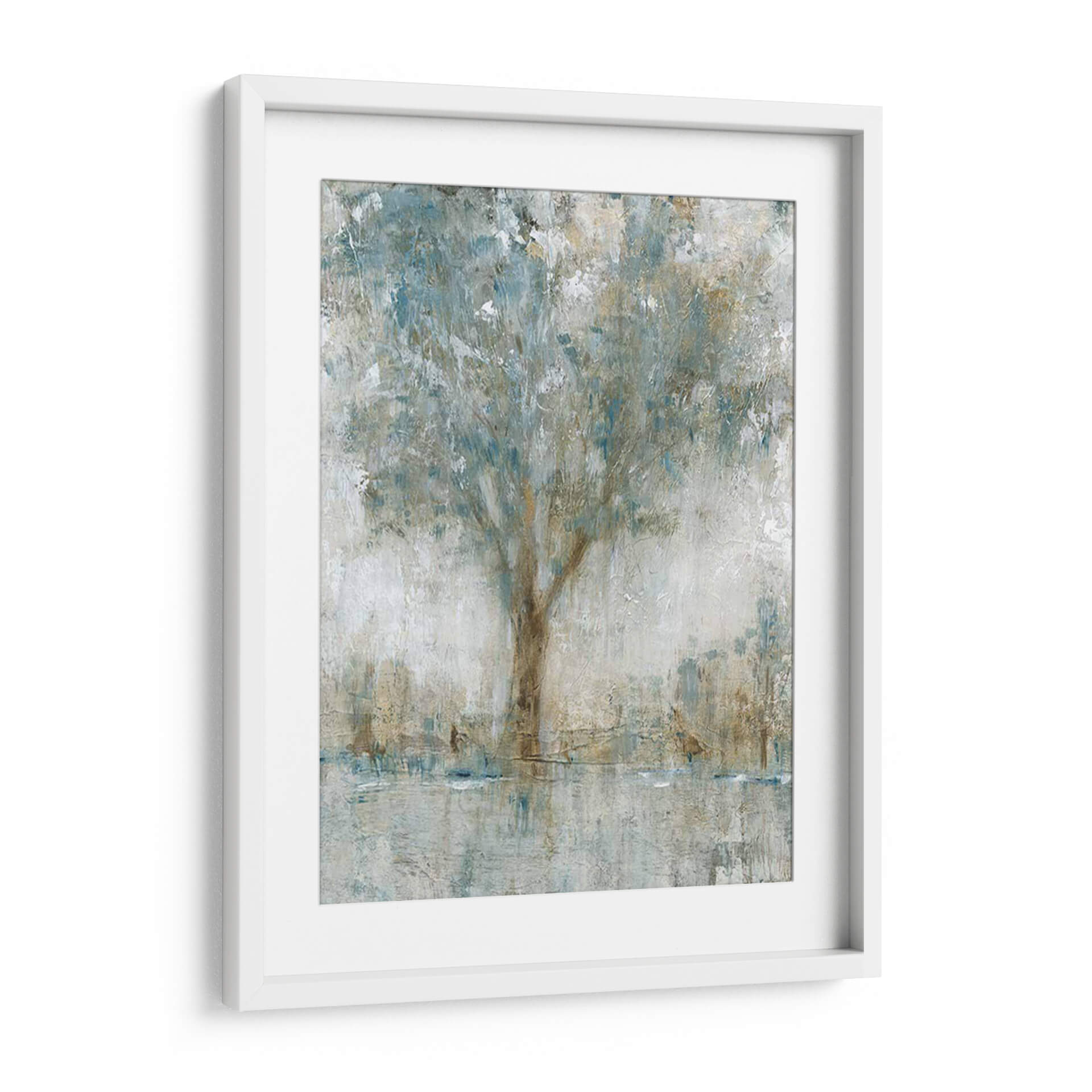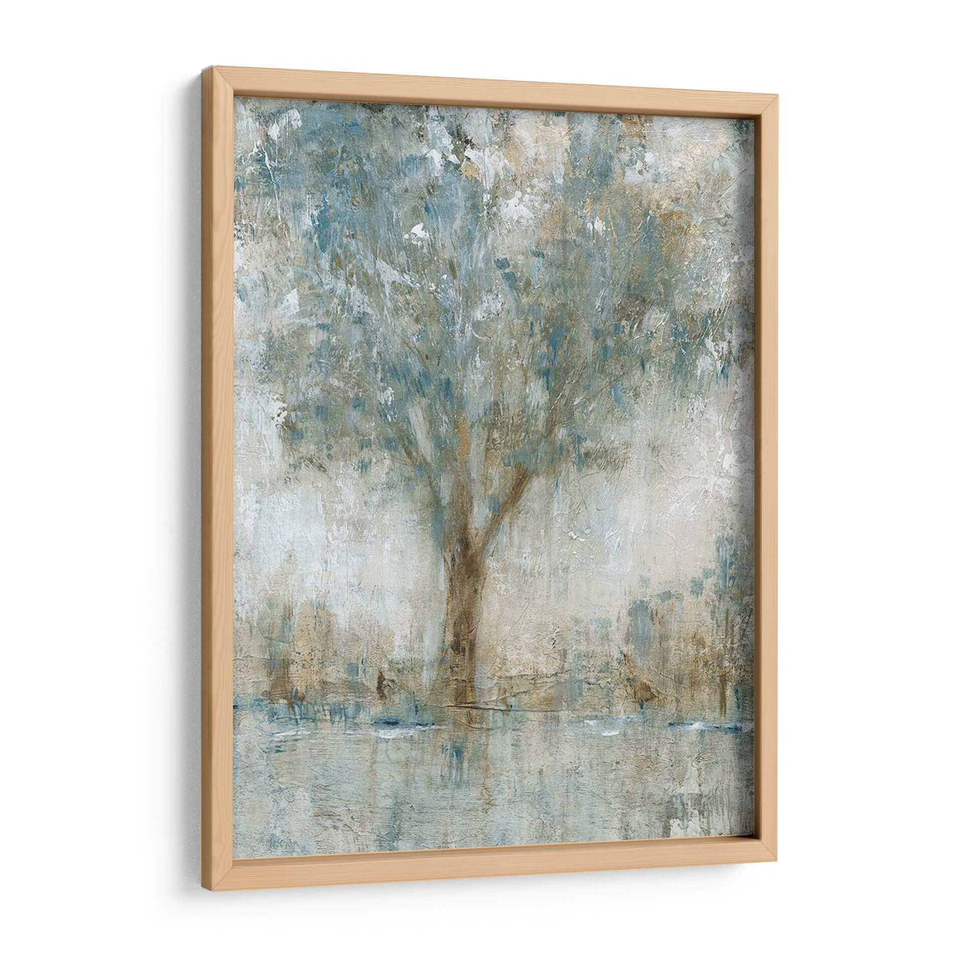 Sumérgete en la serenidad de "Mañana Brillo II", una cautivadora obra de arte contemporáneo de Tim O'Toole. Este cuadro decorativo abstracto captura la esencia de un paisaje etéreo, dominado por la figura estilizada de un árbol solitario reflejado en aguas tranquilas. La paleta de colores, que combina suaves tonos azules, grises, blancos y toques dorados, crea una atmósfera de calma y contemplación, evocando la luz suave de una mañana brumosa. Las pinceladas texturizadas y el estilo impresionista aportan profundidad y un toque orgánico a la pieza, invitando al espectador a perderse en sus detalles sutiles. "Mañana Brillo II" es la adición perfecta para cualquier espacio que busque transmitir paz y sofisticación. Ideal para salones modernos, dormitorios o estudios, este cuadro decorativo funciona como un punto focal que invita a la reflexión y añade un toque de elegancia natural a tu decoración. Transforma tu hogar en un refugio de tranquilidad con esta pieza única.