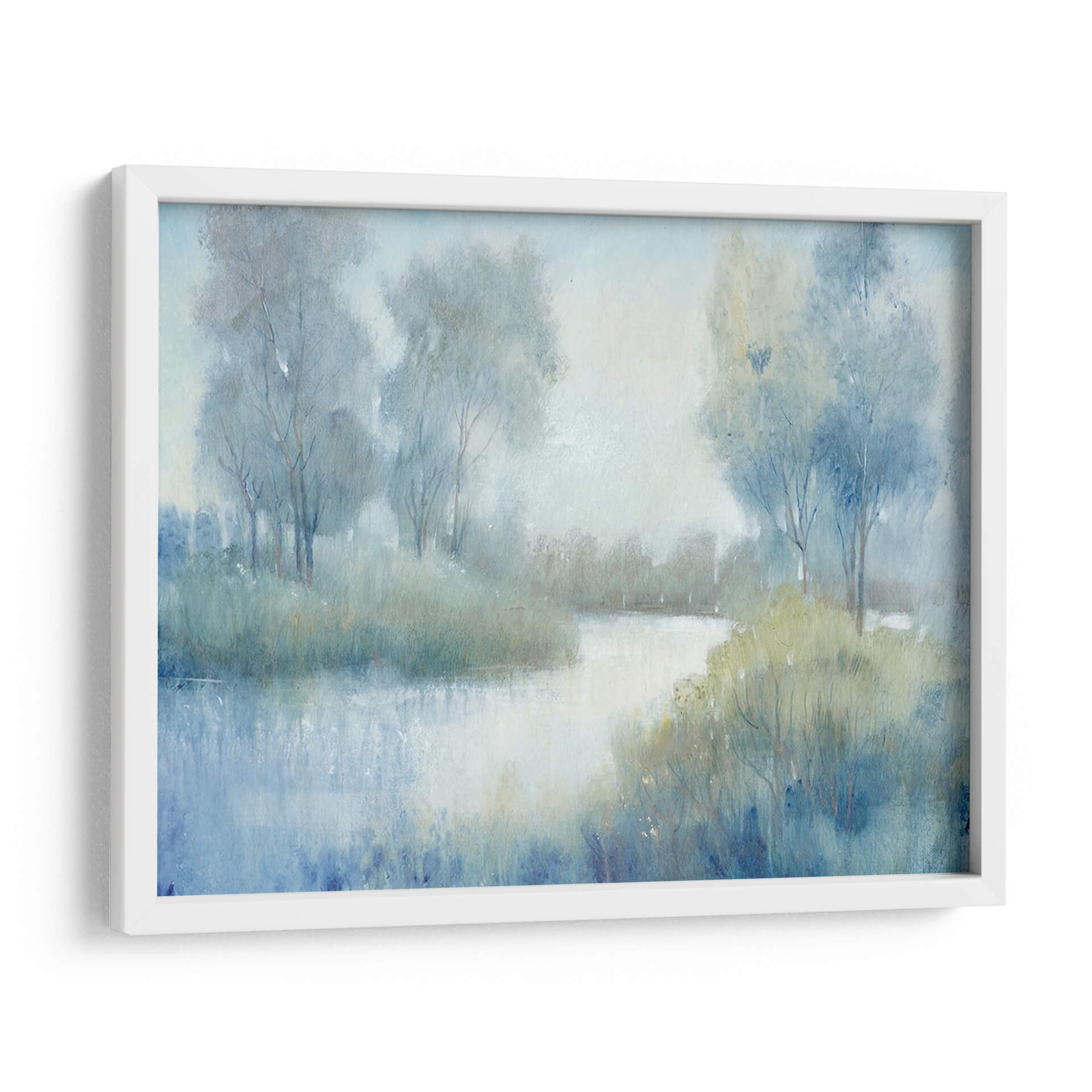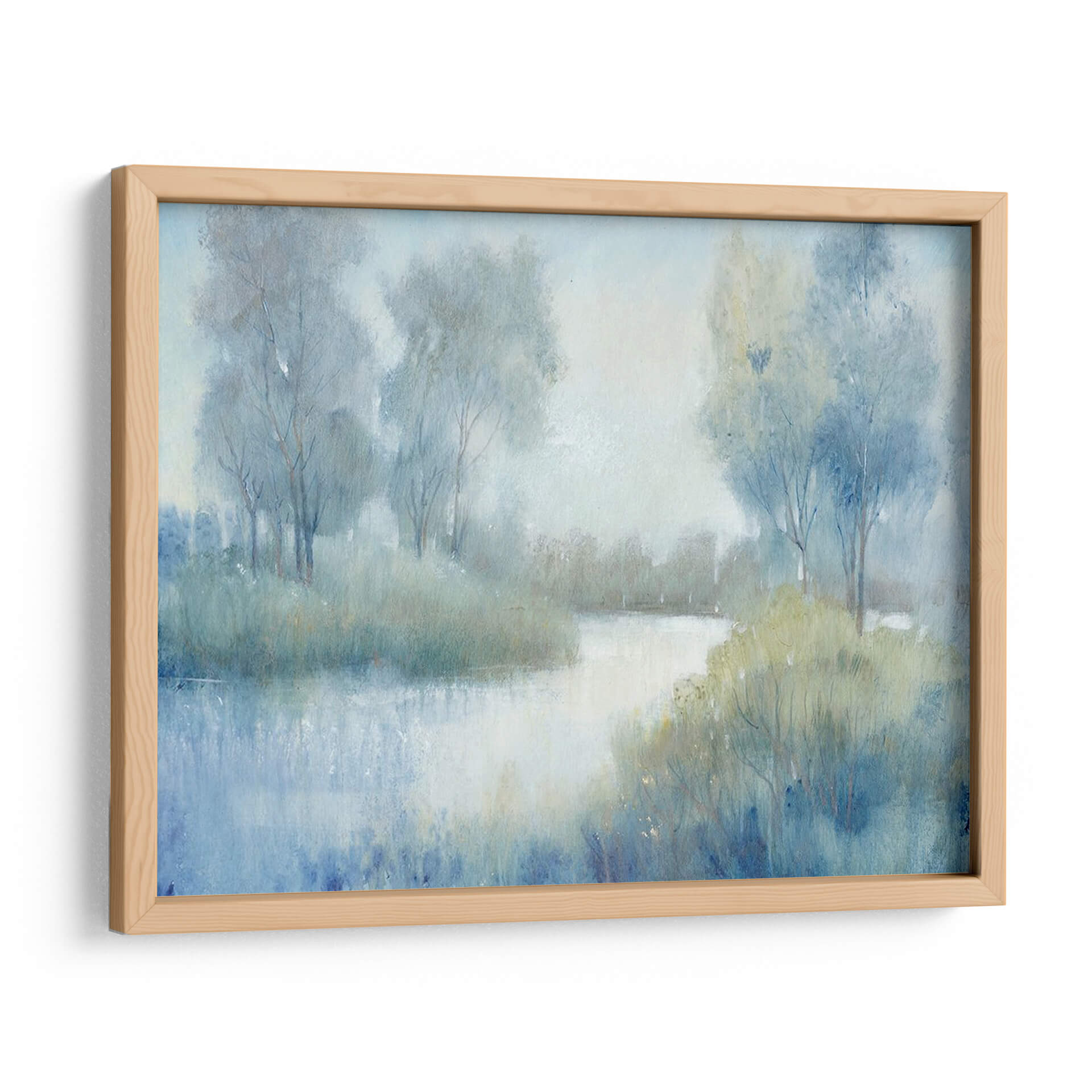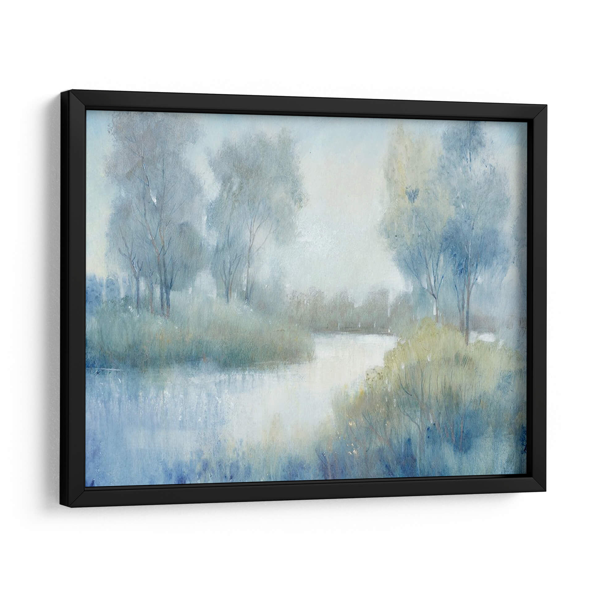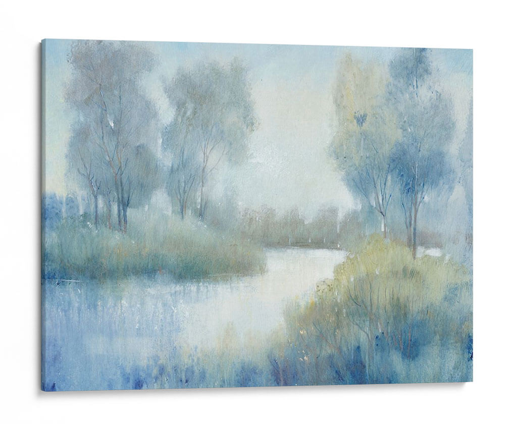 Sumérgete en la serenidad de 'Mañana En El Estanque Ii', una obra de arte contemporáneo que captura la esencia de un paisaje acuático bañado por la luz del alba. El artista Tim O'Toole nos presenta una composición atmosférica donde los tonos azules pálidos, verdes suaves y toques de blanco se fusionan para crear una sensación de calma y contemplación. Los árboles etéreos y la superficie del agua, que refleja sutilmente los colores circundantes, invitan a la introspección y la paz. Este cuadro decorativo, con su estilo impresionista y pinceladas fluidas, es perfecto para añadir un toque de naturaleza y tranquilidad a tu hogar u oficina. Imagina este lienzo como el punto focal de tu sala de estar, aportando una atmósfera de relajación, o como un recordatorio diario de la belleza serena de la naturaleza en tu dormitorio. La delicadeza de sus trazos y la armonía cromática lo convierten en una pieza versátil que se adapta a diversos estilos decorativos, desde el minimalista hasta el más rústico, siempre aportando elegancia y sofisticación a tus espacios.
