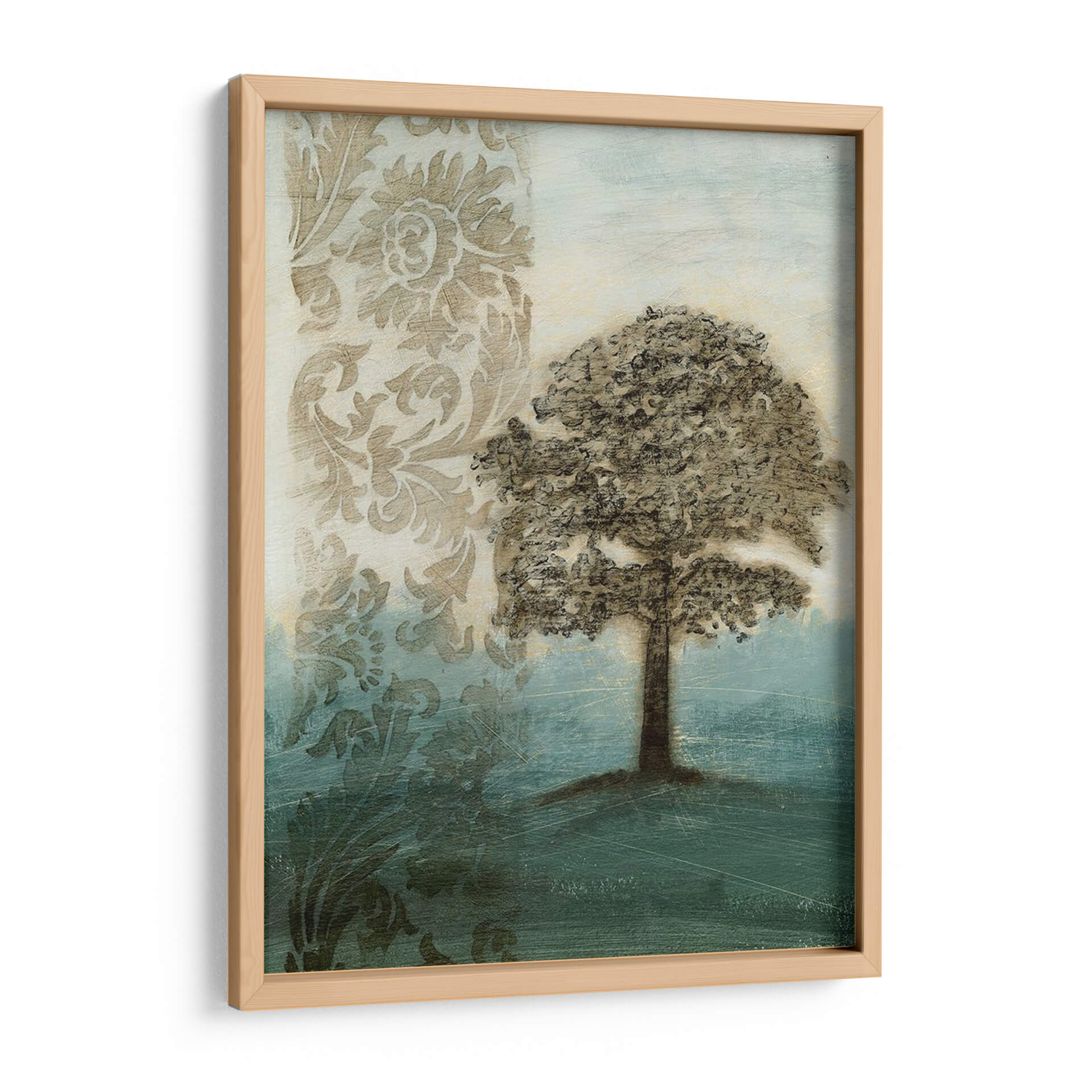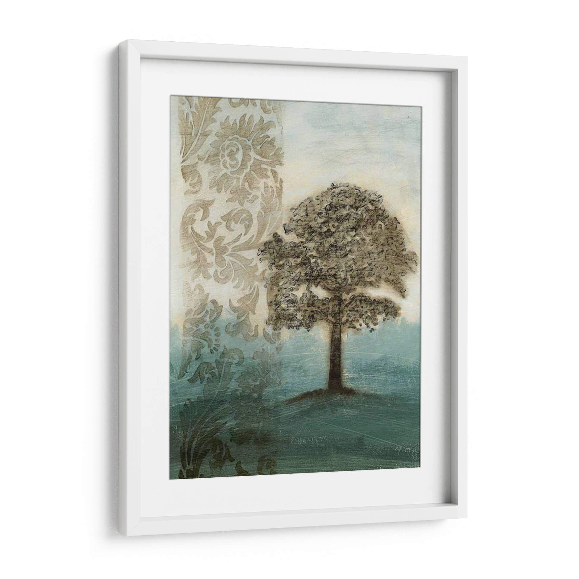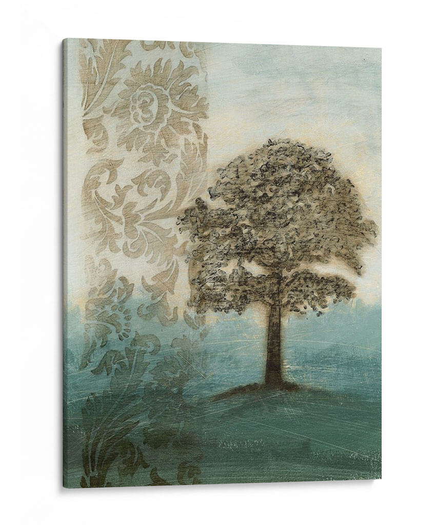 Sumérgete en la serena belleza de "Misty Memory I", una obra de arte contemporáneo que evoca la tranquilidad de un paisaje etéreo. Esta pieza presenta un árbol solitario, representado con trazos texturizados en tonos terrosos y grises, que se alza sobre un terreno suavemente sombreado en verdes y azules profundos. A la izquierda, un intrincado patrón de damasco en tonos beige y marfil añade un toque de elegancia clásica y contraste, creando una atmósfera de ensueño y nostalgia. La paleta de colores, dominada por azules apagados, verdes musgo y beige suave, junto con sutiles toques de gris y marrón, crea una sensación de calma y profundidad. El estilo combina elementos figurativos con un tratamiento abstracto, sugiriendo una memoria o un recuerdo que se desvanece suavemente. Ideal para quienes buscan añadir un toque de sofisticación y serenidad a su hogar u oficina, este cuadro decorativo es perfecto para un dormitorio, sala de estar o estudio que necesite un punto focal que inspire paz y reflexión. "Misty Memory I" es una invitación a la contemplación, fusionando la naturaleza con un diseño ornamental para crear una atmósfera única y cautivadora en cualquier espacio.