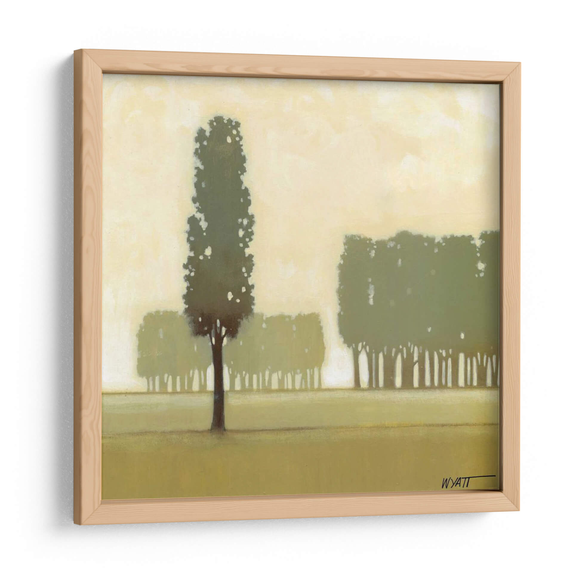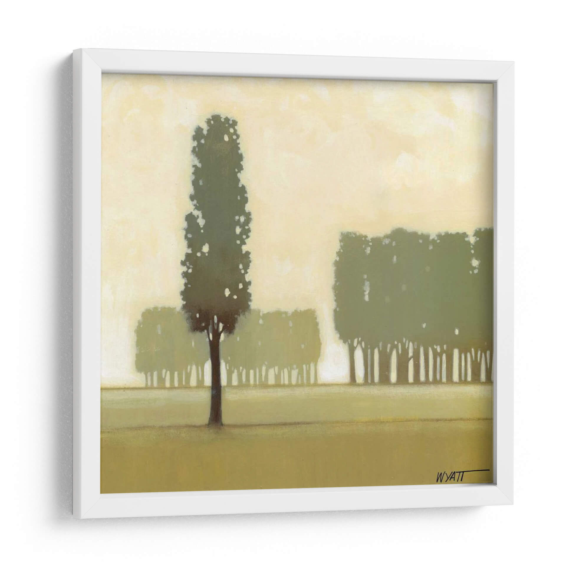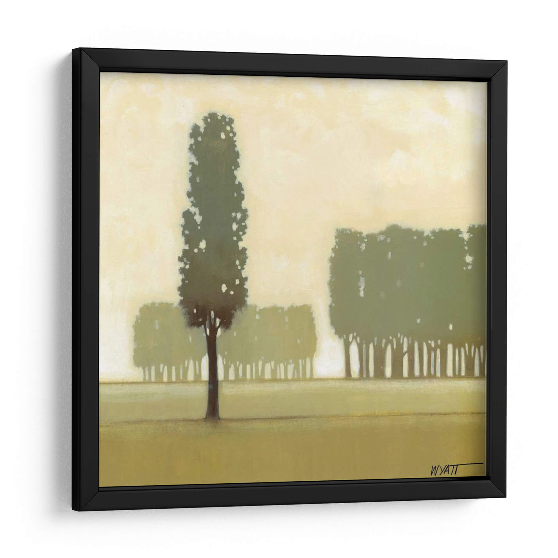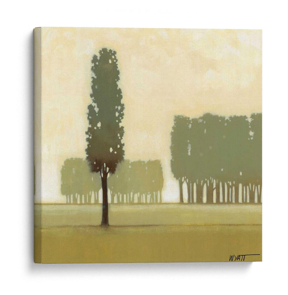 Sumérgete en la serenidad de la naturaleza con "Moss Grove I", una obra de arte que captura la esencia de un bosque sutil y etéreo. Este cuadro decorativo, del artista Norman Wyatt Jr., presenta una composición minimalista donde las siluetas de árboles se elevan contra un cielo brumoso en tonos tierra y verdes apagados. La paleta de colores suaves, dominada por ocres, verdes musgo y amarillos pálidos, crea una atmósfera de calma y contemplación, ideal para cualquier espacio que busque un oasis de tranquilidad. La técnica, que sugiere pinceladas delicadas, aporta una textura visual sutil sin distraer del tema principal. La pieza evoca una sensación de paz profunda y conexión con el entorno natural, haciendo de este cuadro una elección perfecta para salones, dormitorios o estudios que deseen un toque de sofisticación orgánica. "Moss Grove I" no es solo una decoración, es una invitación a la introspección y al disfrute de la belleza serena del mundo natural. Su estilo contemporáneo y su temática universal lo convierten en una adición versátil y atemporal para tu hogar u oficina, aportando un aire de frescura y serenidad.