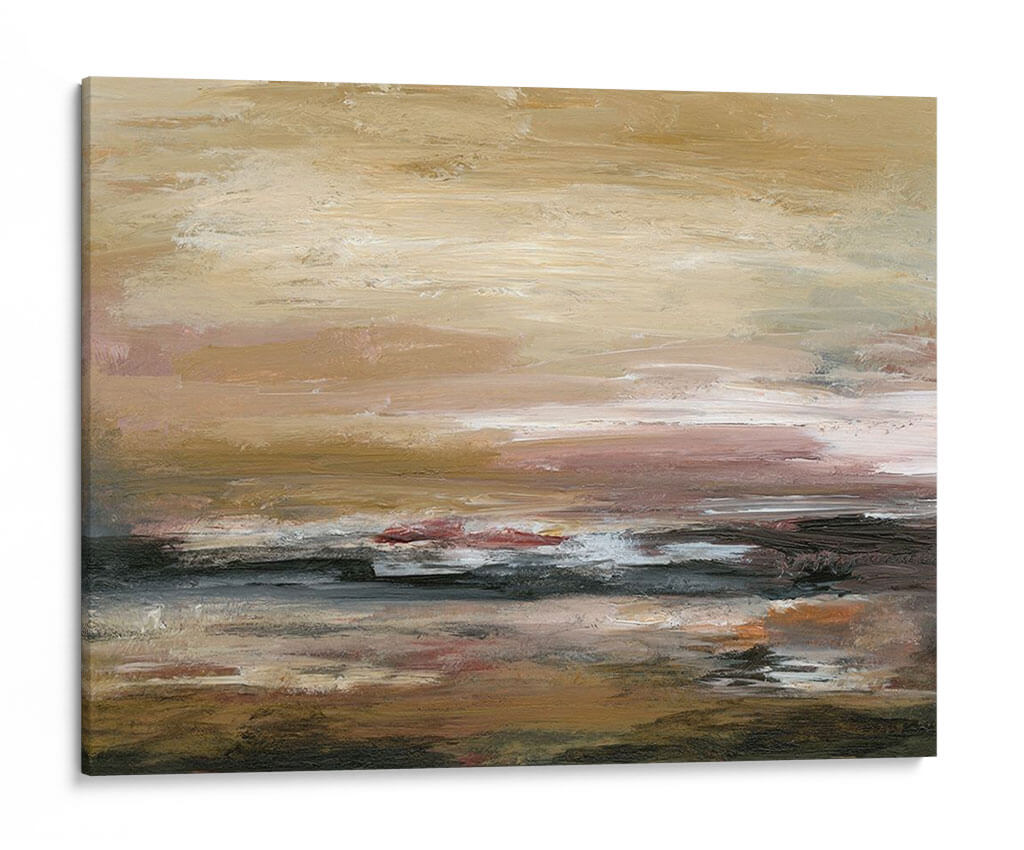 Sumérgete en la serenidad y la calidez de "Nueva Perspectiva II", una obra de arte contemporáneo que evoca la tranquilidad de un paisaje al atardecer. Los trazos audaces y la paleta de colores terrosos, que van desde dorados suaves hasta tonos rojizos y marrones profundos, crean una atmósfera de calma y reflexión. Esta pieza abstracta, con sus capas sutiles y texturas ricas, invita a la contemplación, sugiriendo un horizonte sereno o la superficie de aguas tranquilas. Ideal para añadir un toque de sofisticación y paz a tu sala de estar, dormitorio u oficina, este cuadro decorativo se convierte en un punto focal que transforma cualquier espacio. La maestría de Sharon Gordon en capturar la esencia de la naturaleza y las emociones humanas se manifiesta en cada pincelada, ofreciendo una ventana a un mundo de serenidad. "Nueva Perspectiva II" no es solo una decoración, es una experiencia visual que aporta equilibrio y armonía a tu hogar, invitando a la introspección y al disfrute de la belleza abstracta en su máxima expresión.