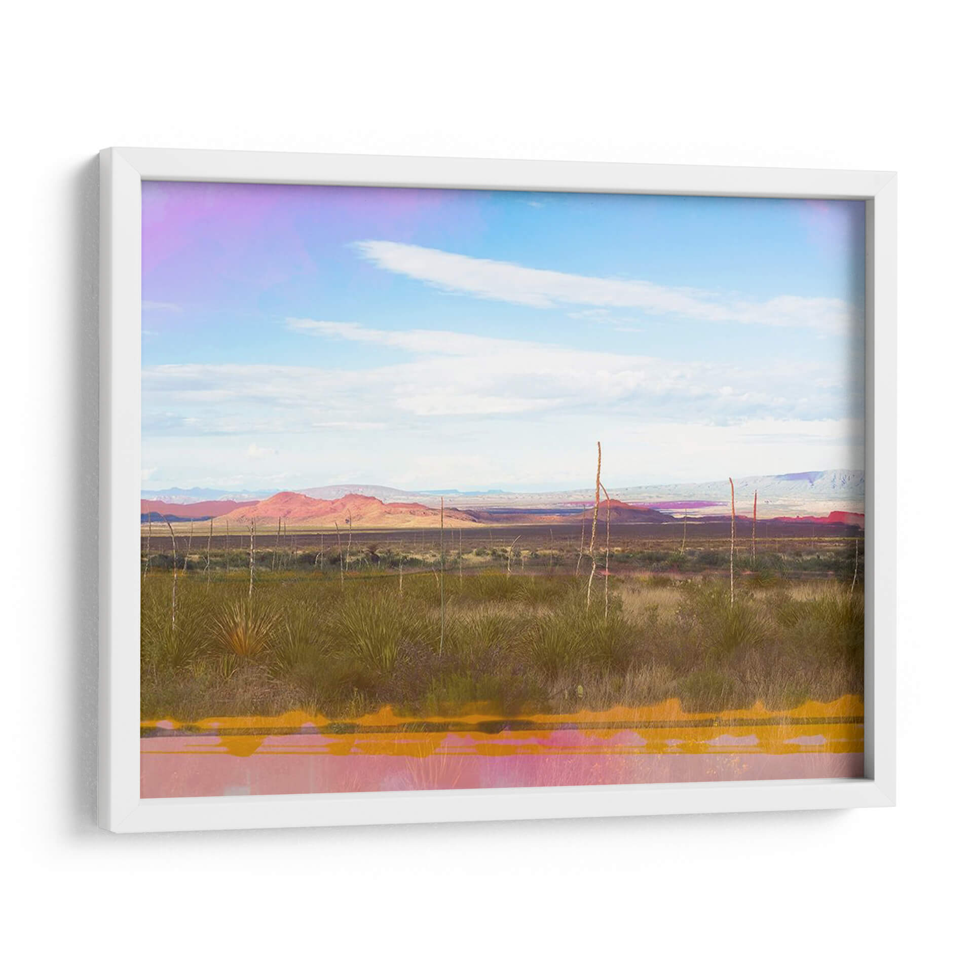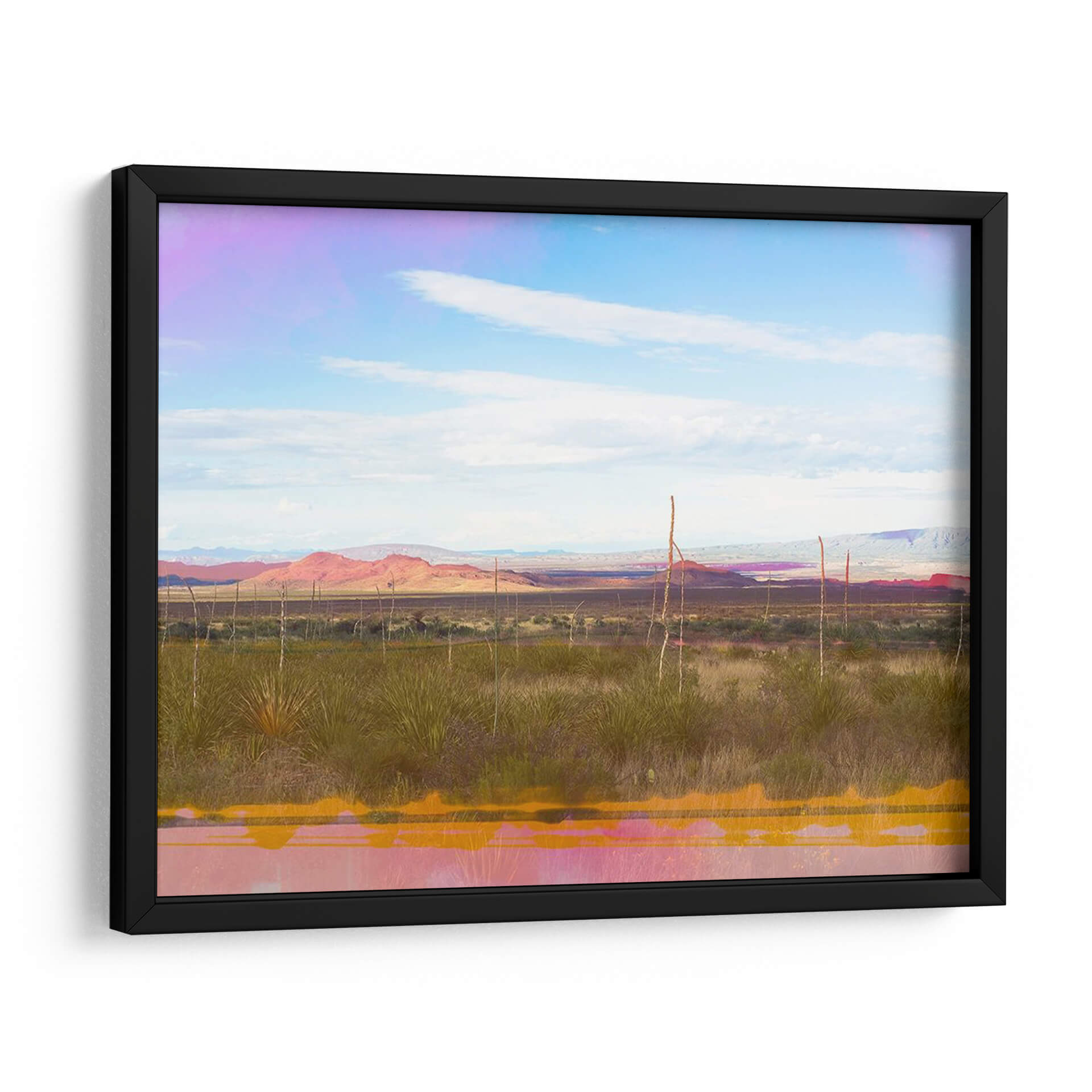 Sumérgete en la vasta y serena belleza del Suroeste americano con 'Oeste de Texas Scapes II', una obra de Sonja Quintero que captura la esencia de un paisaje desértico al atardecer. Los tonos cálidos de las colinas rojizas contrastan con el cielo azul claro, salpicado de nubes blancas etéreas y un sutil toque de lavanda en el horizonte, creando una atmósfera de tranquilidad y asombro. La vegetación árida, representada con pinceladas texturizadas y vibrantes, evoca la resistencia y la belleza indómita de la naturaleza. Una franja de colores cálidos y abstractos en la parte inferior, con toques de naranja y rosa, añade una dimensión moderna y artística, sugiriendo la energía latente bajo la superficie del paisaje. Este cuadro decorativo es ideal para añadir un toque de color y serenidad a tu sala de estar, dormitorio u oficina, transportando la calma y la majestuosidad de un paisaje abierto a tu hogar. Una pieza que invita a la contemplación y celebra la belleza cruda y auténtica del Oeste de Texas.