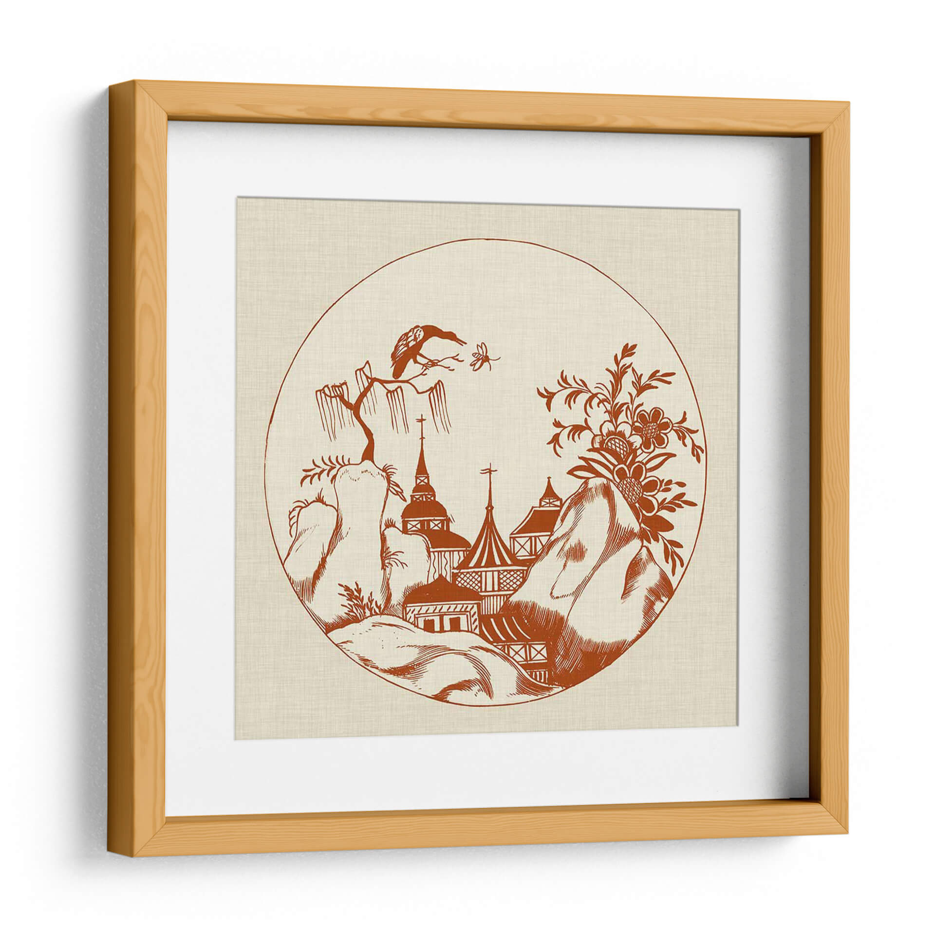 Sumérgete en la serenidad oriental con "Pagoda Ornamental II", una obra de arte que evoca la delicadeza de los paisajes asiáticos y la arquitectura tradicional. Este cuadro decorativo presenta una escena intrincada y detallada, enmarcada en un círculo, que transporta la mirada a un jardín sereno. La paleta de colores predominante en tonos tierra, con un distintivo acento terracota, confiere a la pieza una calidez sutil y una elegancia atemporal. La composición circular alberga elementos como pagodas estilizadas, rocas escarpadas, un sauce llorón y flores ornamentales, junto a un pájaro y una mariposa, creando una atmósfera de paz y contemplación. Ideal para quienes buscan añadir un toque de sofisticación y tranquilidad a su hogar u oficina, este cuadro es perfecto para salones, dormitorios o estudios que deseen una conexión con la naturaleza y la cultura oriental. Su diseño detallado invita a la observación y al descubrimiento, convirtiéndose en un punto focal que inspira calma y admiración. Añade esta pieza única a tu decoración y transforma tu espacio en un santuario de belleza serena y diseño refinado, un verdadero tesoro para los amantes del arte con influencias asiáticas y un estilo decorativo clásico pero moderno.