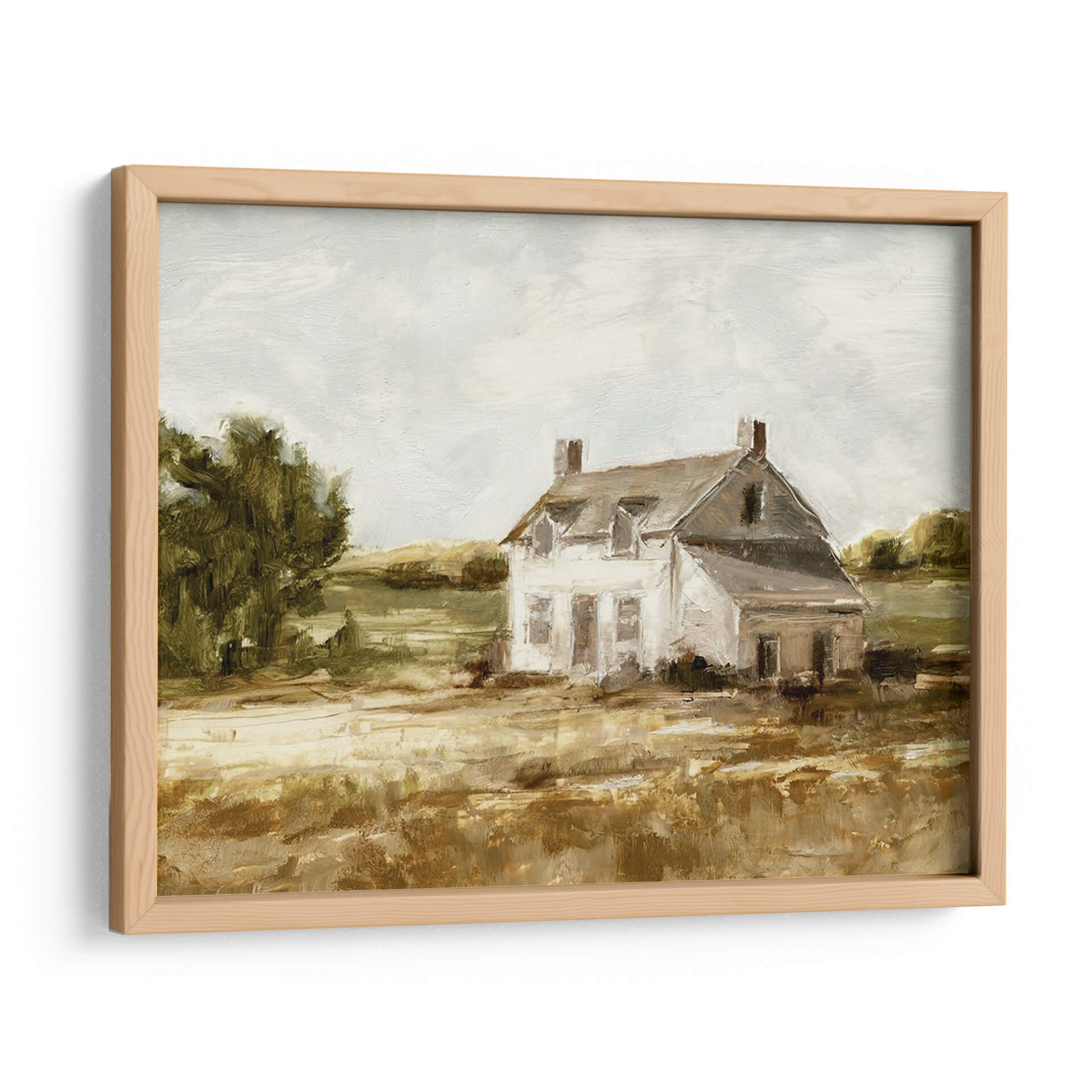 Sumérgete en la serenidad del campo con "País Harvest II", una obra de arte de Ethan Harper que captura la esencia de un hogar rural bajo un cielo plomizo. Este cuadro decorativo evoca una sensación de paz y nostalgia, transportándote a un refugio tranquilo lejos del bullicio de la vida moderna. La paleta de colores, dominada por tonos tierra, ocres y verdes apagados, crea una atmósfera cálida y acogedora, mientras que las pinceladas sugerentes y el estilo ligeramente impresionista confieren a la pieza una profundidad y un carácter únicos. La casa, con sus chimeneas y tejado a dos aguas, se alza como un símbolo de hogar y estabilidad en medio de un paisaje sereno y ondulante. Los árboles frondosos a la izquierda y el campo dorado que rodea la edificación complementan la escena, aportando texturas y matices que invitan a la contemplación. Este cuadro decorativo es ideal para añadir un toque de calma y elegancia rústica a tu sala de estar, comedor, dormitorio o incluso a un estudio. "País Harvest II" no es solo una imagen, es una invitación a la tranquilidad y al aprecio por la belleza sencilla de la vida rural, convirtiéndose en el punto focal perfecto para cualquier espacio que busque una conexión con la naturaleza y la serenidad.