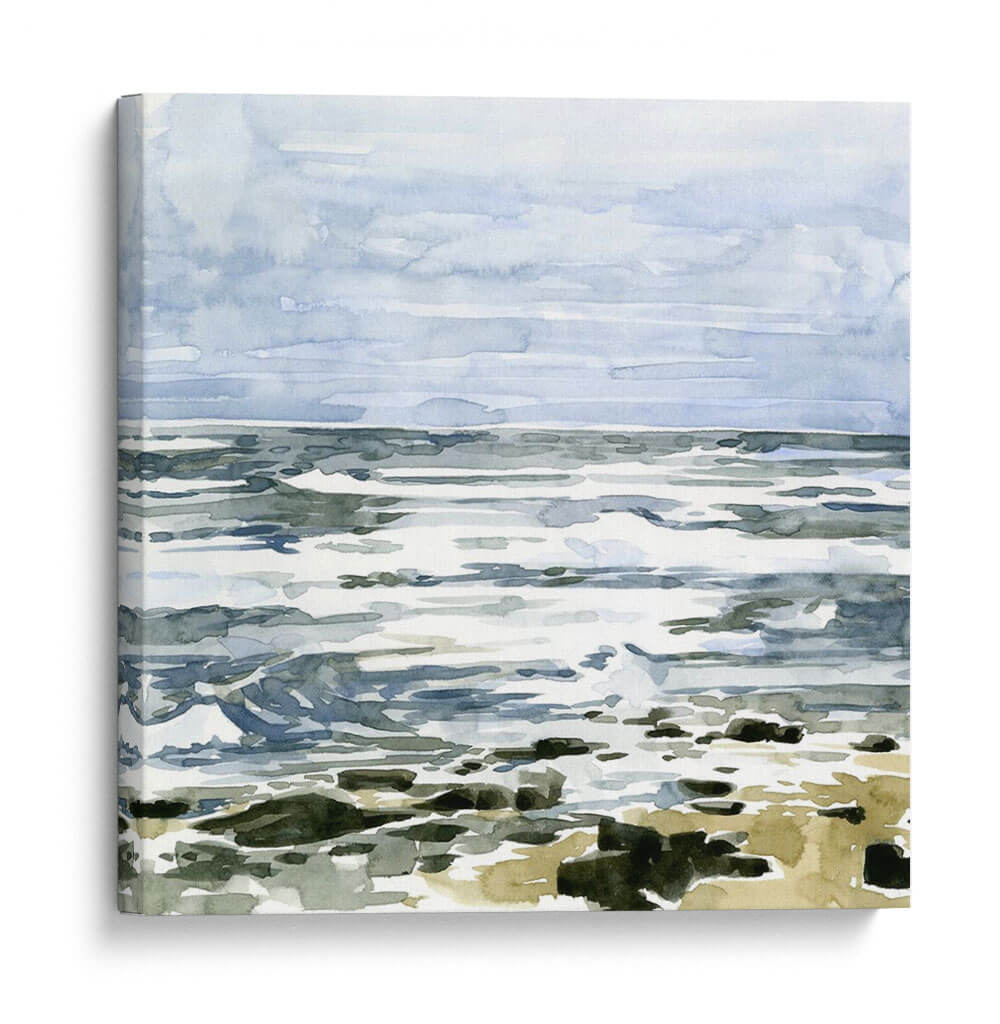 Sumérgete en la serenidad del océano con "Paisaje Marino Suelto II" de Gerard Paul Deshayes. Esta cautivadora obra de arte evoca la tranquilidad de la costa a través de una interpretación suelta y atmosférica del mar. Predominan los tonos fríos de azul y gris, aplicados con pinceladas fluidas que capturan el movimiento de las olas y la vastedad del cielo plomizo. Las rocas en primer plano, representadas con tonos tierra y grises oscuros, añaden una textura y profundidad sutiles a la composición. El estilo, que recuerda al impresionismo acuático, permite que la luz juegue en la superficie del agua, creando un efecto dinámico pero relajante. Es el cuadro decorativo perfecto para quienes buscan infundir calma y un toque de naturaleza costera en sus espacios, ya sea en una sala de estar, un dormitorio o una oficina. "Paisaje Marino Suelto II" es más que una imagen; es una invitación a la contemplación y a la conexión con la naturaleza, ideal para añadir un acento de serenidad y elegancia contemporánea a cualquier decoración.