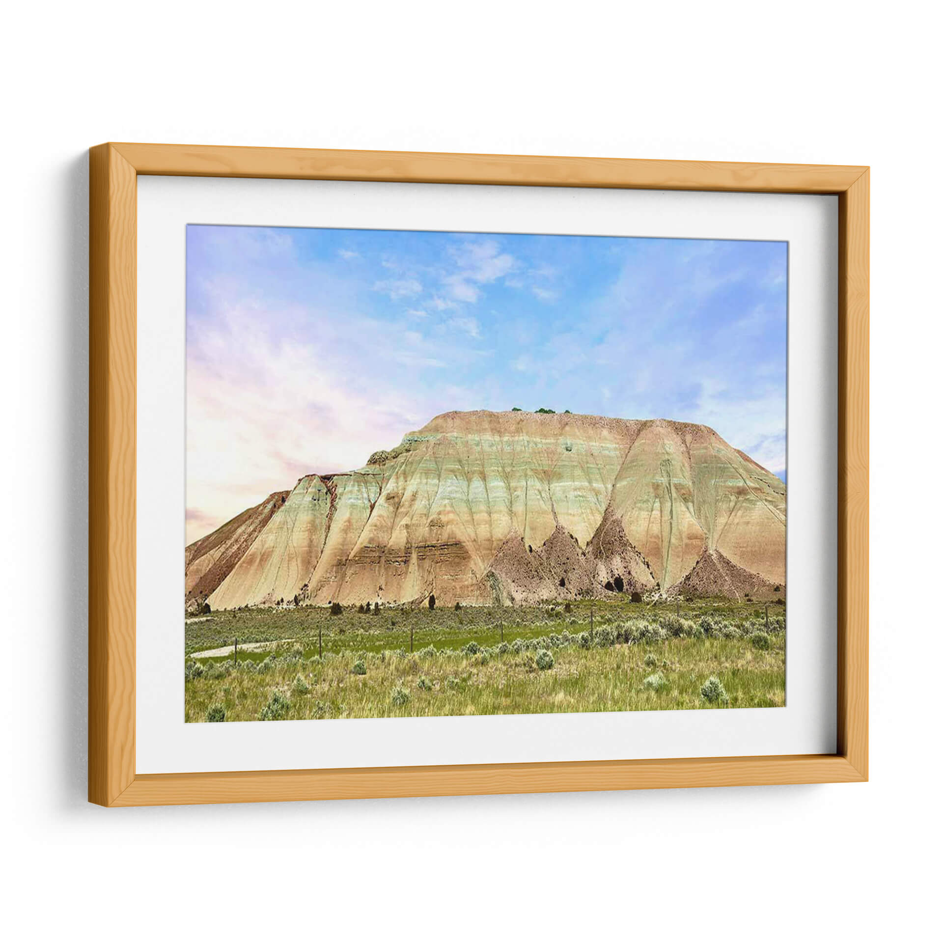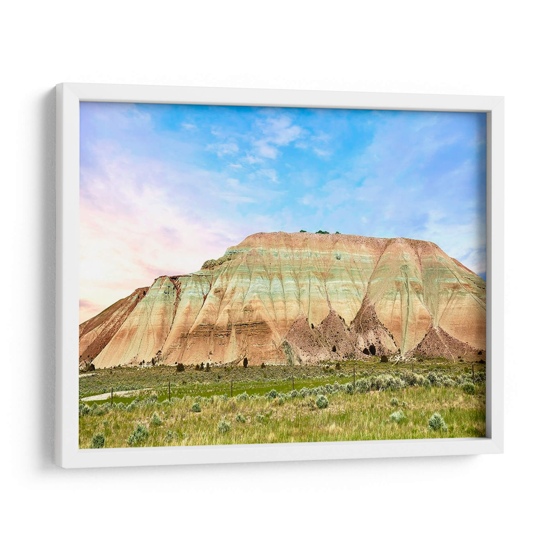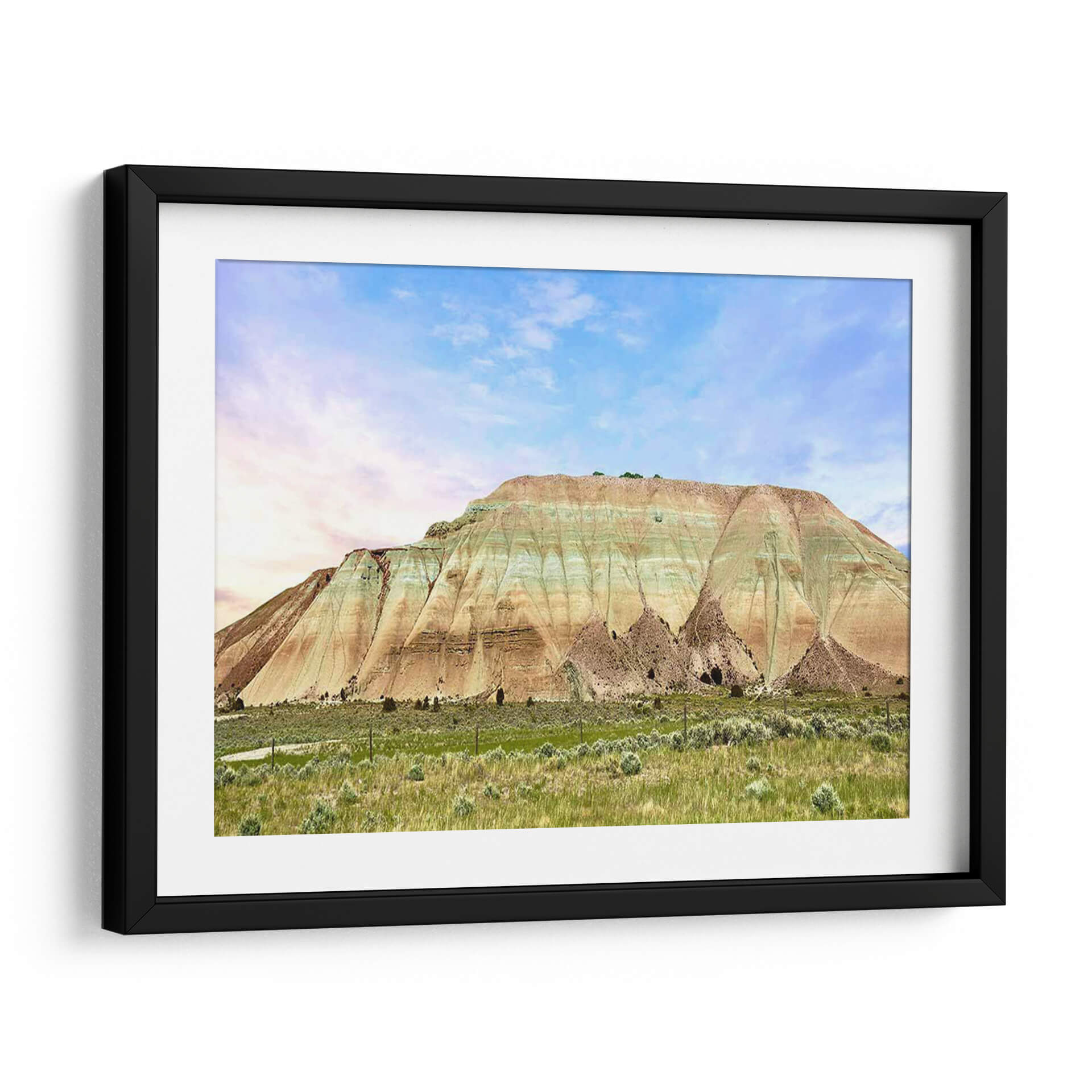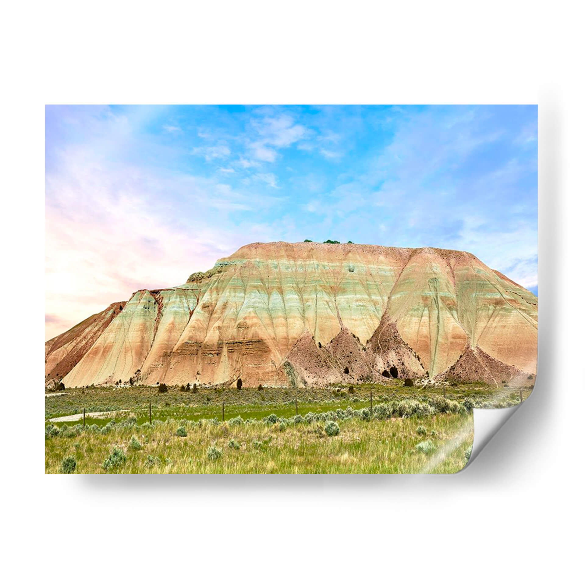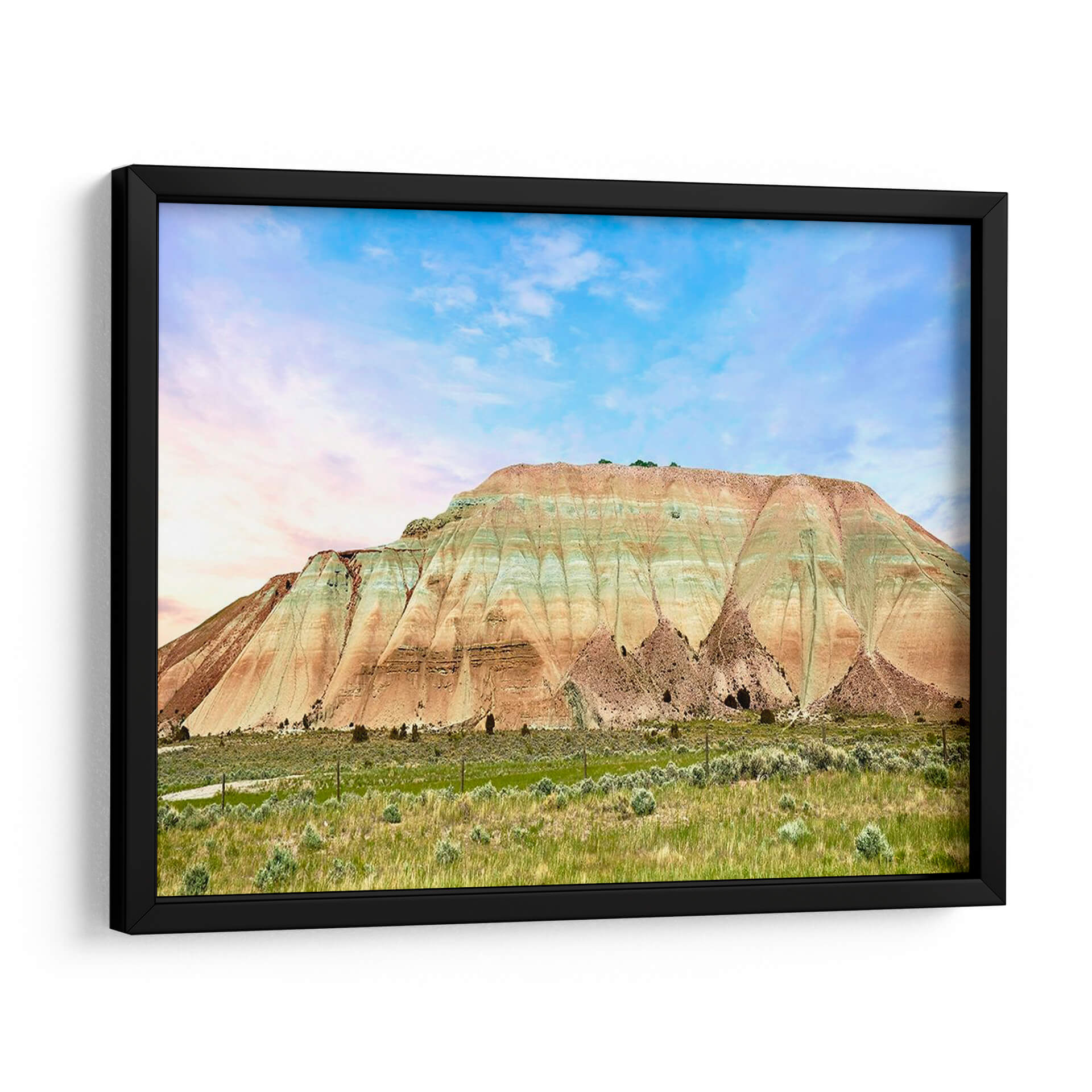 Captura la majestuosidad de la naturaleza con este impresionante cuadro decorativo que inmortaliza un vasto paisaje occidental. La obra presenta una imponente formación rocosa de origen sedimentario, cuyas capas geológicas exhiben una paleta de colores terrosos y vetas de tonos verde azulado, evocando la riqueza y complejidad de la tierra. El cielo, de un azul vibrante salpicado de nubes rosadas y blancas, añade un toque de serenidad y amplitud, contrastando maravillosamente con la solidez de la montaña. La vegetación de primer plano, con tonos verdes y ocres, aporta una sensación de vida y movimiento, sugiriendo un entorno natural salvaje y prístino. Esta pieza es ideal para quienes buscan infundir en sus espacios una conexión profunda con la naturaleza, aportando calma, inspiración y un toque de aventura. Perfecta para salones, estudios u oficinas, este cuadro decorativo se convierte en un punto focal que invita a la contemplación y la admiración del arte paisajístico contemporáneo. Transforma tu hogar en un santuario de belleza natural con esta fotografía de paisaje occidental de James McLoughlin, una obra que promete añadir carácter y sofisticación a cualquier ambiente.
