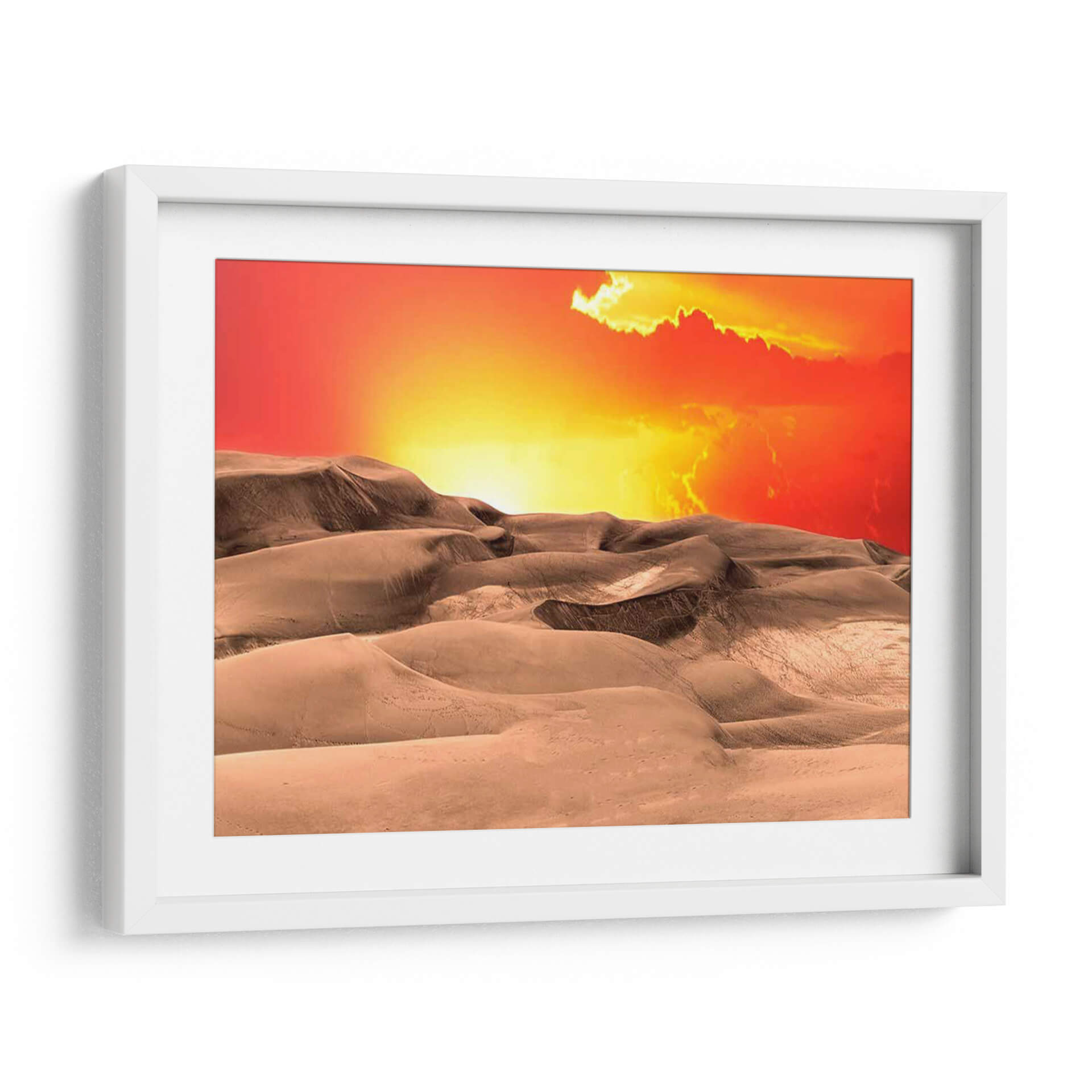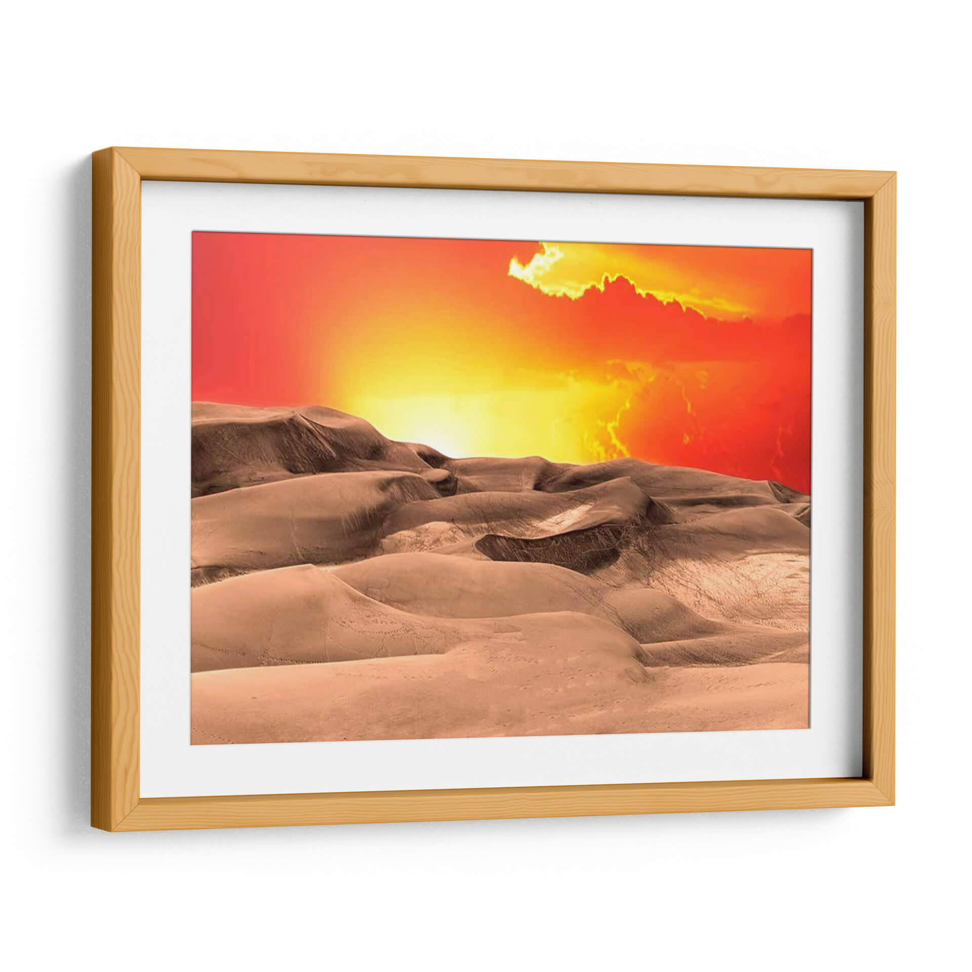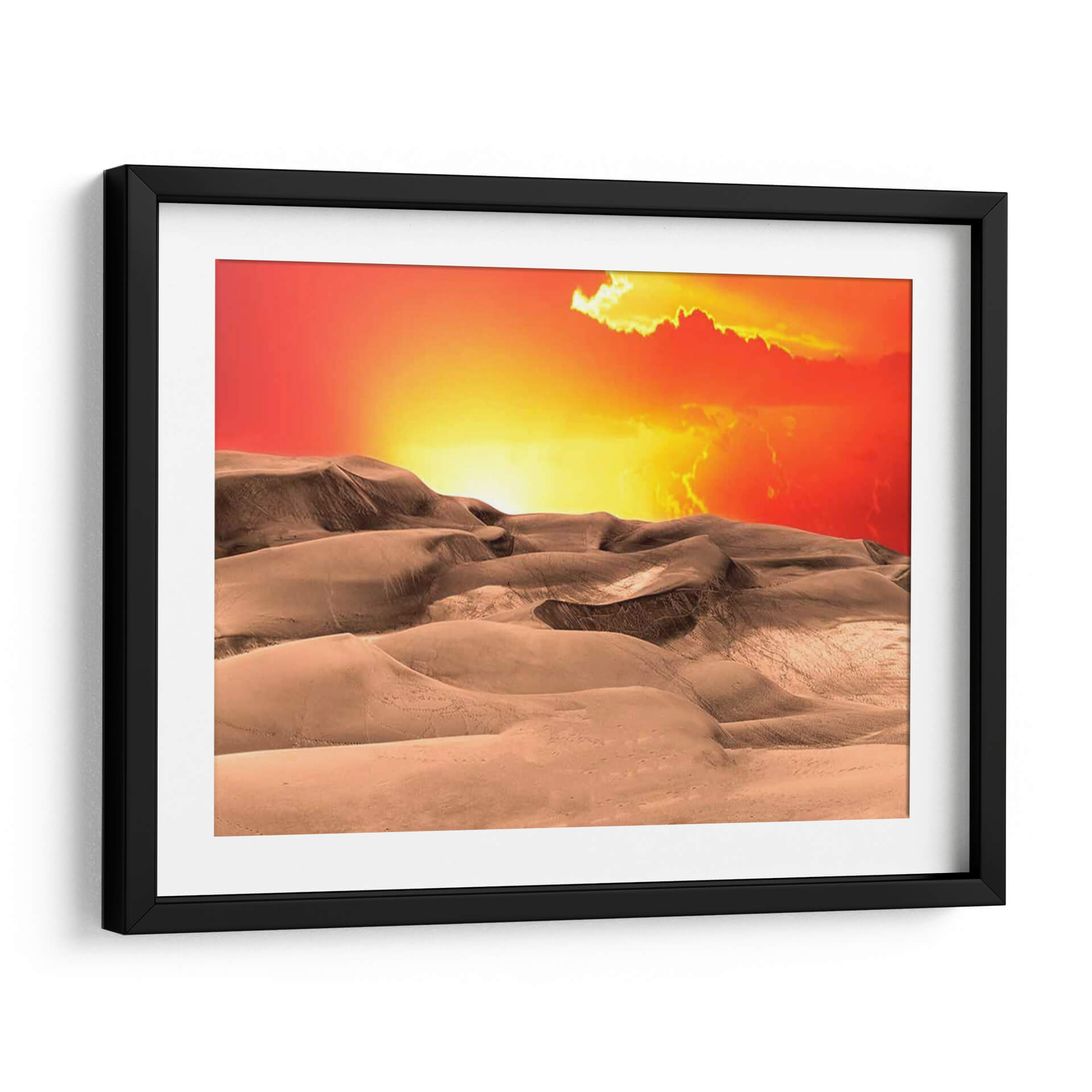 Sumérgete en la inmensidad y el calor del desierto con este impactante cuadro decorativo 'Paisaje Occidental Foto Vii' de James McLoughlin. La obra captura la majestuosidad de las dunas bajo un cielo ardiente, donde el sol se filtra entre nubes dramáticas, creando un juego de luces y sombras que realza la textura y las formas ondulantes del paisaje. Predominan los tonos cálidos, desde los ocres y terracotas de la arena hasta los intensos naranjas y rojos del atardecer o amanecer, generando una atmósfera de energía, vitalidad y una belleza cruda y atemporal. La composición se centra en la perspectiva de las dunas, invitando al espectador a perderse en su vastedad y a sentir la serenidad y el poder de la naturaleza. Este cuadro es ideal para añadir un toque de dramatismo y calidez a cualquier sala de estar, estudio u oficina, sirviendo como un punto focal que evoca aventura y la exploración de horizontes lejanos. Su estilo fotográfico con un tratamiento de color intenso lo convierte en una pieza única para aquellos que buscan una conexión con la naturaleza salvaje y paisajes evocadores.
