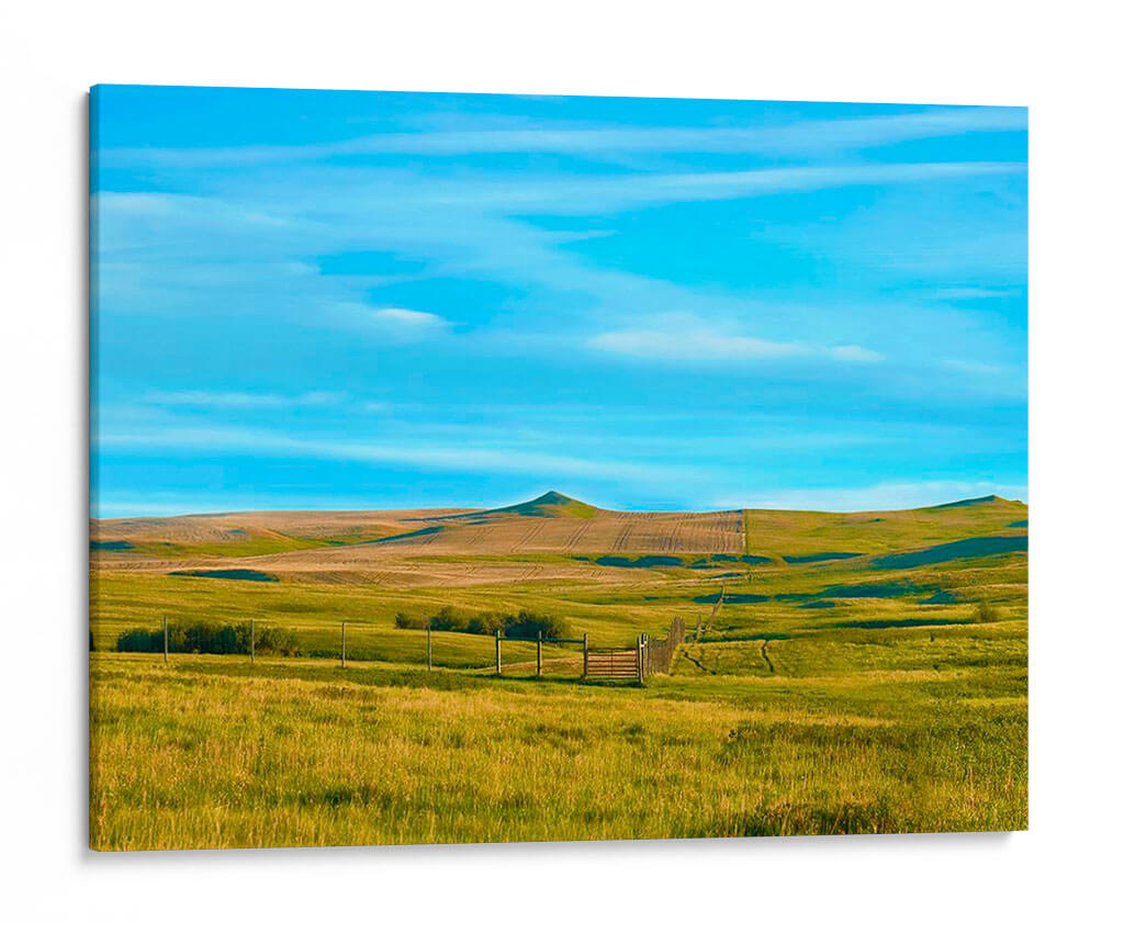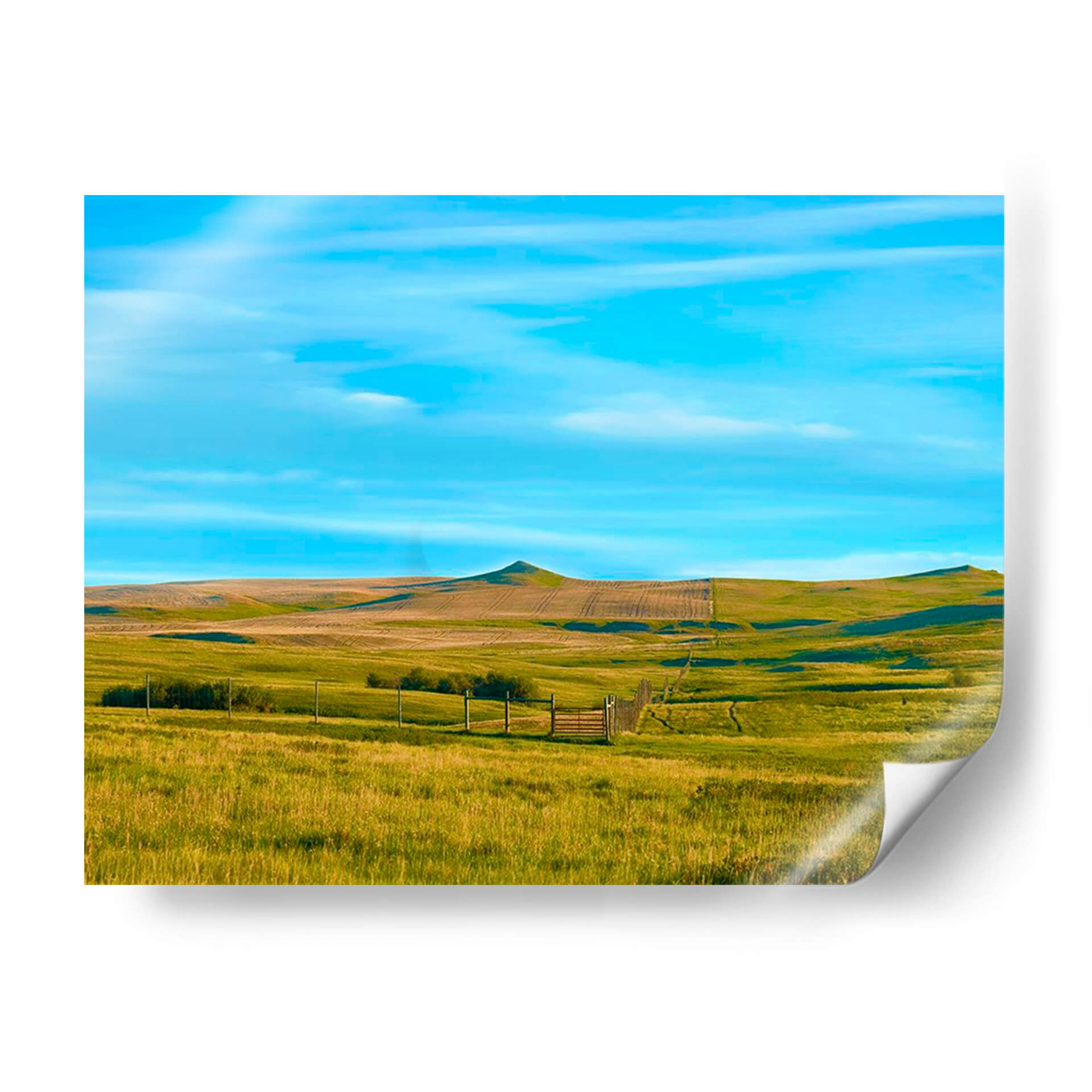 Transporta tu hogar a la vastedad serena de la naturaleza con 'Paisaje Occidental Photo Iii', una obra de James McLoughlin que captura la esencia de la vida rural y la belleza indómita. Este cuadro decorativo te sumerge en un campo dorado y exuberante, bañado por la luz cálida del sol, que se extiende hasta colinas ondulantes bajo un cielo azul vibrante salpicado de nubes etéreas. La composición, marcada por la presencia de una valla de madera rústica y suaves trazos de surcos en la tierra, evoca una sensación de paz y conexión con el paisaje. Los tonos tierra predominantes en la vegetación y los campos contrastan armoniosamente con el azul intenso del cielo, creando una atmósfera de tranquilidad y amplitud. Ideal para salones, comedores o estudios que buscan un toque de serenidad y una ventana a la naturaleza, esta pieza fotográfica invita a la contemplación y al respiro. Añade un elemento de calma y sofisticación a tu decoración, permitiendo que la belleza del mundo natural se manifieste en tu espacio vital. Es una invitación visual a explorar, soñar y encontrar la armonía en tu entorno.