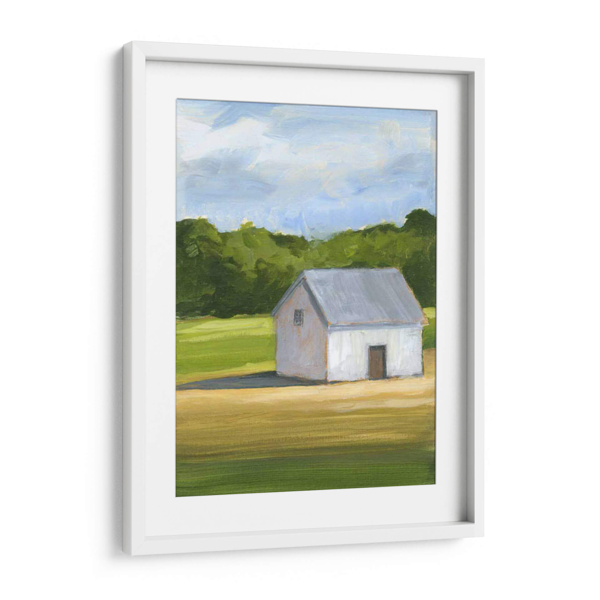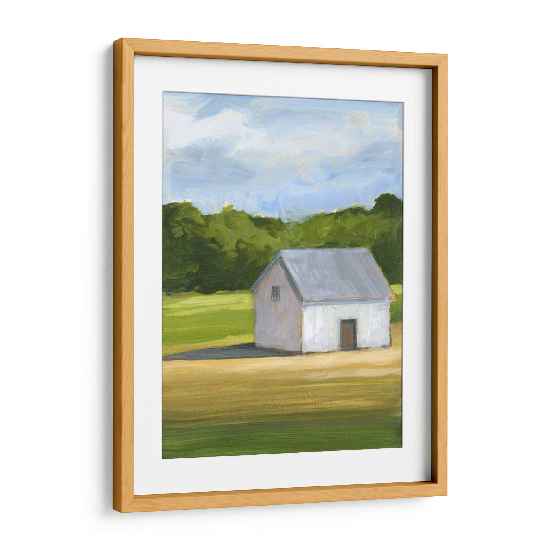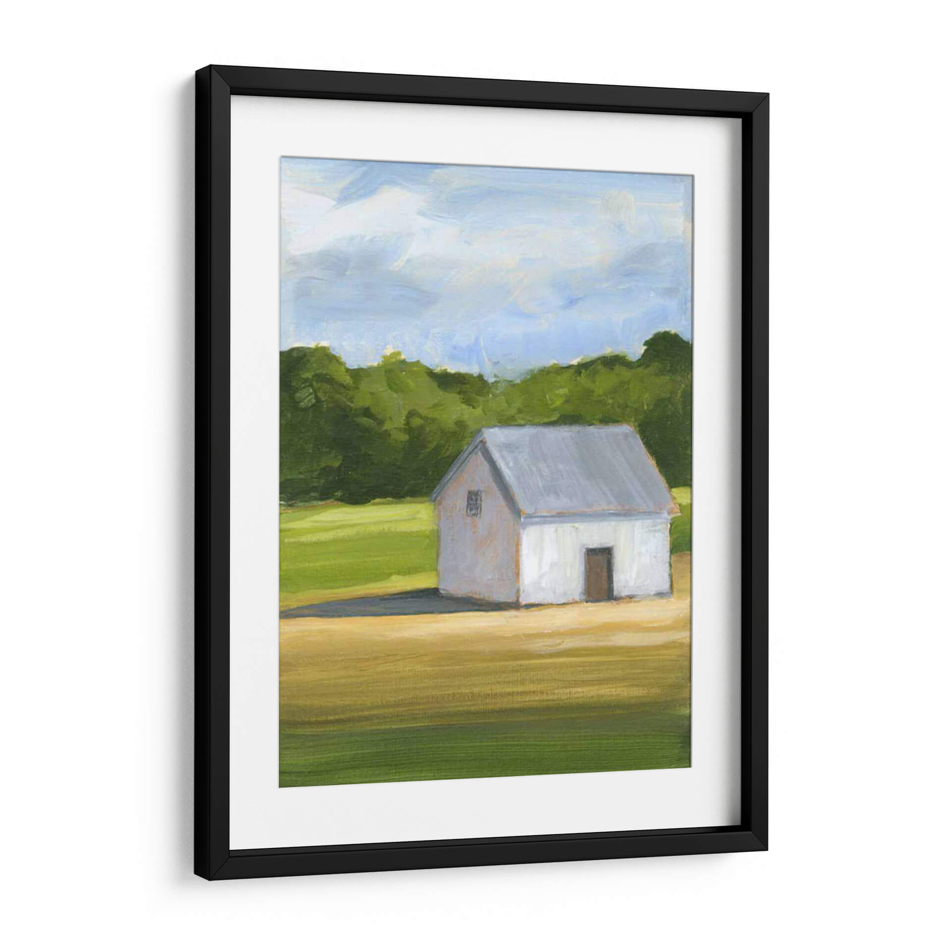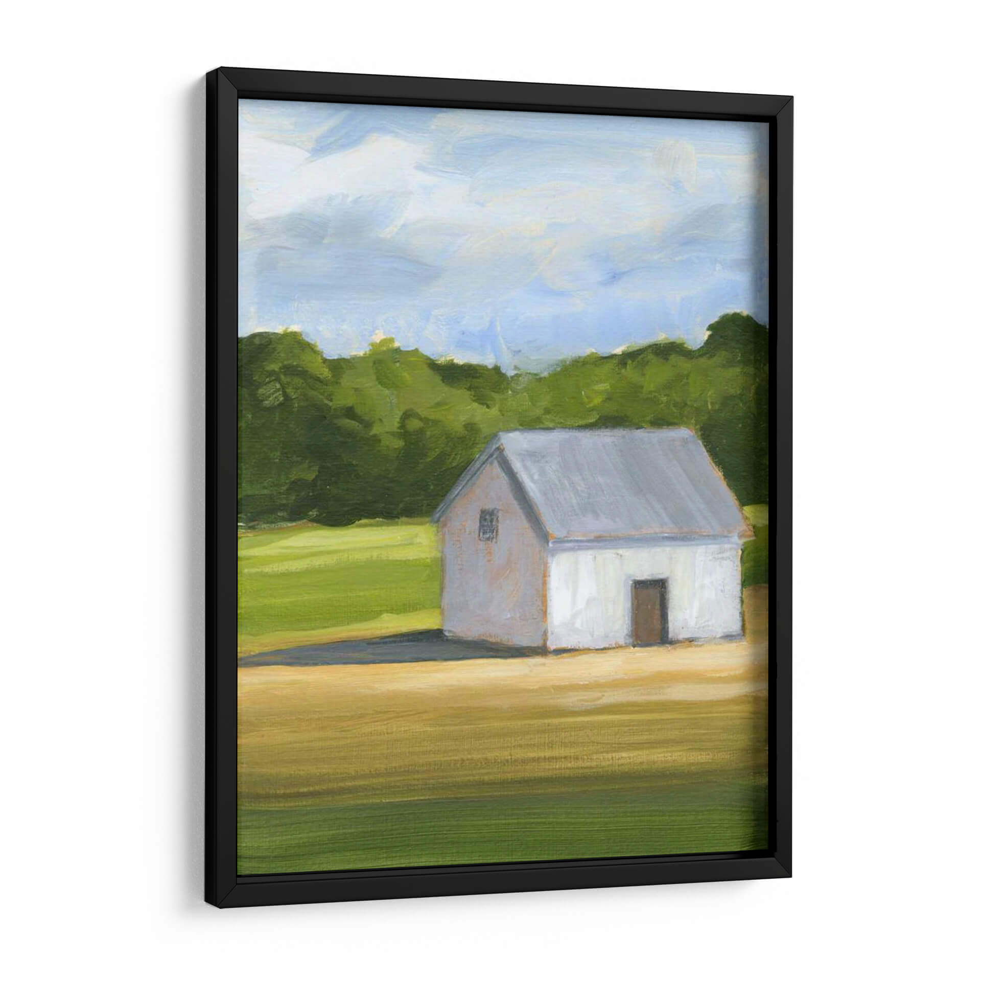 Sumérgete en la serenidad de "Paisaje Rural II", una obra de arte evocadora del artista Ethan Harper que captura la esencia de la vida campestre con una paleta de colores vibrantes y pinceladas expresivas. Este cuadro decorativo presenta una idílica escena rural, dominada por un granero blanco solitario en medio de un campo de tonos dorados y verdes, con un fondo de frondosos árboles y un cielo azul salpicado de nubes. El estilo pictórico, que recuerda a una interpretación moderna del impresionismo, confiere a la pieza una cualidad atemporal y una atmósfera de tranquilidad. Los verdes profundos del follaje contrastan sutilmente con los tonos cálidos del suelo y la estructura clara del granero, creando un equilibrio visual armonioso. La luz suave y difusa sugiere una tarde apacible, invitando a la contemplación y al descanso. "Paisaje Rural II" es ideal para infundir calma y un toque rústico chic a cualquier espacio, ya sea en una sala de estar, un dormitorio o una oficina que busque conectarse con la naturaleza y la simplicidad.
