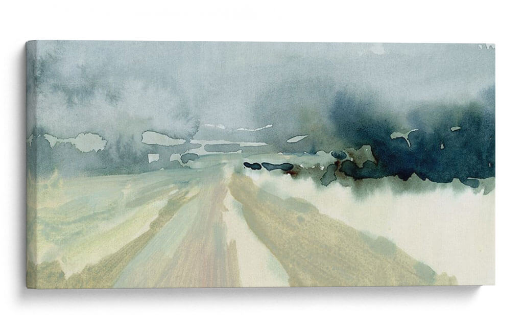 Sumérgete en la atmósfera etérea de "Pasaje Desconocido II" de Susan Savory, una obra que evoca la serenidad de un paisaje difuminado por la neblina o la distancia. La técnica acuarela de Savory se despliega en una paleta de tonos suaves, predominando los grises azulados y verdes apagados, con sutiles toques terrosos que definen un camino o sendero que se pierde en el horizonte. Las formas son sugeridas más que explícitas, invitando al espectador a interpretar la escena y a proyectar sus propias emociones en ella. Este cuadro decorativo es ideal para crear un ambiente de calma y contemplación en cualquier espacio, desde un rincón de lectura hasta una oficina que busca un toque de sofisticación discreta. Su estilo abstracto y evocador lo convierte en una pieza versátil, capaz de complementar tanto decoraciones modernas como rústicas. "Pasaje Desconocido II" no es solo una imagen, es una invitación a la introspección y a encontrar la belleza en lo sutil, añadiendo profundidad y carácter a tu hogar u oficina.