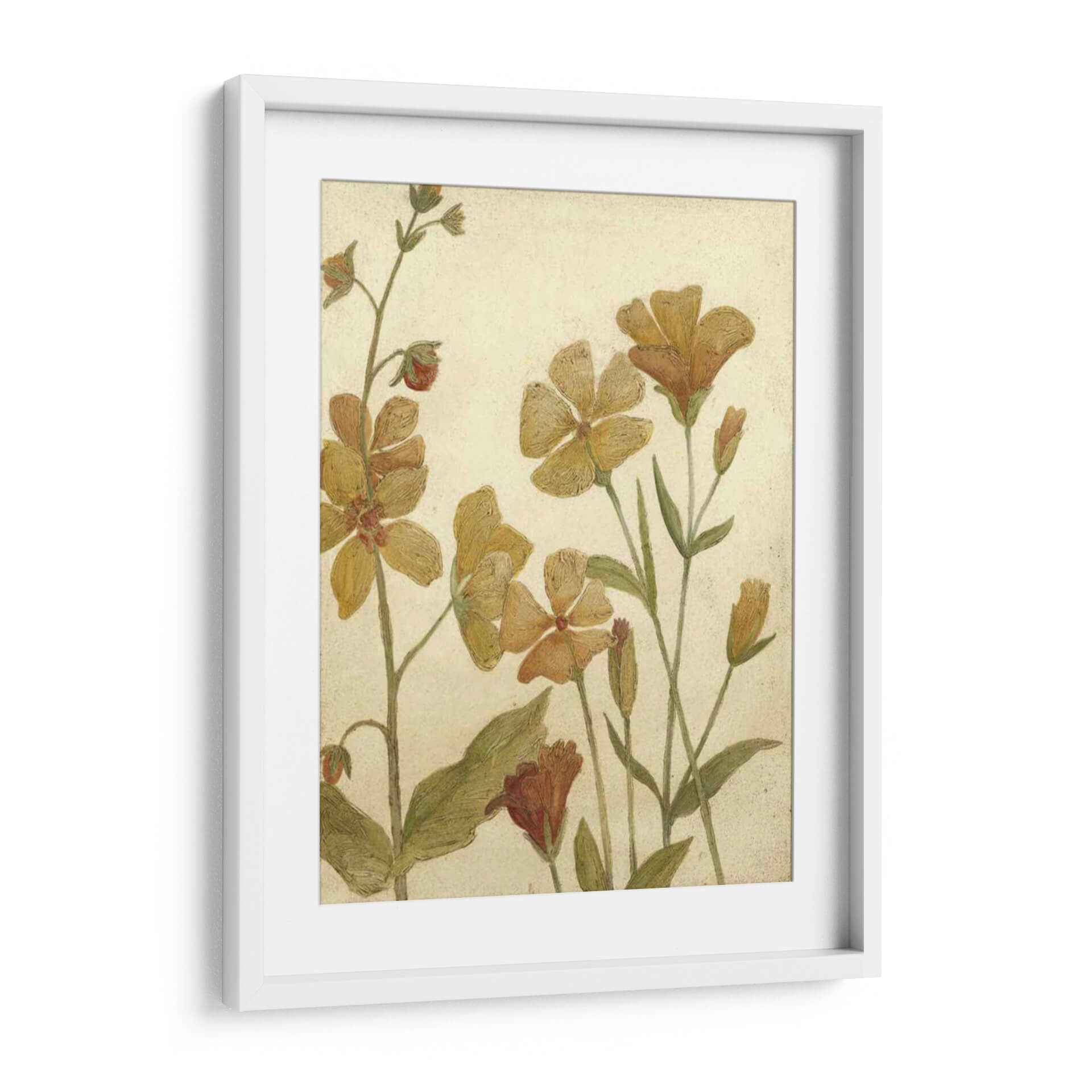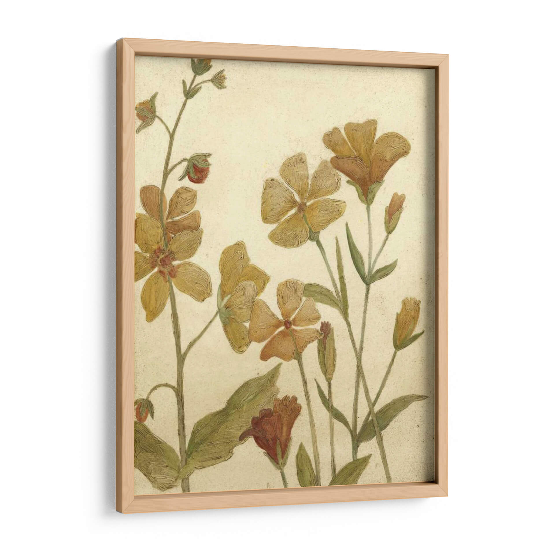 Sumérgete en la delicadeza botánica con "Pequeño Campo de Flores Silvestres I", una obra de arte que captura la efímera belleza de la naturaleza en su máxima expresión. Creada por Megan Meagher, esta pieza evoca una sensación de tranquilidad y nostalgia a través de su paleta de colores suaves y terrosos. Las flores amarillas y anaranjadas, representadas con pinceladas que sugieren textura y movimiento, parecen danzar suavemente sobre un fondo de tono crema, creando una atmósfera serena y acogedora. El estilo, que recuerda a las ilustraciones botánicas clásicas pero con un toque contemporáneo, hace que este cuadro decorativo sea perfecto para añadir un punto de interés naturalista a cualquier espacio. Imagina esta obra aportando un toque de frescura primaveral a tu sala de estar, una dosis de calma a tu dormitorio o un acento orgánico a tu oficina. Su composición vertical y el enfoque en los detalles florales la convierten en una elección ideal para aquellos que buscan una conexión con la naturaleza y aprecian la sutileza del arte botánico. "Pequeño Campo de Flores Silvestres I" no es solo una decoración, es una invitación a la contemplación y a la apreciación de los pequeños detalles que embellecen nuestro mundo.