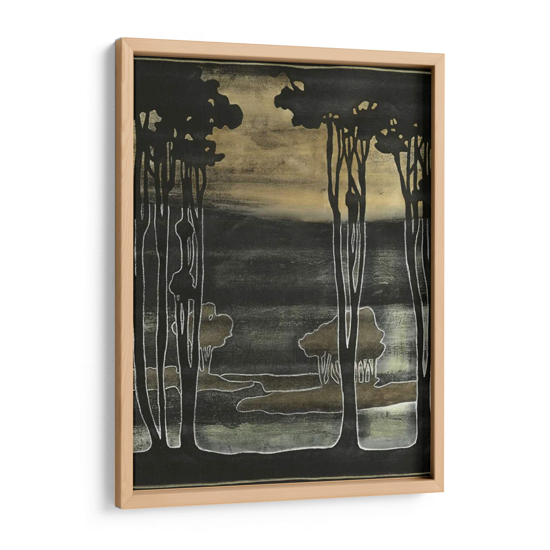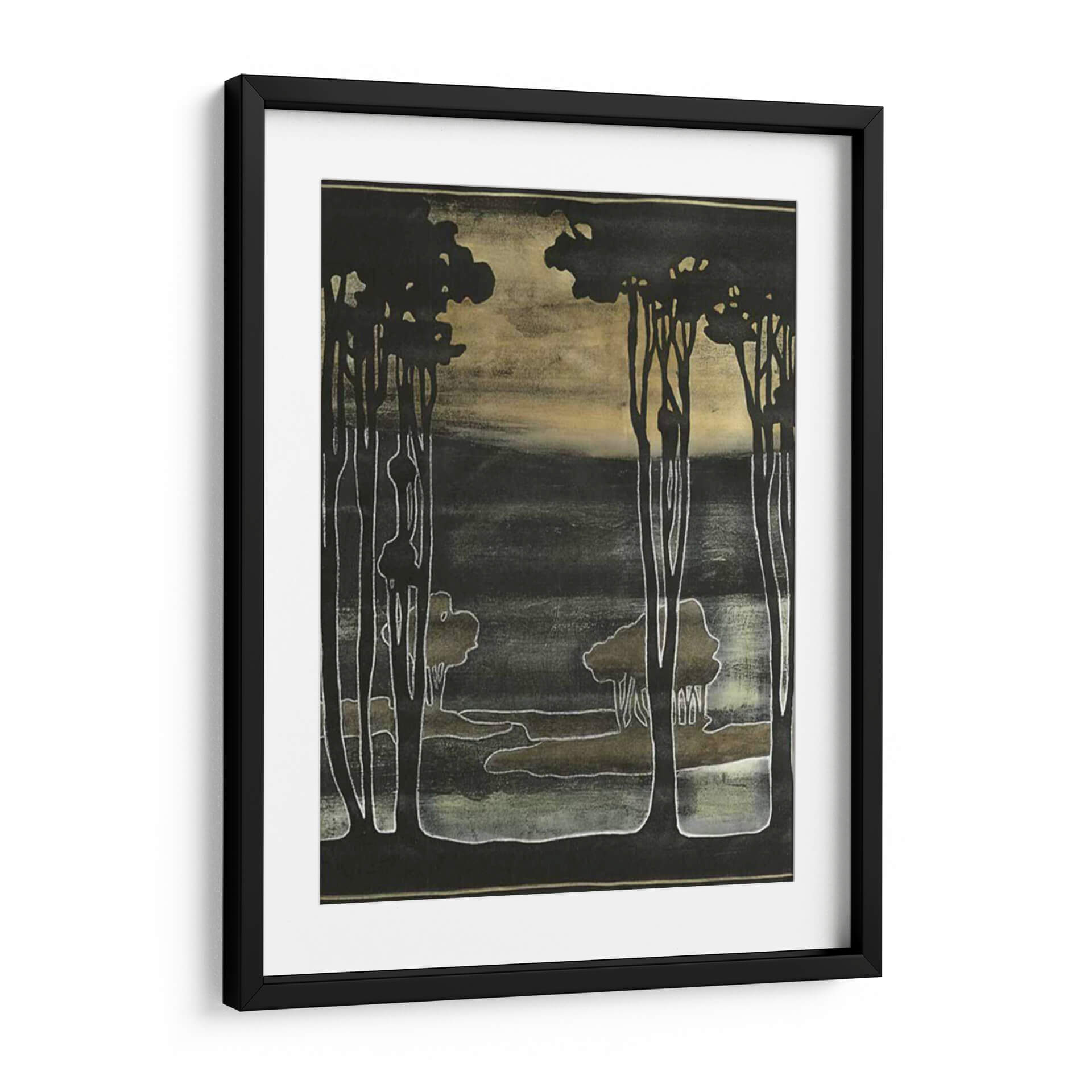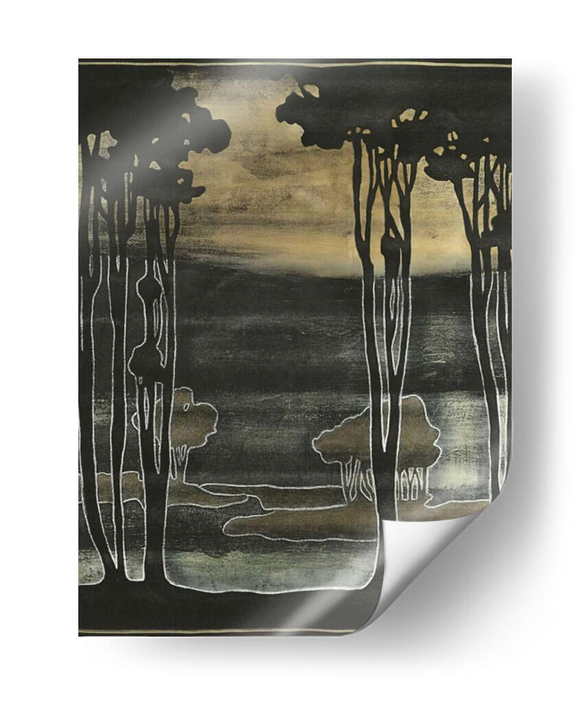 Sumérgete en la enigmática belleza de "Pequeños Árboles Nouveau I", una obra de Jennifer Goldberger que evoca la serenidad de un bosque al atardecer. Los intrincados contornos de los árboles, dibujados con un trazo blanco y luminoso, contrastan audazmente con un fondo oscuro y texturizado, creando una atmósfera de misterio y calma. La paleta de colores, dominada por tonos tierra, negros profundos y sutiles toques de verde musgo y dorado, aporta una sensación de profundidad y sofisticación. Este cuadro decorativo, inspirado en el estilo Art Nouveau, presenta una composición estilizada que captura la esencia de la naturaleza de una manera única y moderna. Es la pieza perfecta para añadir un toque de elegancia atemporal a cualquier espacio, ya sea una sala de estar, un dormitorio o un estudio. Imagina la tranquilidad que transmitirá a tu hogar, invitando a la contemplación y al descanso. "Pequeños Árboles Nouveau I" no es solo una decoración, es una ventana a un mundo de ensueño que transformará tu ambiente.