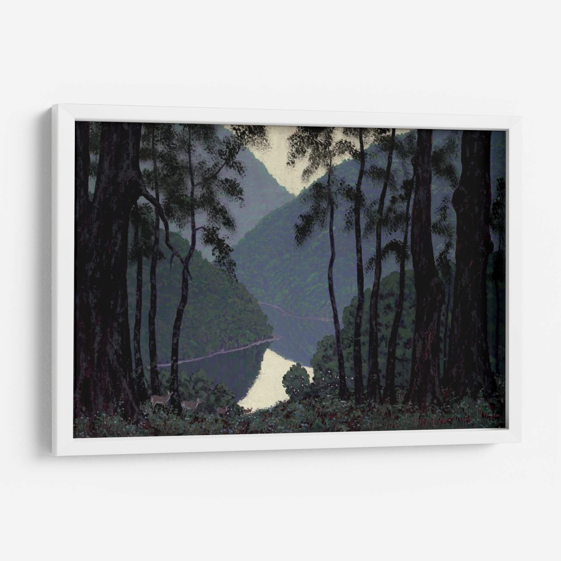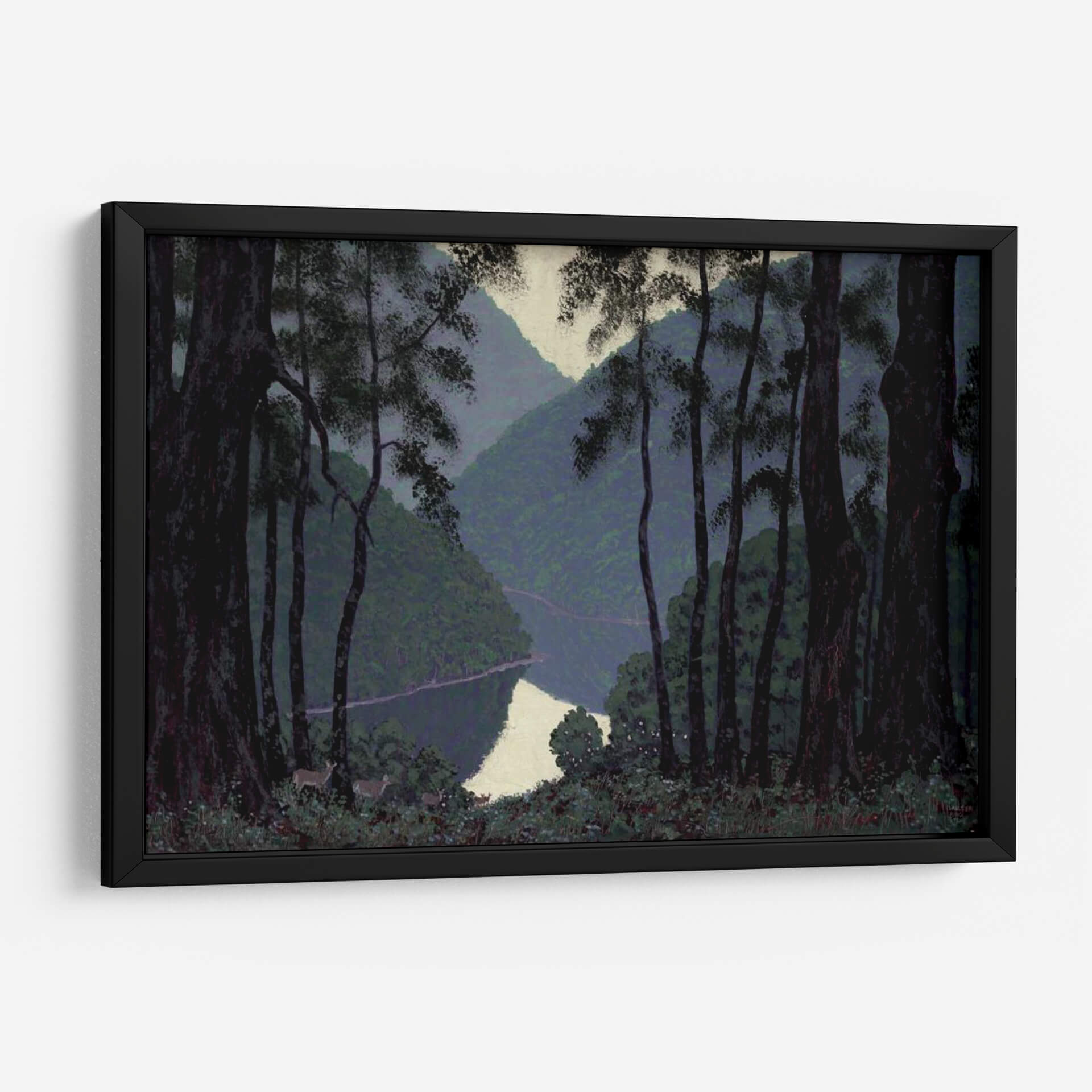 Sumérgete en la serena belleza de "Primavera", una obra de Walter King Stone que captura la esencia mística de un bosque profundo y un río serpenteante. Este cuadro decorativo te transporta a un santuario natural, donde la luz se filtra suavemente entre los altos árboles, creando un juego de sombras y reflejos sobre el agua tranquila. La paleta de colores, dominada por verdes profundos, azules sombríos y toques de beige etéreo en el fondo, evoca una sensación de paz y misterio. La composición, con árboles oscuros en primer plano que enmarcan una vista expansiva de colinas boscosas y un río en forma de S, invita a la contemplación. La sutil presencia de ciervos añade un toque de vida salvaje y pureza a la escena. "Primavera" es ideal para infundir calma y una conexión con la naturaleza en tu sala de estar, dormitorio o estudio, convirtiéndose en un punto focal que inspira tranquilidad y asombro. Descubre el arte que transforma espacios y eleva el espíritu con esta pieza evocadora.