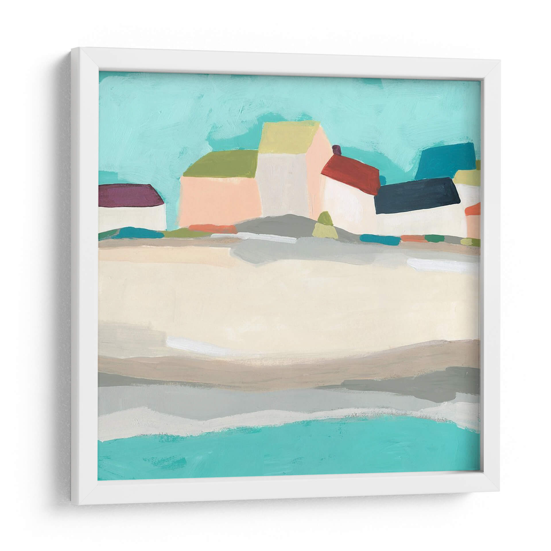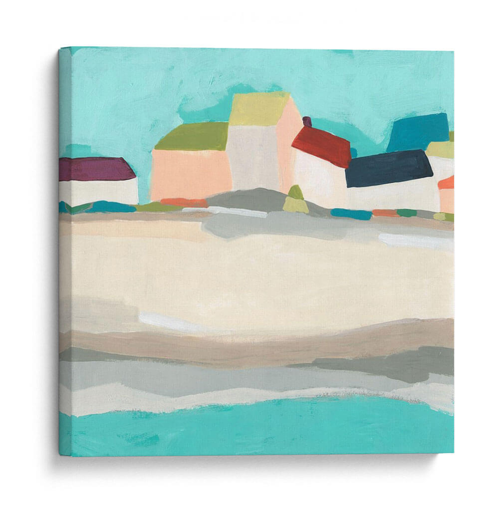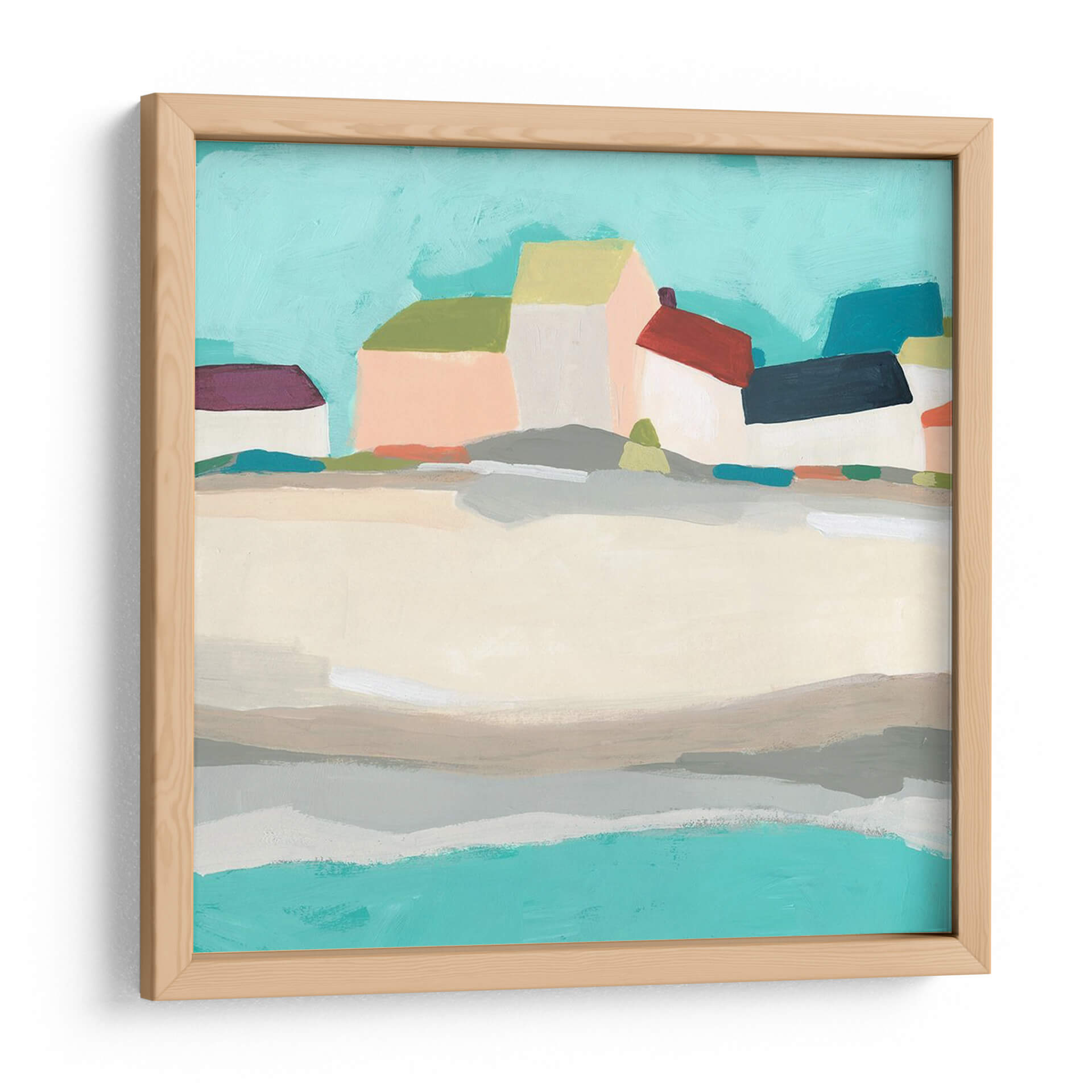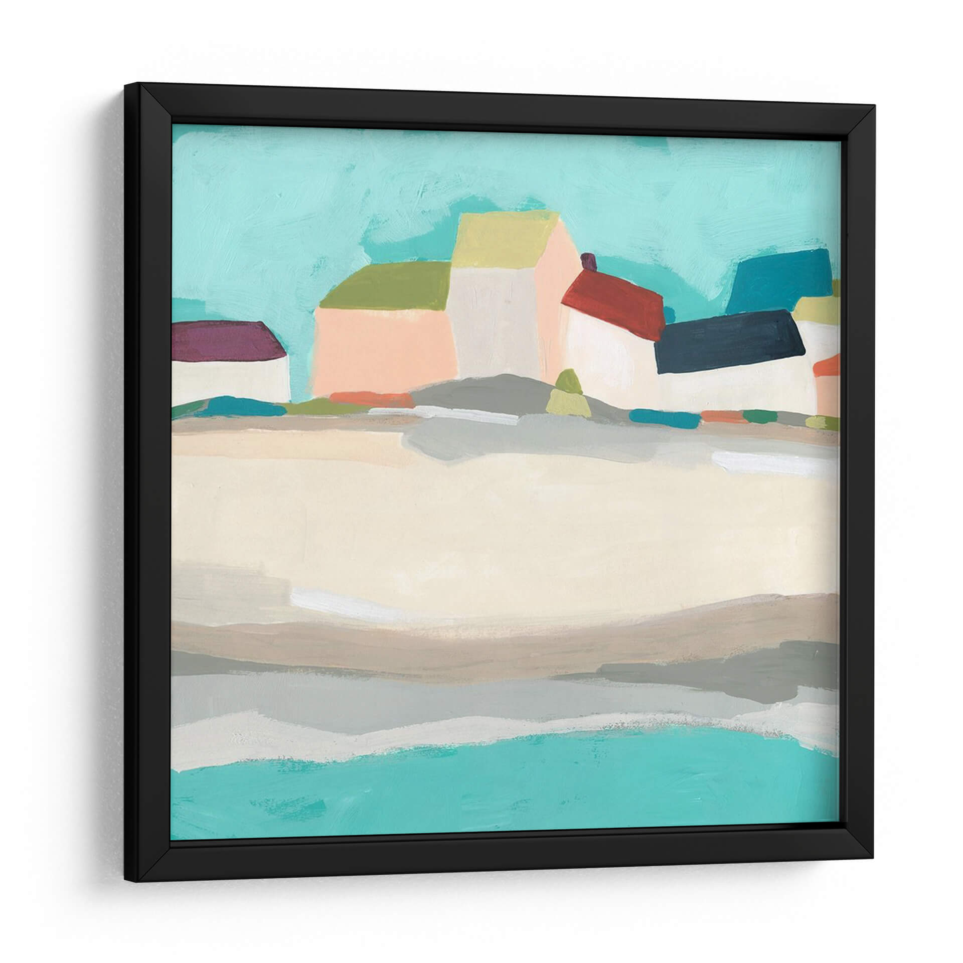 Sumérgete en la serenidad costera con 'Pueblo Costero I', una cautivadora obra de arte de June Erica Vess. Este cuadro decorativo captura la esencia de un tranquilo asentamiento junto al mar a través de una interpretación moderna y colorida. La paleta de colores, dominada por tonos pastel suaves como el melocotón y el verde menta, se combina con toques vibrantes de rojo, azul marino y turquesa, evocando la calidez del sol y la frescura del océano. La composición abstracta y geométrica presenta siluetas simplificadas de casas con tejados audaces, dispuestas sobre una llanura arenosa que se funde con el horizonte. Las pinceladas sueltas y la ausencia de detalles nítidos invitan a la contemplación, transmitiendo una atmósfera de paz y escapismo. Ideal para añadir un toque de color y sofisticación a cualquier sala de estar, dormitorio o espacio de oficina, este cuadro decorativo transformará tu hogar en un refugio de tranquilidad y estilo contemporáneo. Descubre la belleza de la vida costera reinterpretada por el arte moderno.