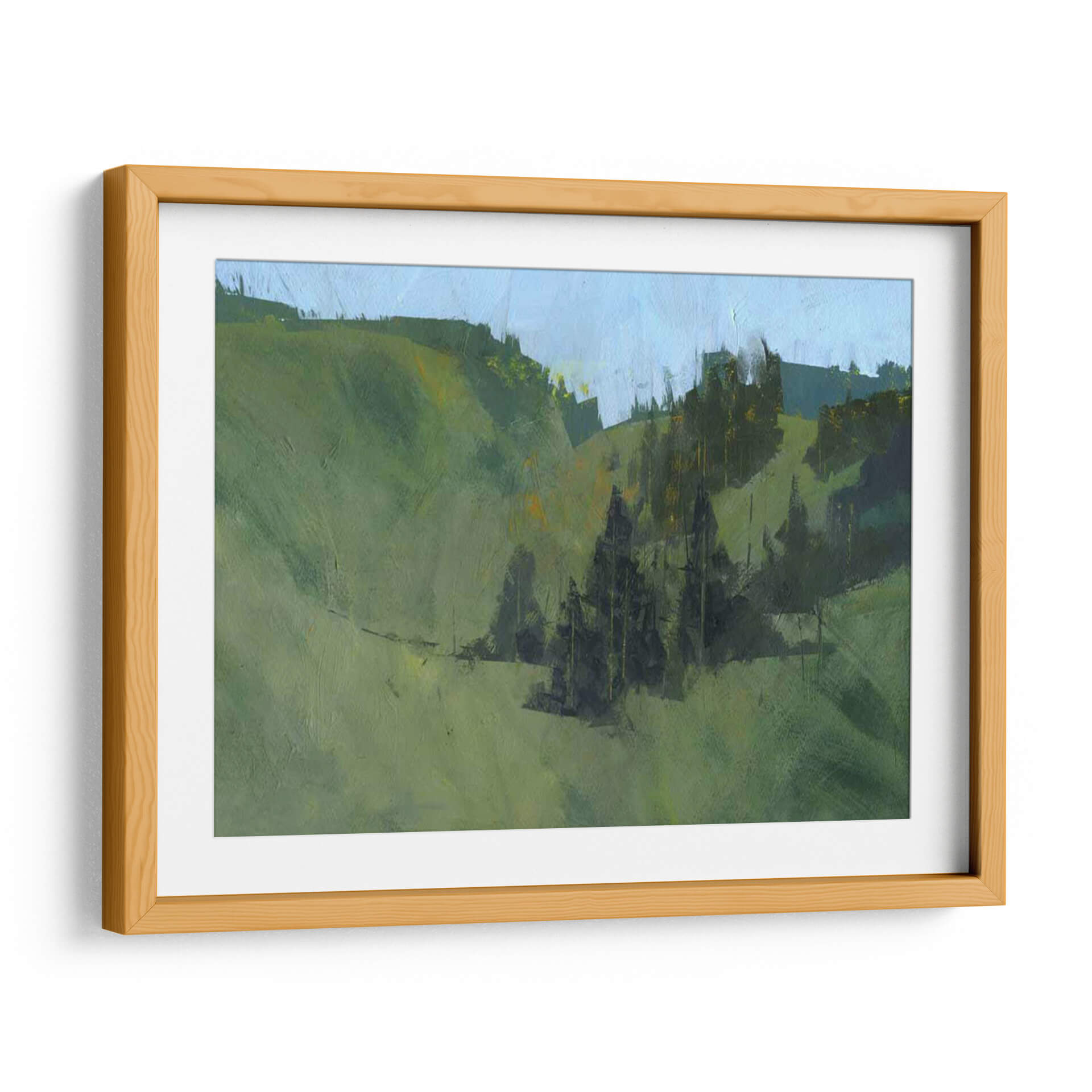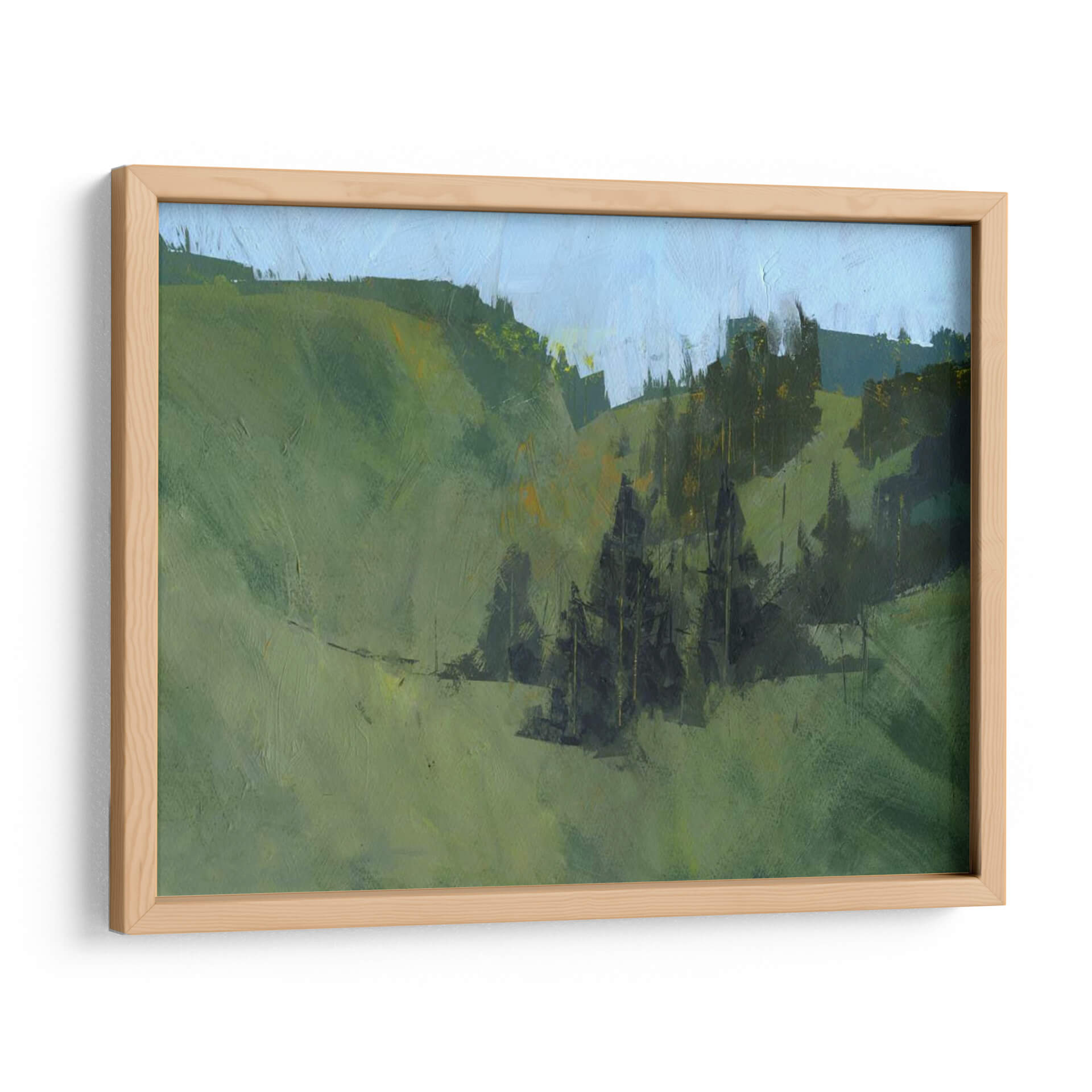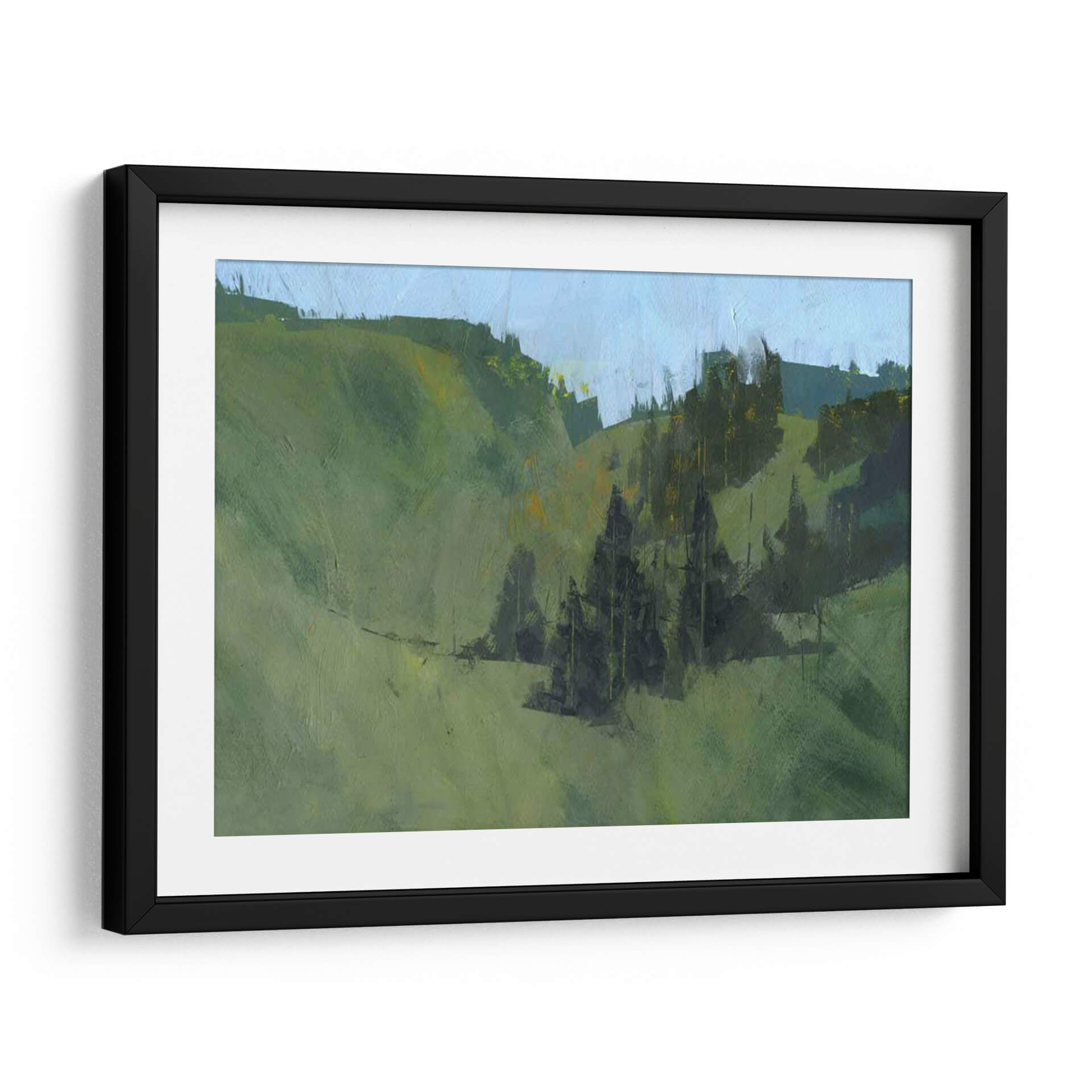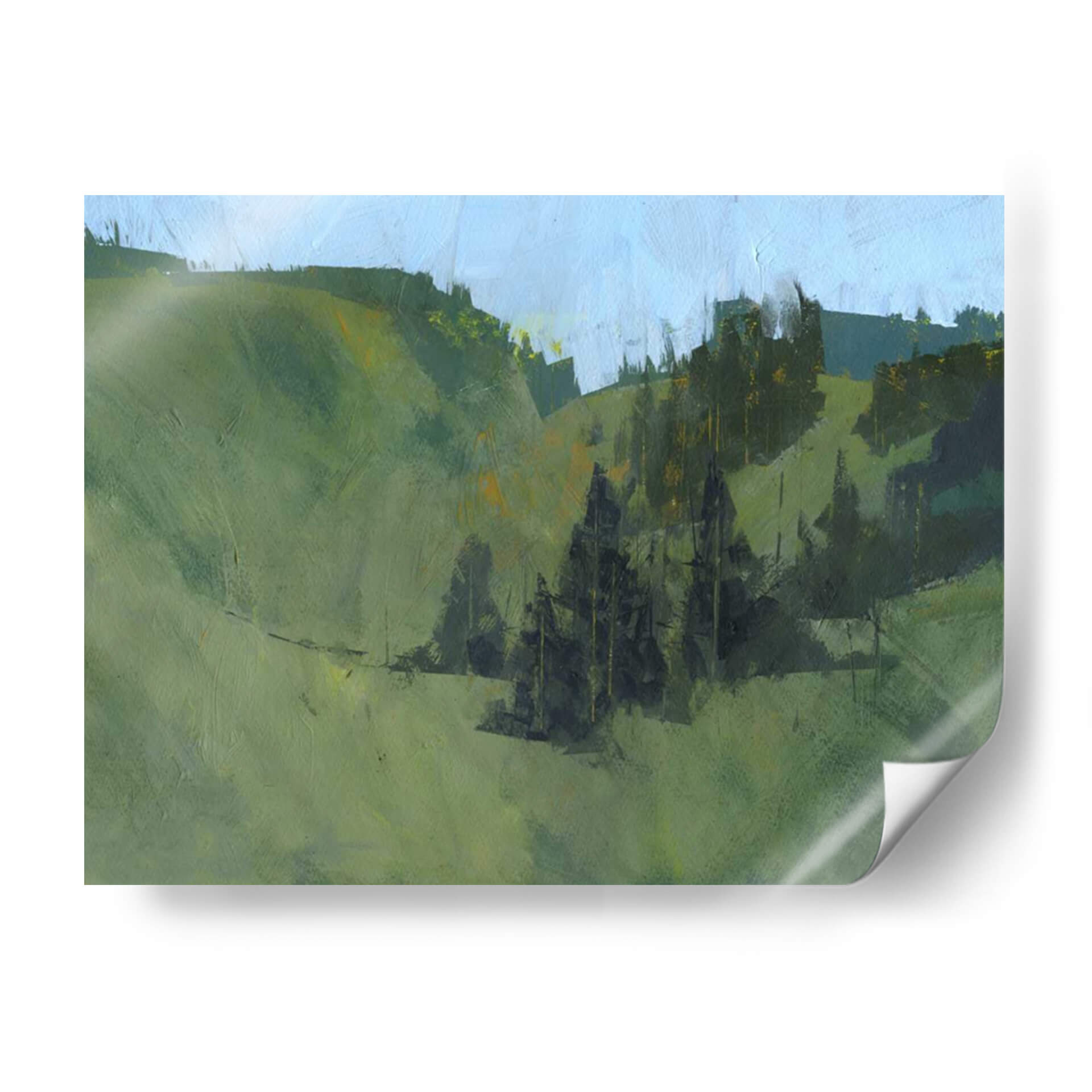 Sumérgete en la serenidad de "Radnor Walk", una obra de arte que captura la esencia de un paisaje natural con una sensibilidad contemporánea. El artista Paul Bailey nos transporta a un entorno sereno a través de pinceladas expresivas y una paleta de colores dominada por verdes profundos y celestes suaves. Las colinas ondulantes se despliegan ante la mirada, salpicadas por formaciones de árboles oscuros que añaden profundidad y un toque de misterio a la composición. La luz parece jugar sutilmente entre los tonos, creando una atmósfera de calma y contemplación. Este cuadro decorativo es perfecto para quienes buscan infundir tranquilidad y una conexión con la naturaleza en su hogar u oficina. Ideal para salones que buscan un punto focal orgánico, dormitorios que anhelan paz, o estudios que inspiran creatividad. "Radnor Walk" no es solo una pieza de decoración, sino una ventana a un momento de quietud y belleza natural, invitando a la reflexión y al disfrute estético. Su estilo evoca una sensación de impresionismo moderno, donde la forma se sugiere más que se define, permitiendo al espectador completar la escena con su propia imaginación. Añade esta obra maestra contemporánea a tu colección y transforma tu espacio en un refugio de arte y serenidad.