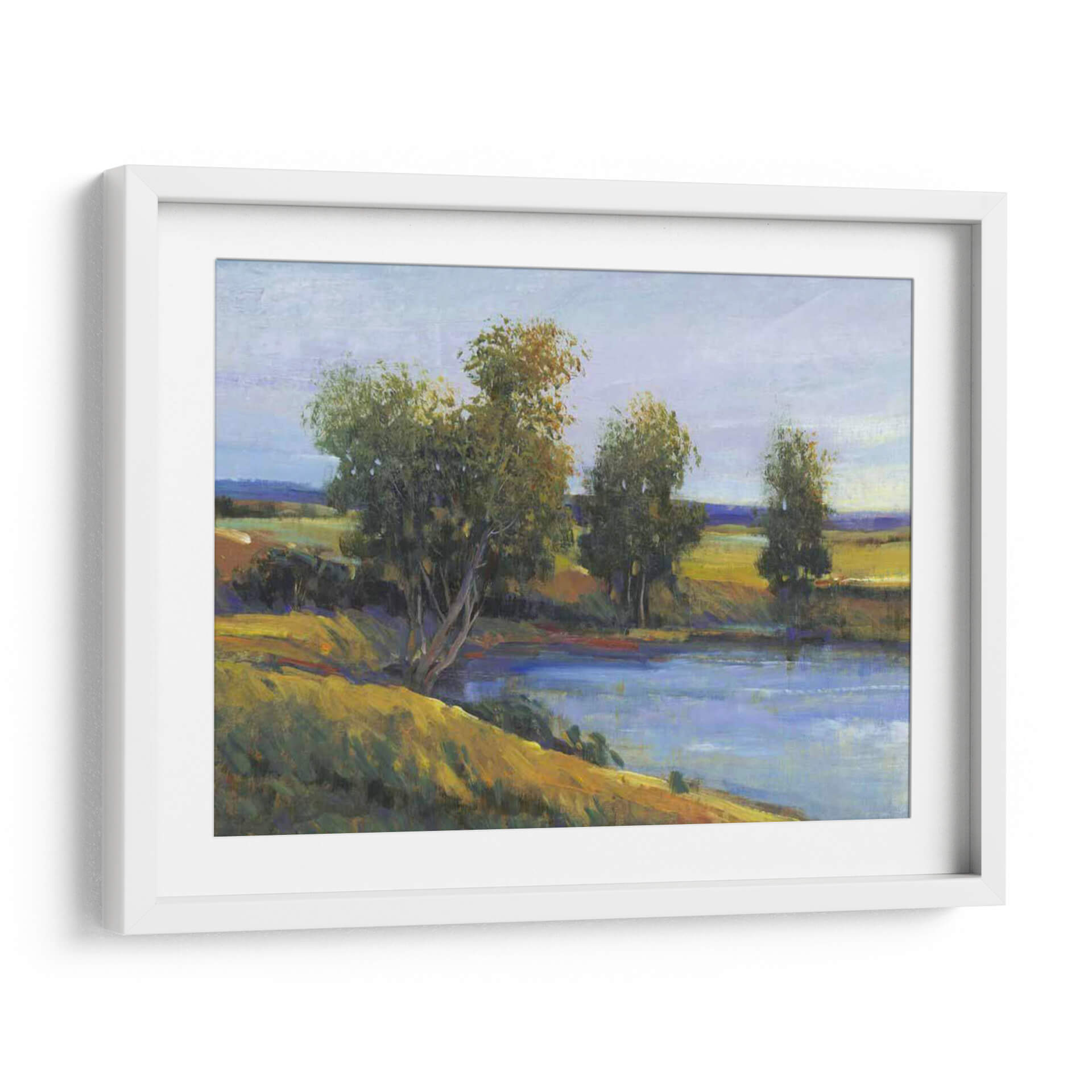 Sumérgete en la serenidad de la naturaleza con "Reflejo De Árboles Ii", una obra maestra de Tim O'Toole que captura la esencia de un paisaje tranquilo junto a un cuerpo de agua sereno. Este cuadro decorativo te transporta a un momento de paz, donde la luz del sol baña la orilla en tonos dorados y ocres, contrastando con el azul vibrante del agua y el cielo plomizo. Los árboles, representados con pinceladas sueltas y expresivas, crean un juego de sombras y reflejos que añaden profundidad y realismo a la escena. La técnica impresionista de O'Toole se manifiesta en la forma en que capta la atmósfera y la luz efímera, invitando a la contemplación. Este lienzo es ideal para añadir un toque de calma y conexión con la naturaleza a cualquier espacio, desde una sala de estar moderna hasta un dormitorio acogedor u oficina. Su composición equilibrada y su paleta de colores terrosos y acuáticos lo convierten en una pieza versátil que armoniza con diversos estilos decorativos. "Reflejo De Árboles Ii" no es solo una imagen, es una ventana a un paisaje idílico, una invitación a detenerse y apreciar la belleza serena del mundo natural, convirtiendo tu hogar en un refugio de tranquilidad.