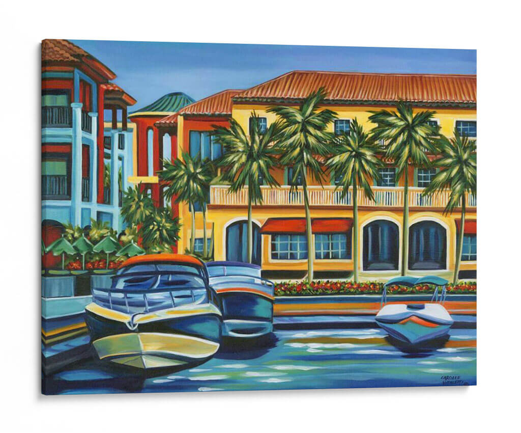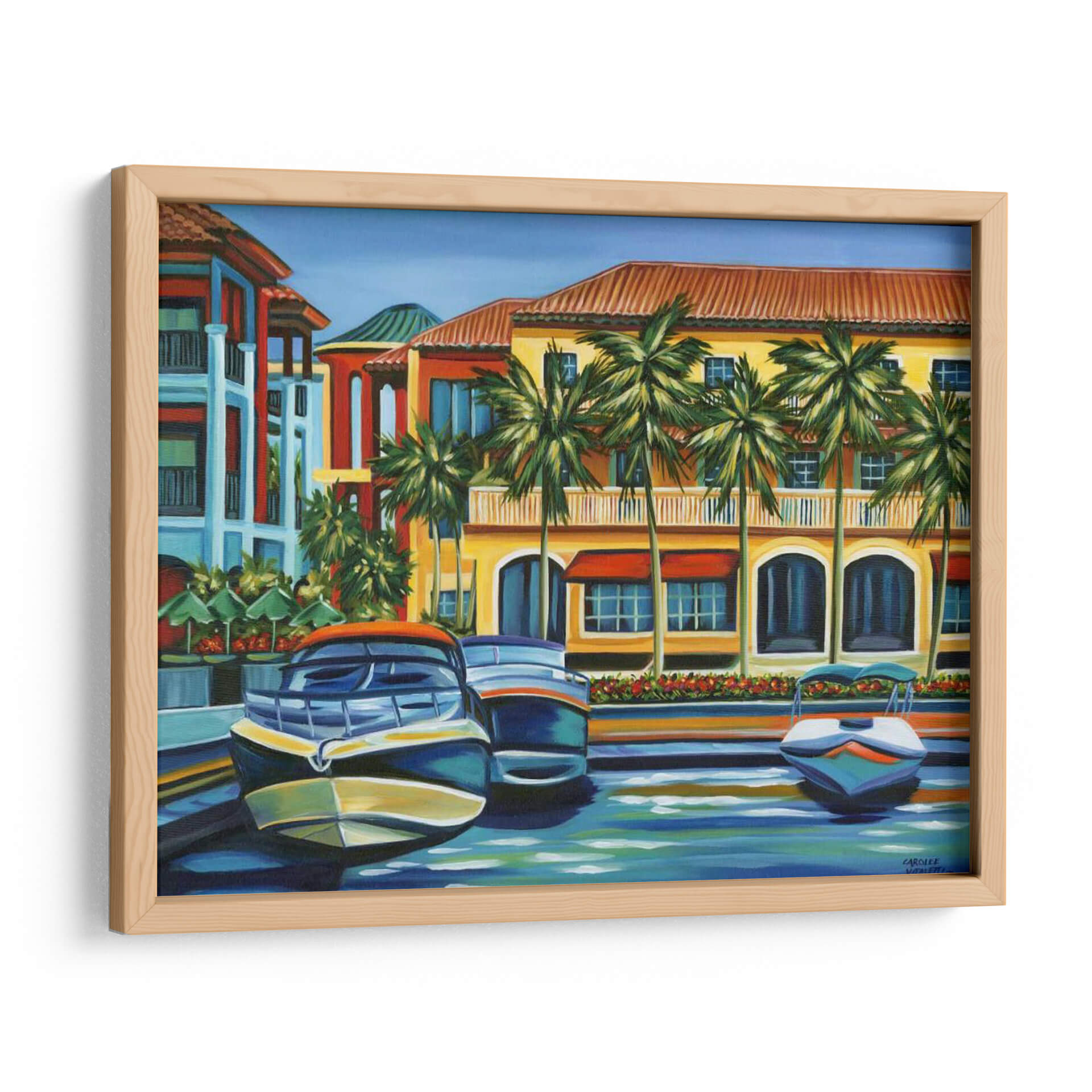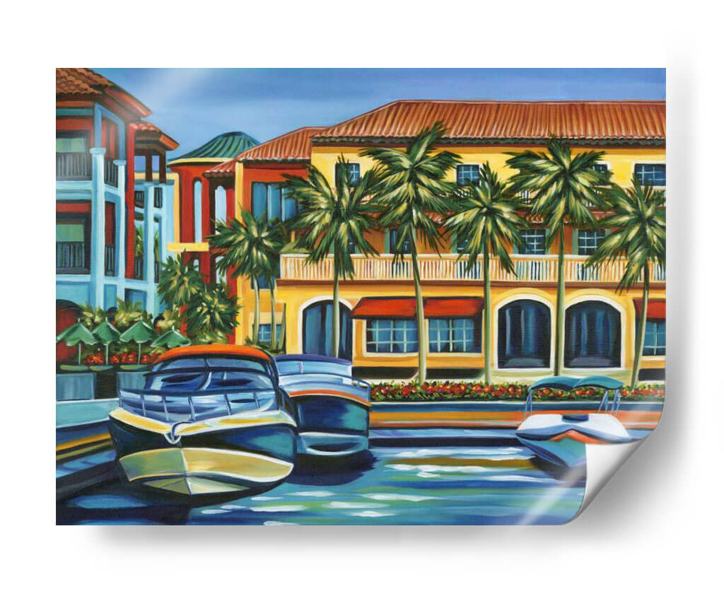 Sumérgete en la vibrante escena de 'Rendezvous Tropical II' de Carolee Vitaletti, una obra de arte que captura la esencia de un paraíso costero. Este cuadro decorativo te transporta a un muelle soleado, donde barcos elegantes esperan sobre aguas serenas, rodeados de una arquitectura tropical colorida con tonos cálidos de amarillo, naranja y vibrantes azules y rojos. Las exuberantes palmeras añaden un toque de frescura y exotismo, creando una atmósfera de vacaciones y relajación. La técnica expresiva de Vitaletti da vida a cada elemento, desde el reflejo danzante del agua hasta las texturas de los edificios, invitando al espectador a una escapada visual. 'Rendezvous Tropical II' es perfecto para infundir energía y un aire vacacional en tu sala de estar, comedor o incluso en un espacio de oficina que necesite un toque de optimismo. Su composición equilibrada y su rica paleta de colores lo convierten en un punto focal atractivo y una pieza de conversación ideal para quienes buscan un arte que evoque alegría y tranquilidad. Añade este toque de paraíso a tu hogar y disfruta de su encanto tropical durante todo el año.