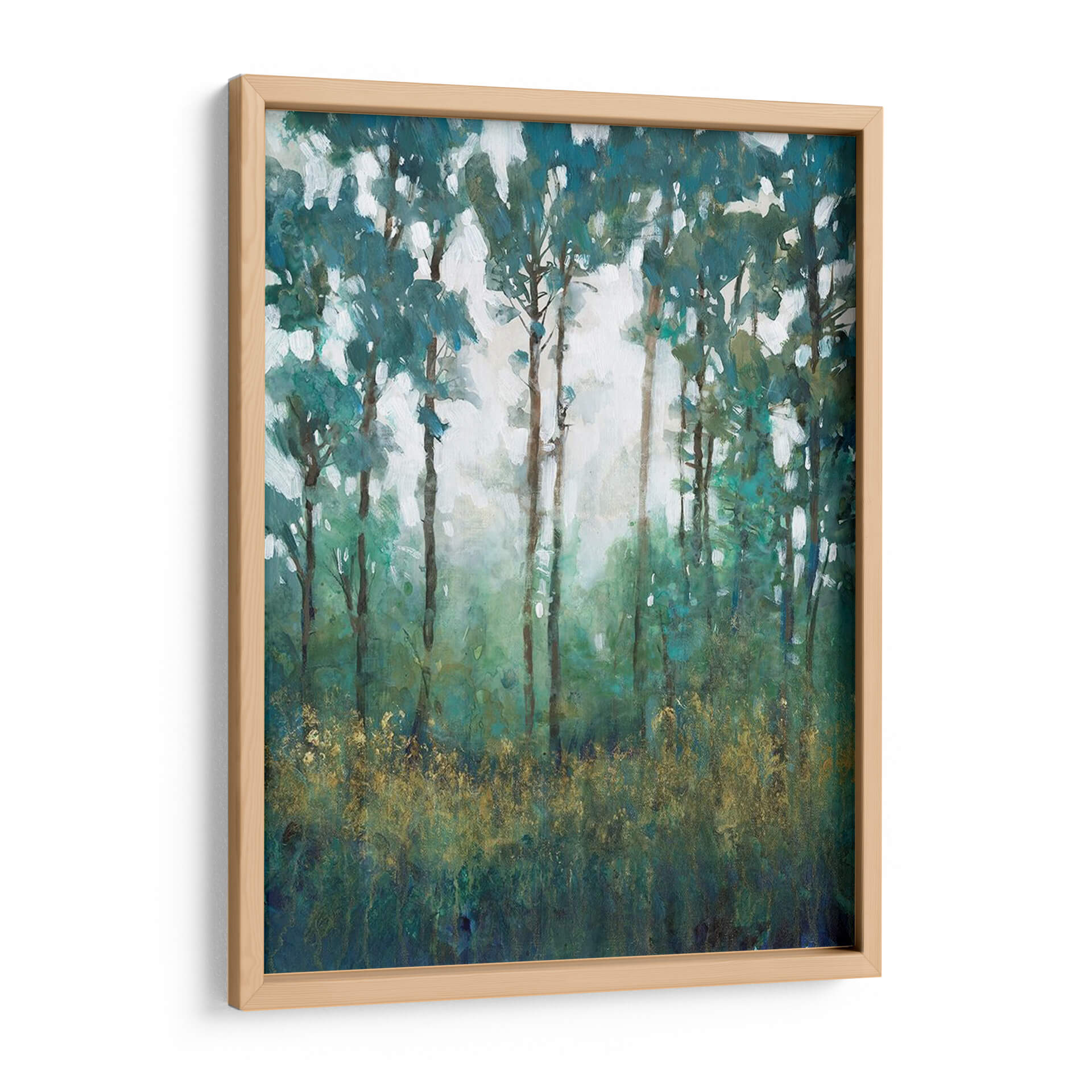 Sumérgete en la enigmática belleza de 'Resplandor En El Bosque I', una obra de arte que captura la serena majestuosidad de un bosque neblinoso. Los trazos audaces y la paleta de colores, dominada por profundos verdes, azules y toques de dorado resplandeciente, evocan una atmósfera de misterio y tranquilidad. Las altas y esbeltas figuras de los árboles se alzan como guardianes silenciosos, mientras que la vegetación exuberante en primer plano invita a la contemplación. Este cuadro decorativo es una ventana a un mundo natural bañado por una luz etérea, ideal para quienes buscan añadir un toque de naturaleza y calma a su hogar u oficina. Su estilo evocador, con pinceladas sueltas que sugieren el movimiento y la profundidad, lo convierte en una pieza versátil que complementará a la perfección espacios modernos, rústicos o bohemios. 'Resplandor En El Bosque I' no es solo una imagen, es una invitación a desconectar y encontrar paz en la contemplación de la naturaleza.