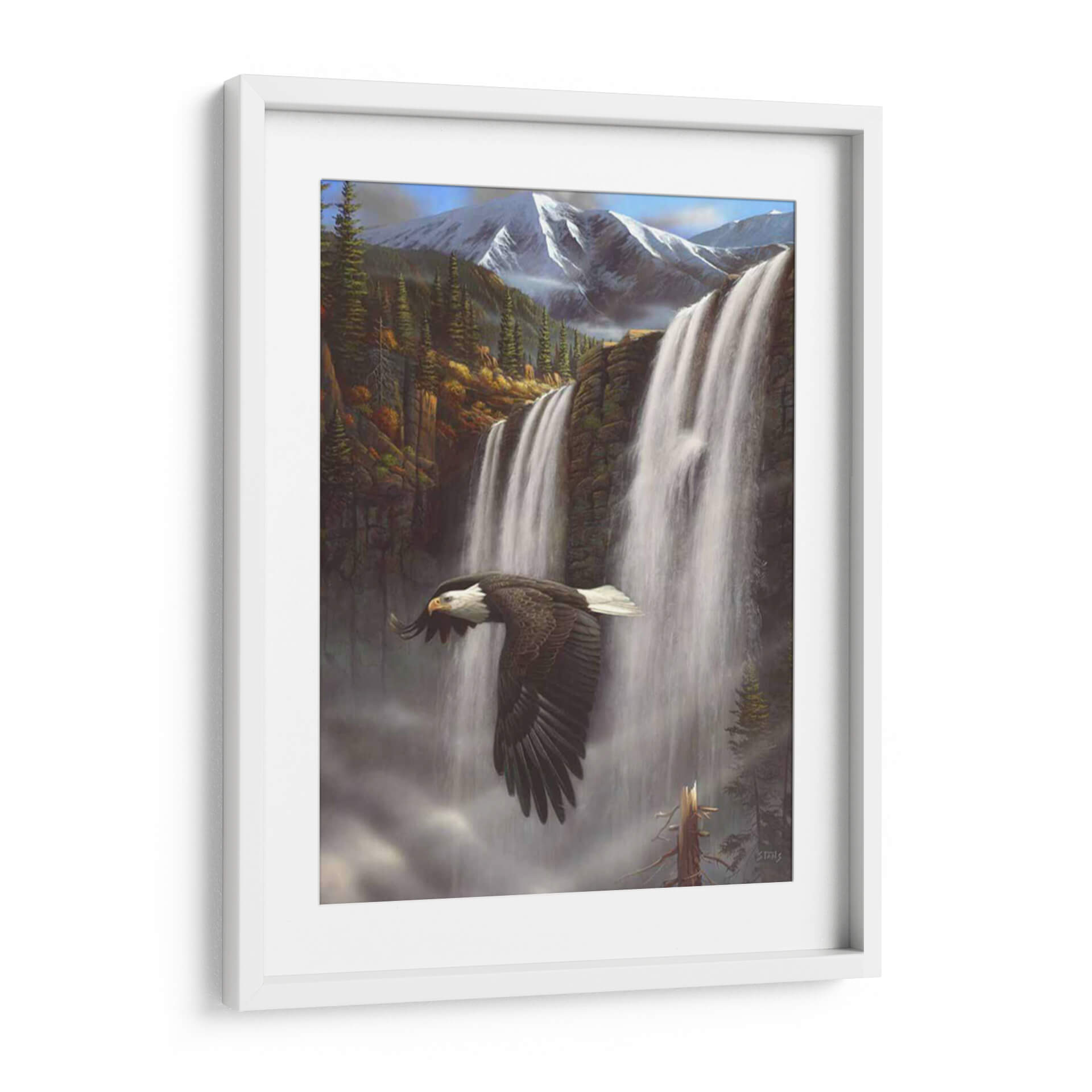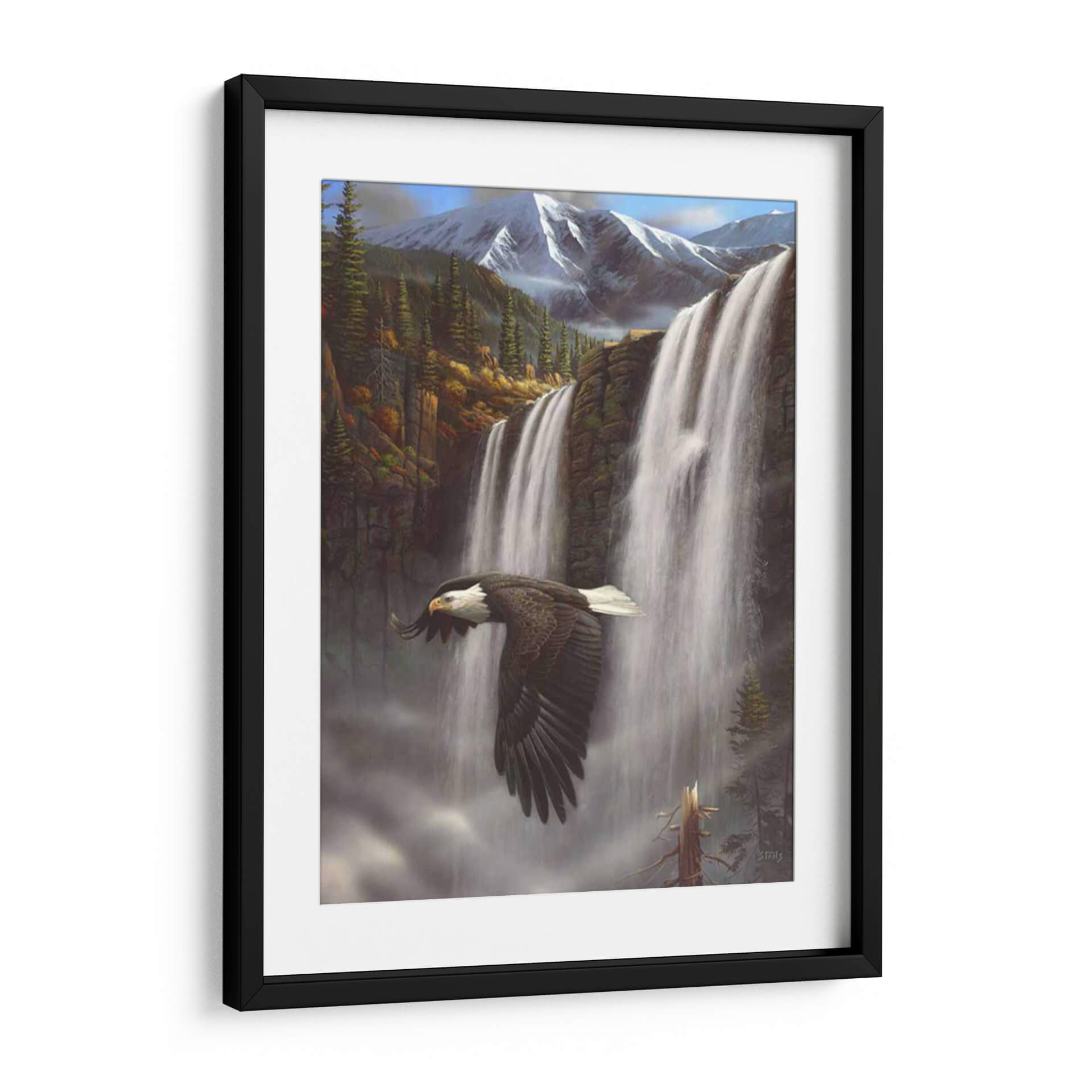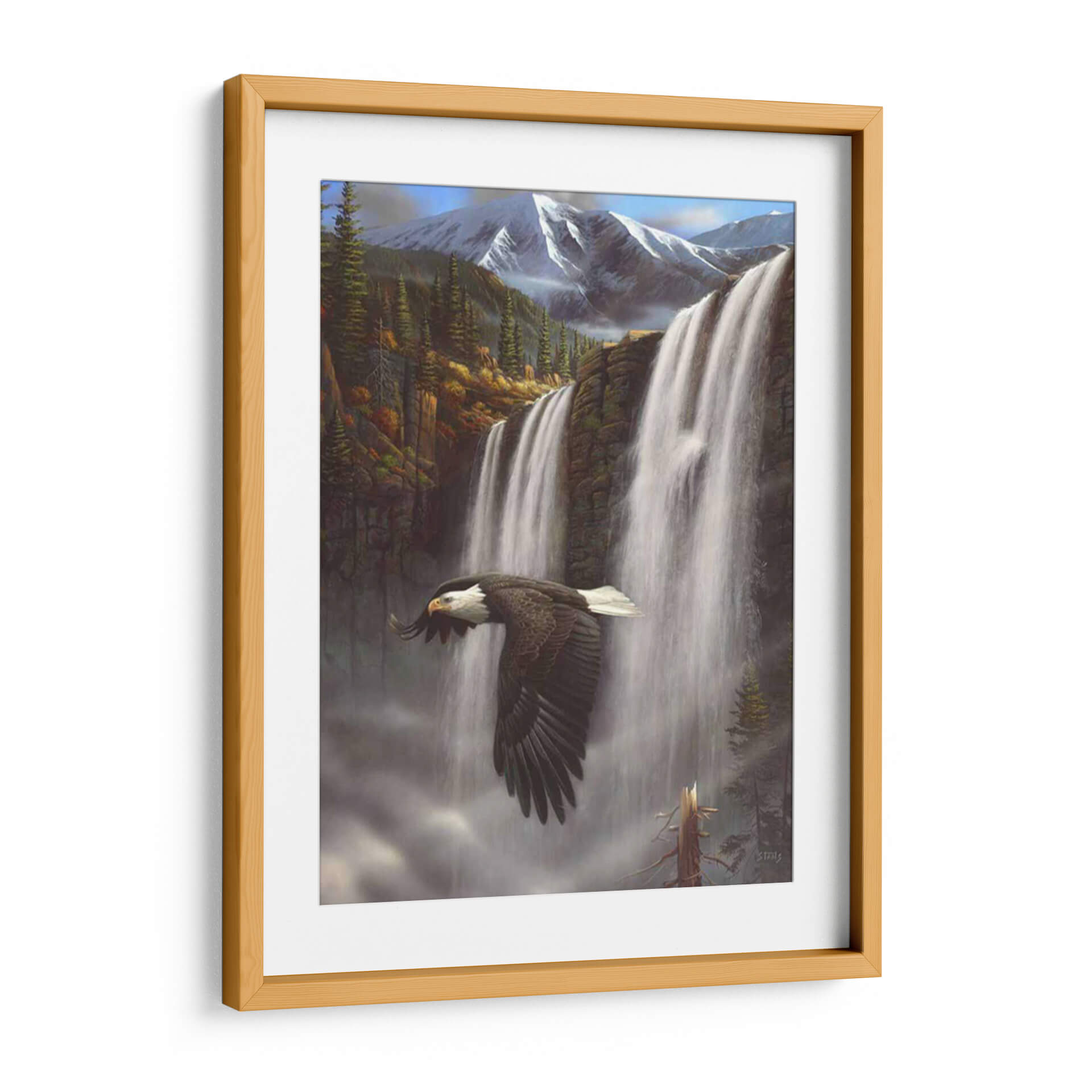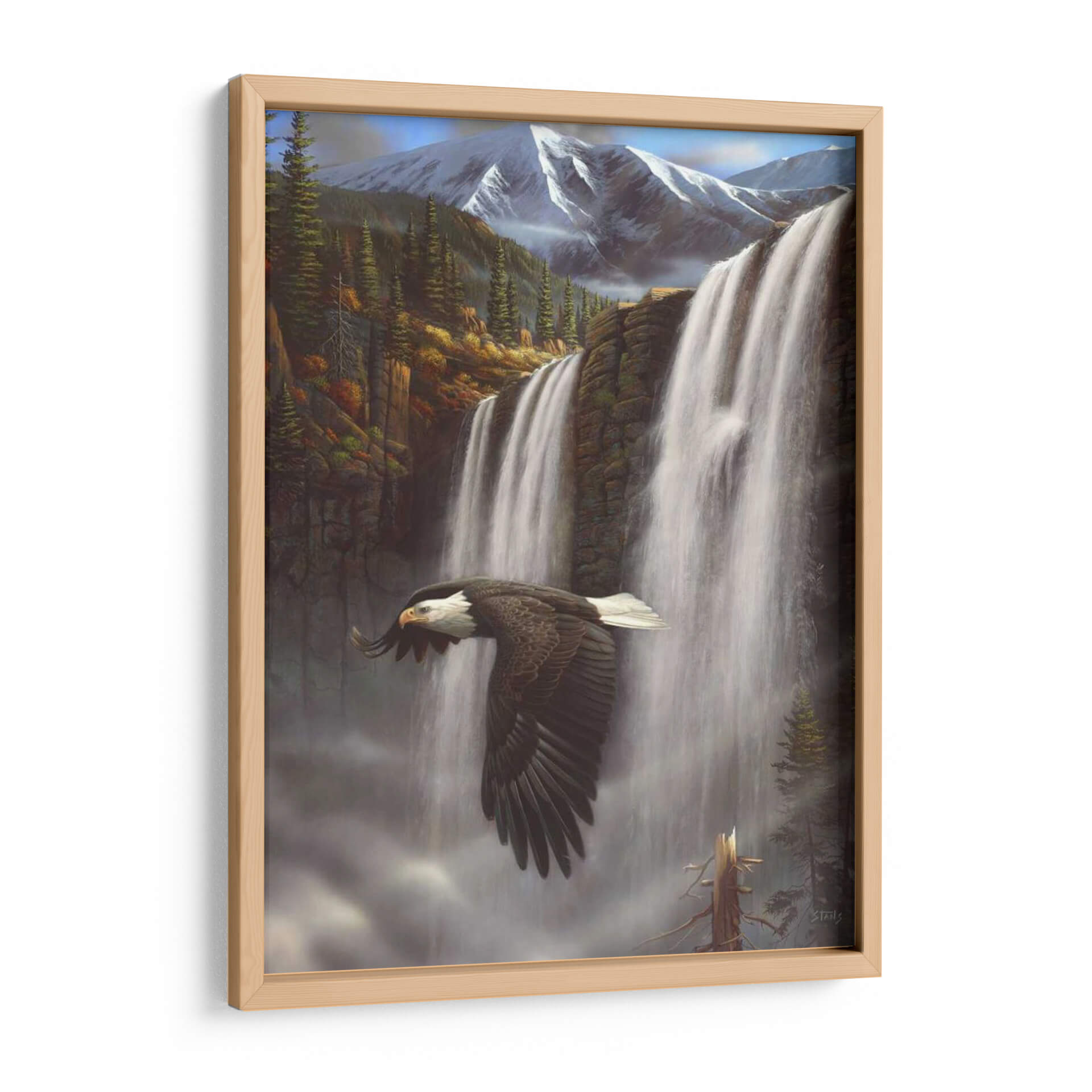 Captura la majestuosidad de la naturaleza con este impresionante cuadro decorativo "Retrato De Águila" de Leo Stans. La obra presenta un águila calva en pleno vuelo, con sus alas extendidas, sobrevolando una cascada imponente en un entorno montañoso y boscoso. Los colores predominantes, una rica paleta de marrones, verdes oscuros y blancos nítidos de la nieve en las cumbres, crean una atmósfera de poder y serenidad. La composición dinámica del águila en primer plano, contrastando con la fuerza vertical de las cascadas y la inmensidad de las montañas, invita a la contemplación de la libertad y la naturaleza salvaje. Es una pieza ideal para inspirar espacios de trabajo, salas de estar o cualquier lugar donde se desee añadir un toque de fuerza y belleza natural. Este cuadro decorativo no solo embellece, sino que también evoca un sentido de aventura y conexión con el mundo natural, convirtiéndose en un punto focal que atraerá todas las miradas y conversaciones. Perfecto para amantes de la fauna y paisajes grandiosos.