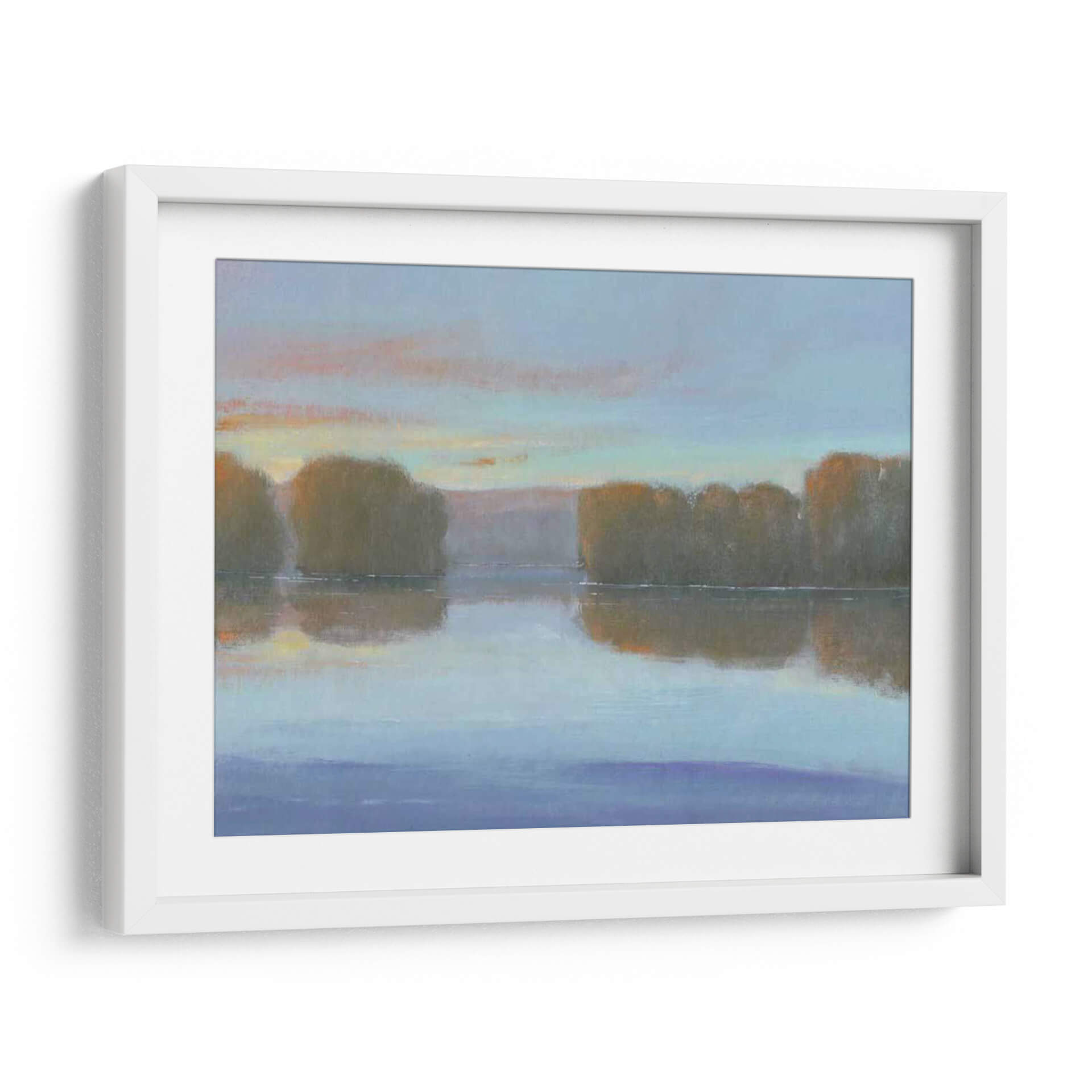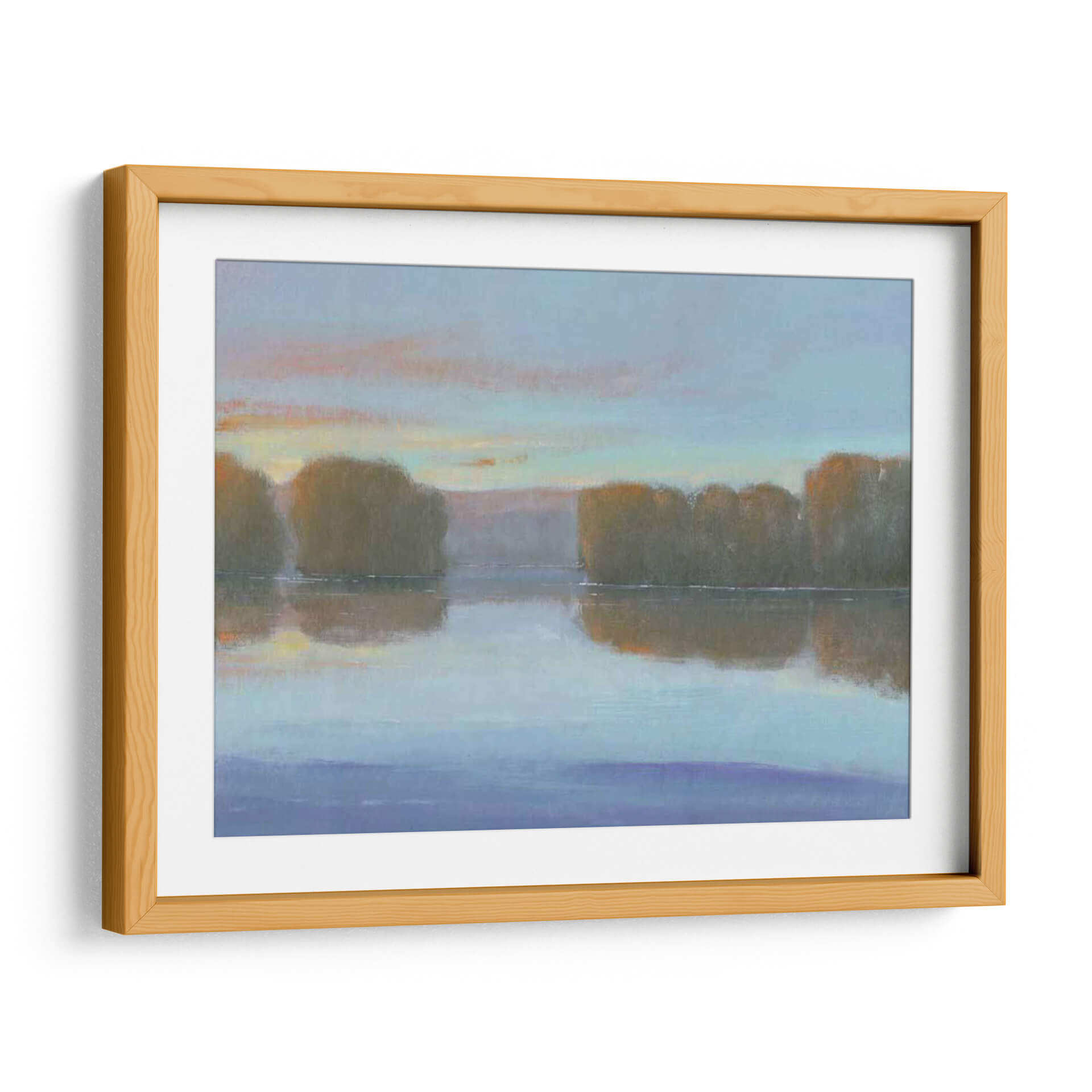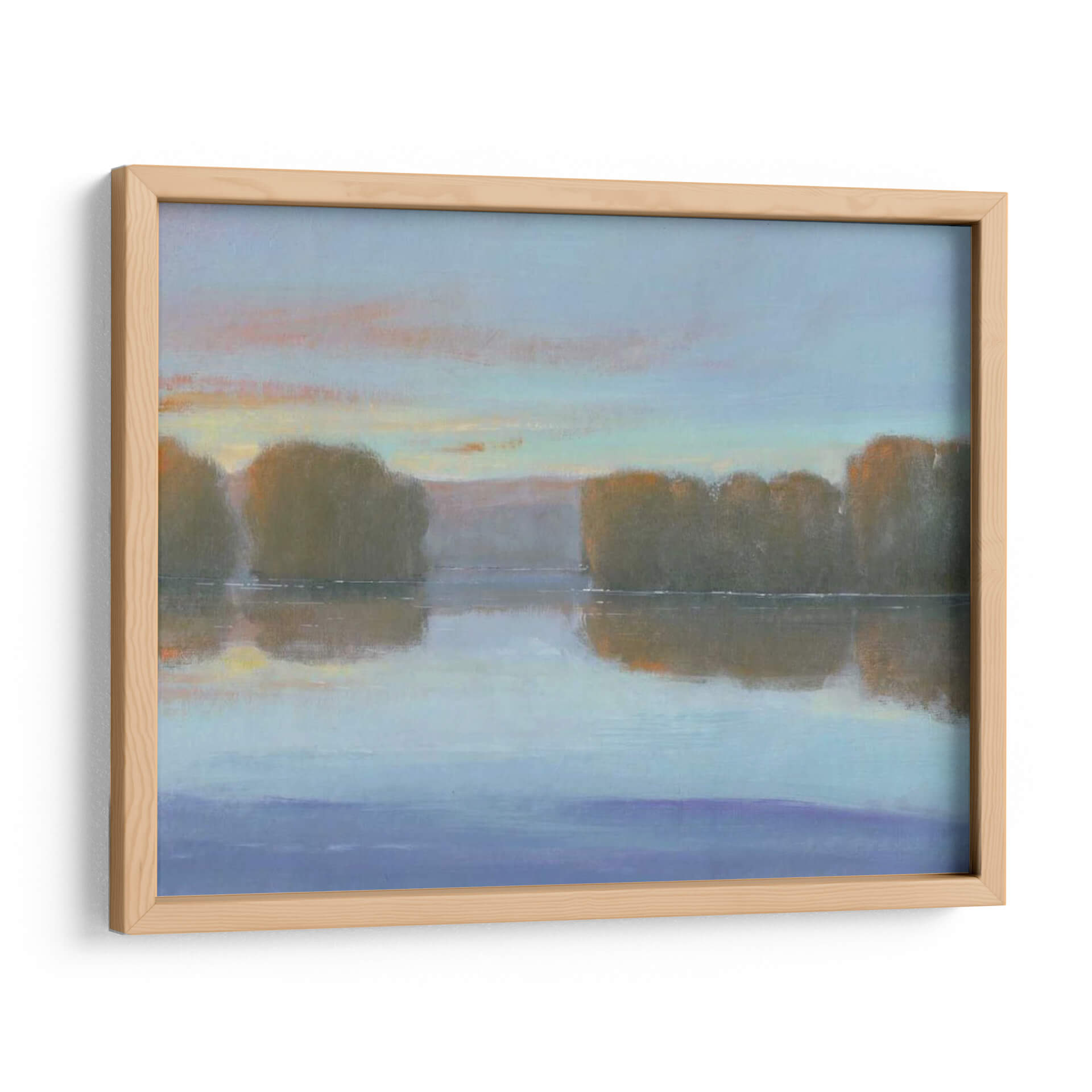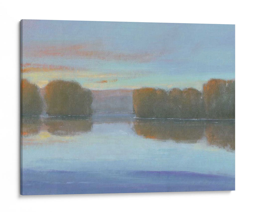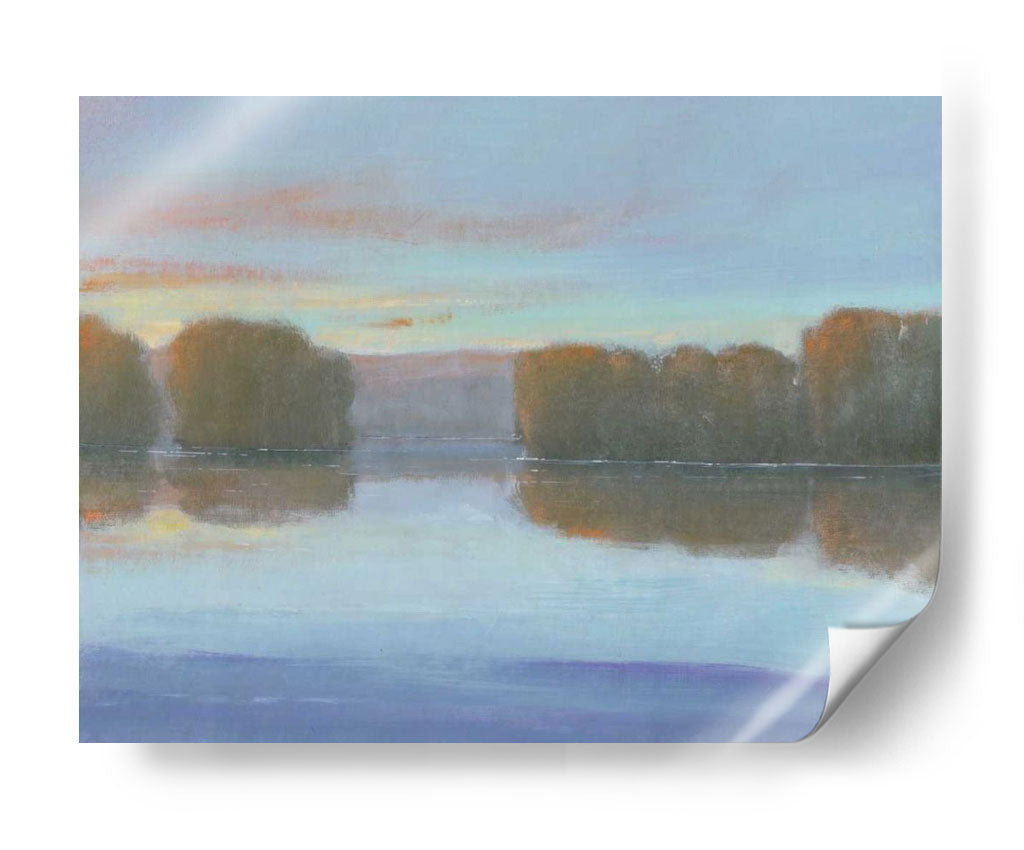 Sumérgete en la serenidad de "Río Crystal I", una obra de arte contemporáneo que captura la esencia de un paisaje acuático con una paleta de colores etérea y relajante. El artista Tim O'Toole nos presenta una composición minimalista donde las suaves tonalidades de azul claro, lavanda y toques sutiles de naranja y ocre se fusionan para crear una atmósfera de paz y tranquilidad. Las siluetas difuminadas de árboles bordean el horizonte, reflejándose delicadamente en la superficie del agua, que actúa como un espejo de calma. Este cuadro decorativo es ideal para espacios que buscan evocar una sensación de sosiego, como dormitorios, salas de estar o incluso estudios de meditación. Su estilo pictórico, con pinceladas sugerentes y una atmósfera soñadora, invita a la contemplación y aporta un toque de sofisticación sutil a cualquier decoración. "Río Crystal I" no es solo una pieza de arte, sino una ventana a un momento de paz, perfecta para quienes aprecian la belleza en la simplicidad y la armonía de la naturaleza. Añade una dimensión de serenidad a tu hogar con esta pieza cautivadora.