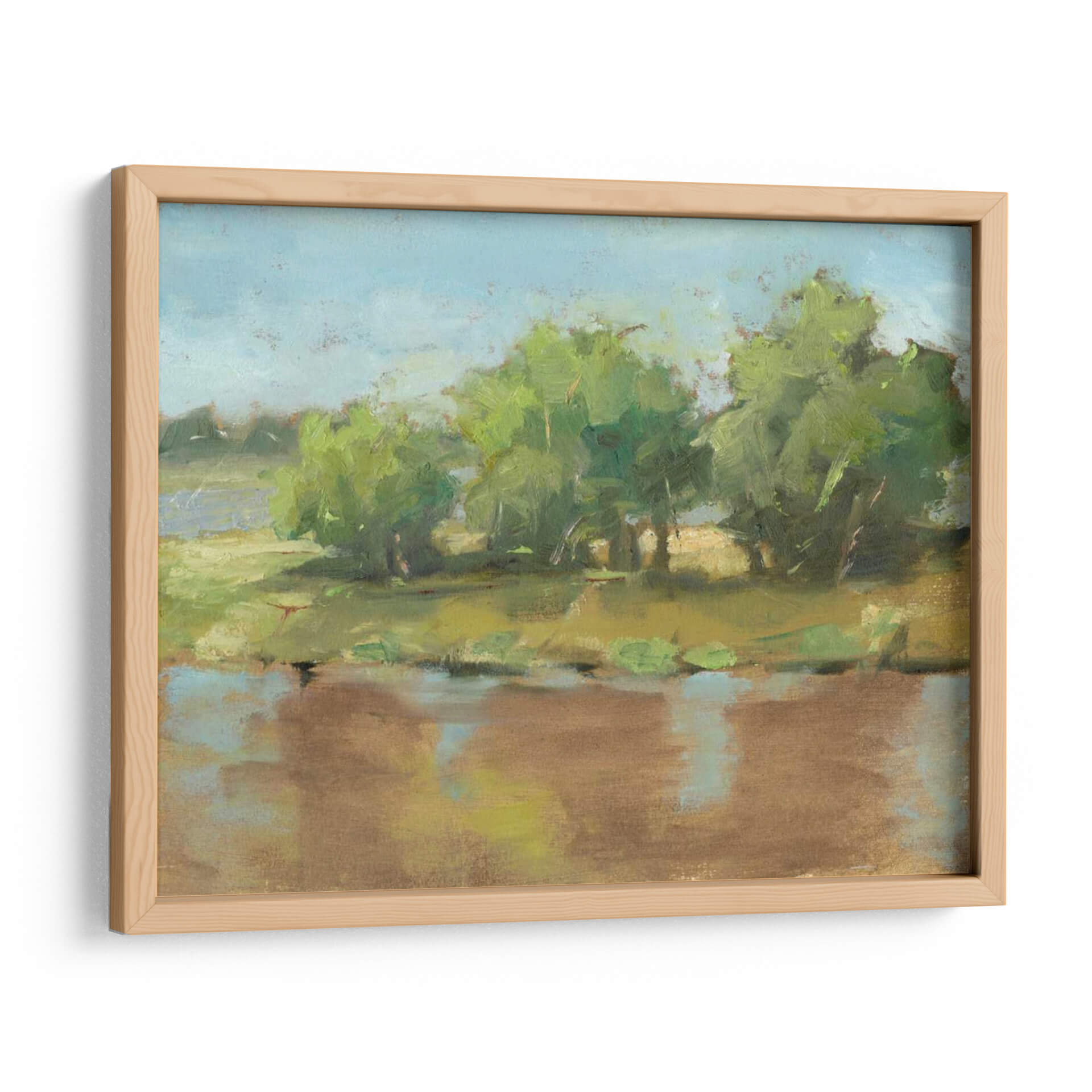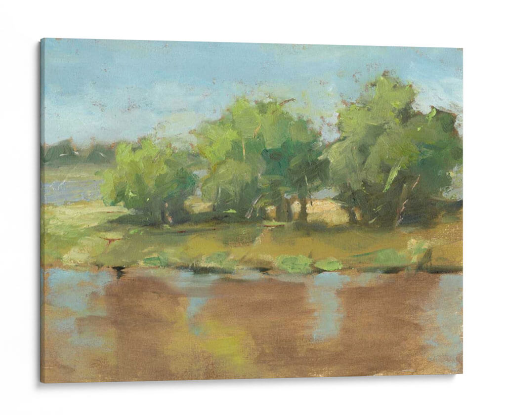 Sumérgete en la serenidad de la naturaleza con 'Río Fangoso II', una obra impresionista del aclamado artista Ethan Harper. Este cuadro decorativo captura la esencia de un paisaje ribereño con una paleta de colores terrosos y verdes vibrantes, evocando una atmósfera de calma y contemplación. La técnica pictórica, con pinceladas sueltas y expresivas, da vida a la textura del agua y la frondosidad de los árboles, invitando al espectador a sentir la brisa suave y el calor del sol. Los tonos marrones del agua reflejan la tierra y el cielo, creando una armonía visual que aporta profundidad y realismo a la escena. Es la pieza ideal para añadir un toque de naturaleza y tranquilidad a tu sala de estar, dormitorio u oficina, transformando cualquier espacio en un oasis de paz. Este cuadro paisajístico es perfecto para quienes buscan una conexión espiritual con el entorno natural, aportando una sensación de frescura y renovación a la decoración de interiores. Descubre la belleza sutil y la emotividad de este paisaje contemporáneo que inspirará tus sentidos.