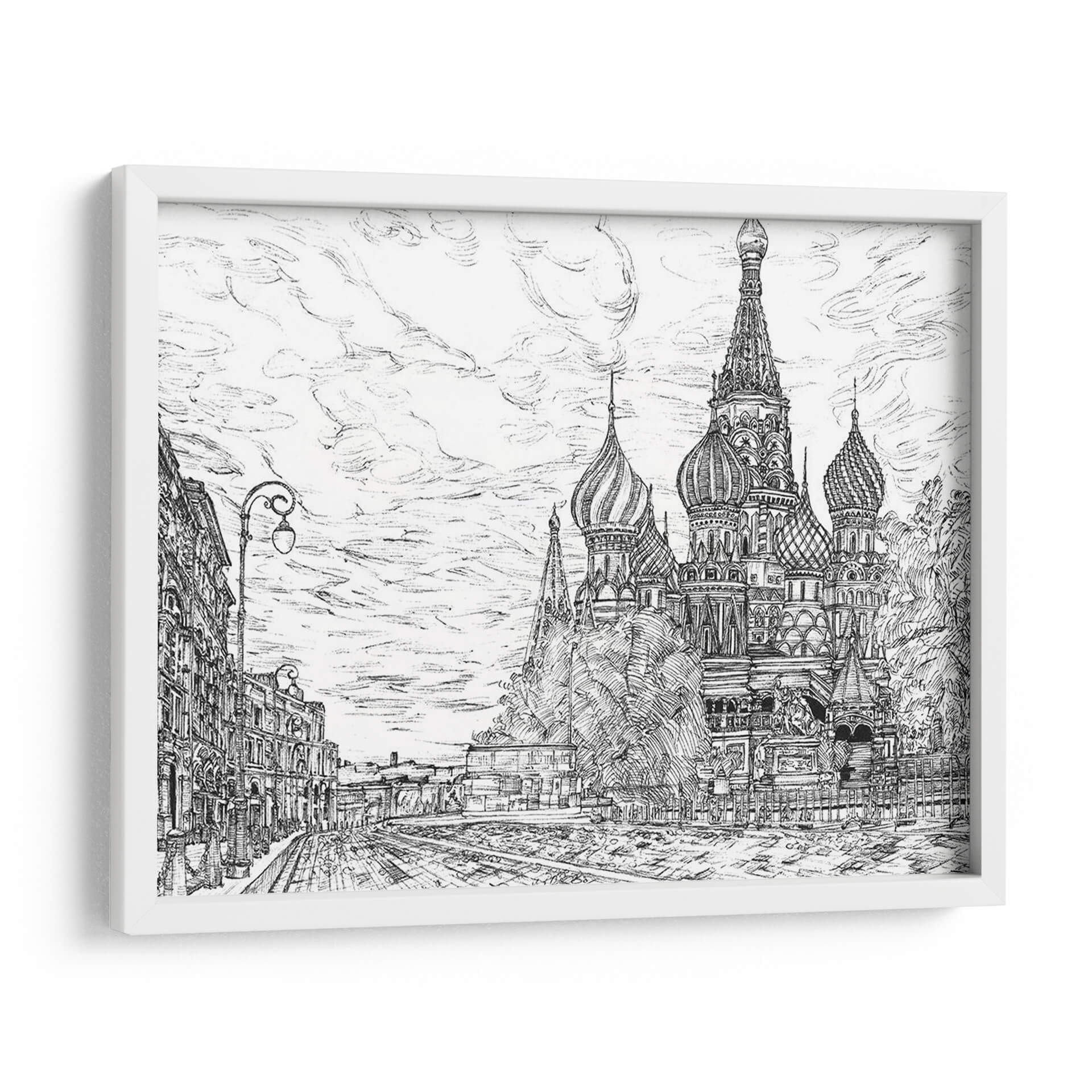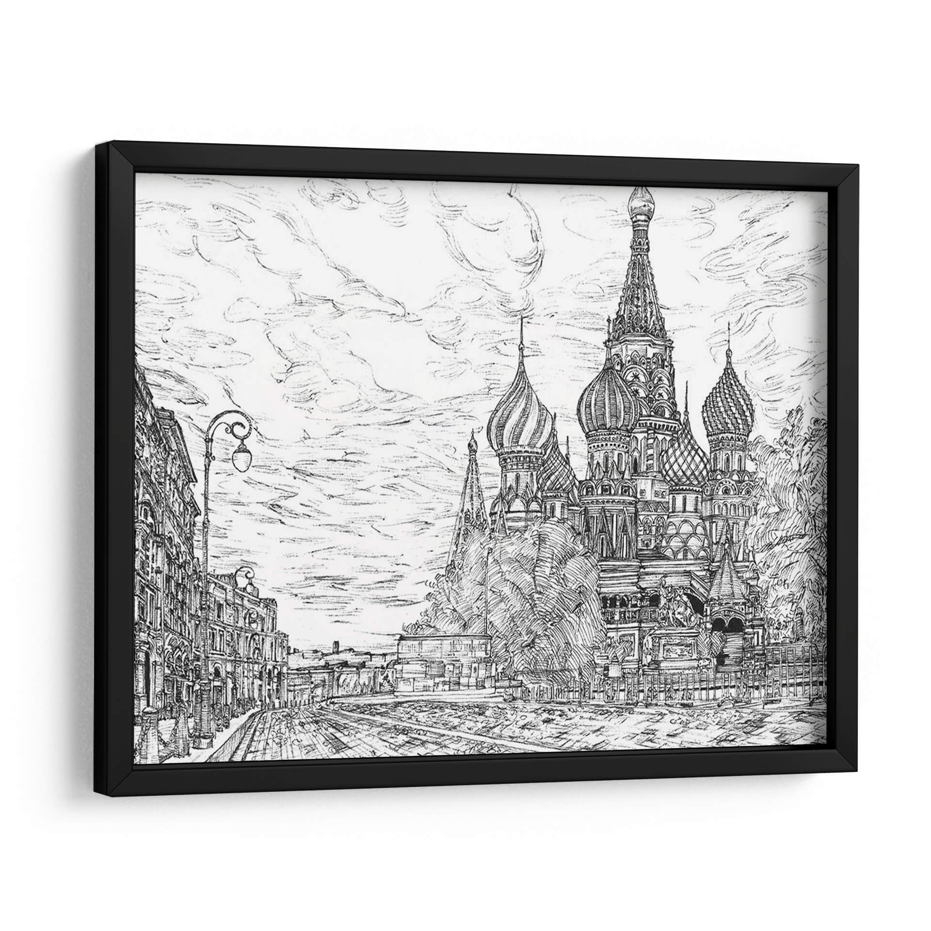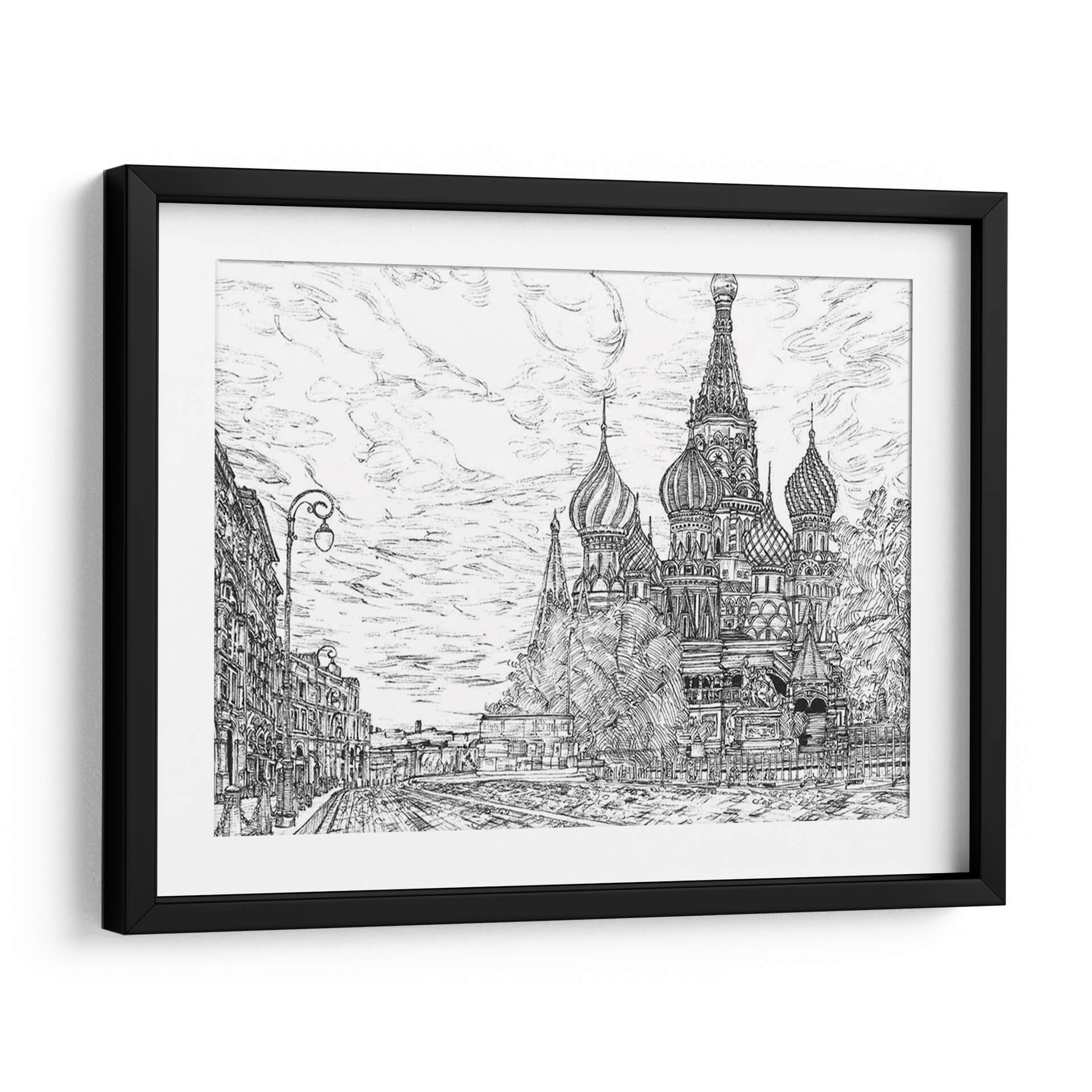 Sumérgete en la majestuosidad de Moscú con "Rusia En Blanco Y Negro I", una obra de arte que captura la icónica Catedral de San Basilio con un detalle impresionante. La artista Melissa Wang te transporta a las calles empedradas y la arquitectura distintiva de la capital rusa a través de un trazo magistral en blanco y negro. Este cuadro decorativo no es solo una representación, sino una evocación de la historia, la cultura y la grandiosidad de Rusia. La composición, con la imponente catedral como centro de atención flanqueada por edificios históricos y un cielo nublado lleno de movimiento, crea una atmósfera de solemnidad y encanto atemporal. Los contrastes de luz y sombra, logrados con una técnica de dibujo precisa, añaden profundidad y dramatismo a la escena, haciendo que cada detalle, desde los bulbos de las cúpulas hasta las farolas clásicas, cobre vida. Este cuadro es perfecto para aquellos que aprecian el arte detallado y buscan una pieza que añada carácter y sofisticación a su hogar u oficina. Ideal para espacios que buscan un toque de elegancia clásica o un guiño a la arquitectura europea. "Rusia En Blanco Y Negro I" es más que una imagen; es una ventana a un mundo de belleza arquitectónica y encanto histórico, lista para convertirse en el punto focal de tu decoración.