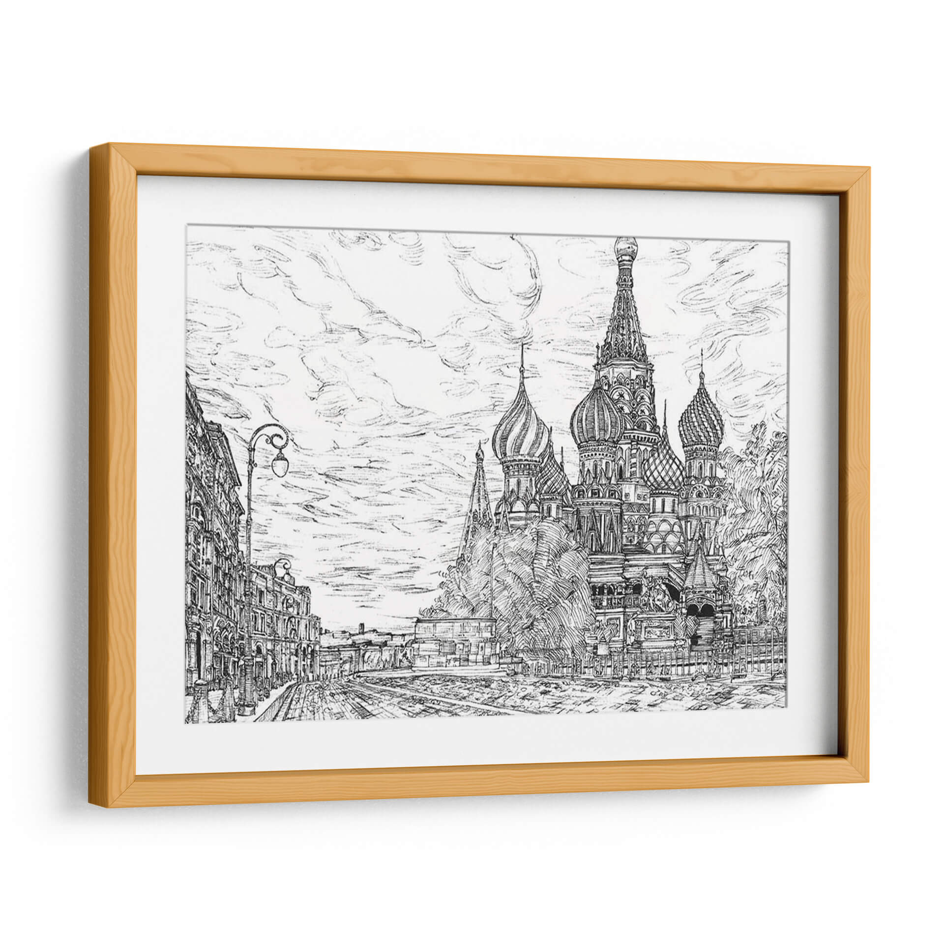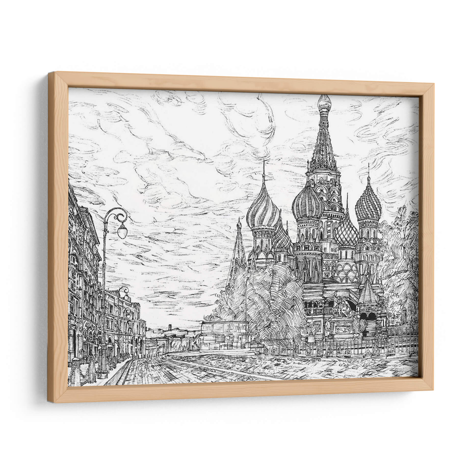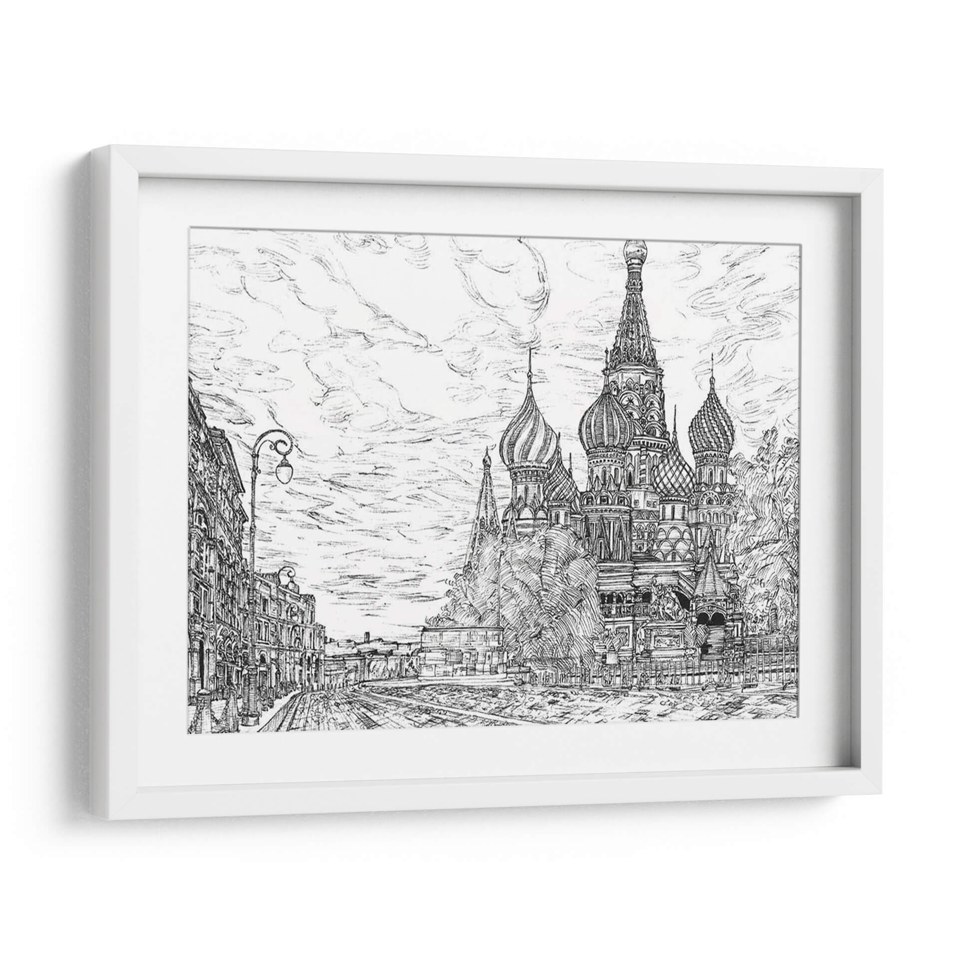 Sumérgete en la majestuosidad de Moscú con "Rusia En Blanco Y Negro I", una obra de arte que captura la icónica Catedral de San Basilio con un detalle impresionante. La artista Melissa Wang te transporta a las calles empedradas y la arquitectura distintiva de la capital rusa a través de un trazo magistral en blanco y negro. Este cuadro decorativo no es solo una representación, sino una evocación de la historia, la cultura y la grandiosidad de Rusia. La composición, con la imponente catedral como centro de atención flanqueada por edificios históricos y un cielo nublado lleno de movimiento, crea una atmósfera de solemnidad y encanto atemporal. Los contrastes de luz y sombra, logrados con una técnica de dibujo precisa, añaden profundidad y dramatismo a la escena, haciendo que cada detalle, desde los bulbos de las cúpulas hasta las farolas clásicas, cobre vida. Este cuadro es perfecto para aquellos que aprecian el arte detallado y buscan una pieza que añada carácter y sofisticación a su hogar u oficina. Ideal para espacios que buscan un toque de elegancia clásica o un guiño a la arquitectura europea. "Rusia En Blanco Y Negro I" es más que una imagen; es una ventana a un mundo de belleza arquitectónica y encanto histórico, lista para convertirse en el punto focal de tu decoración.
